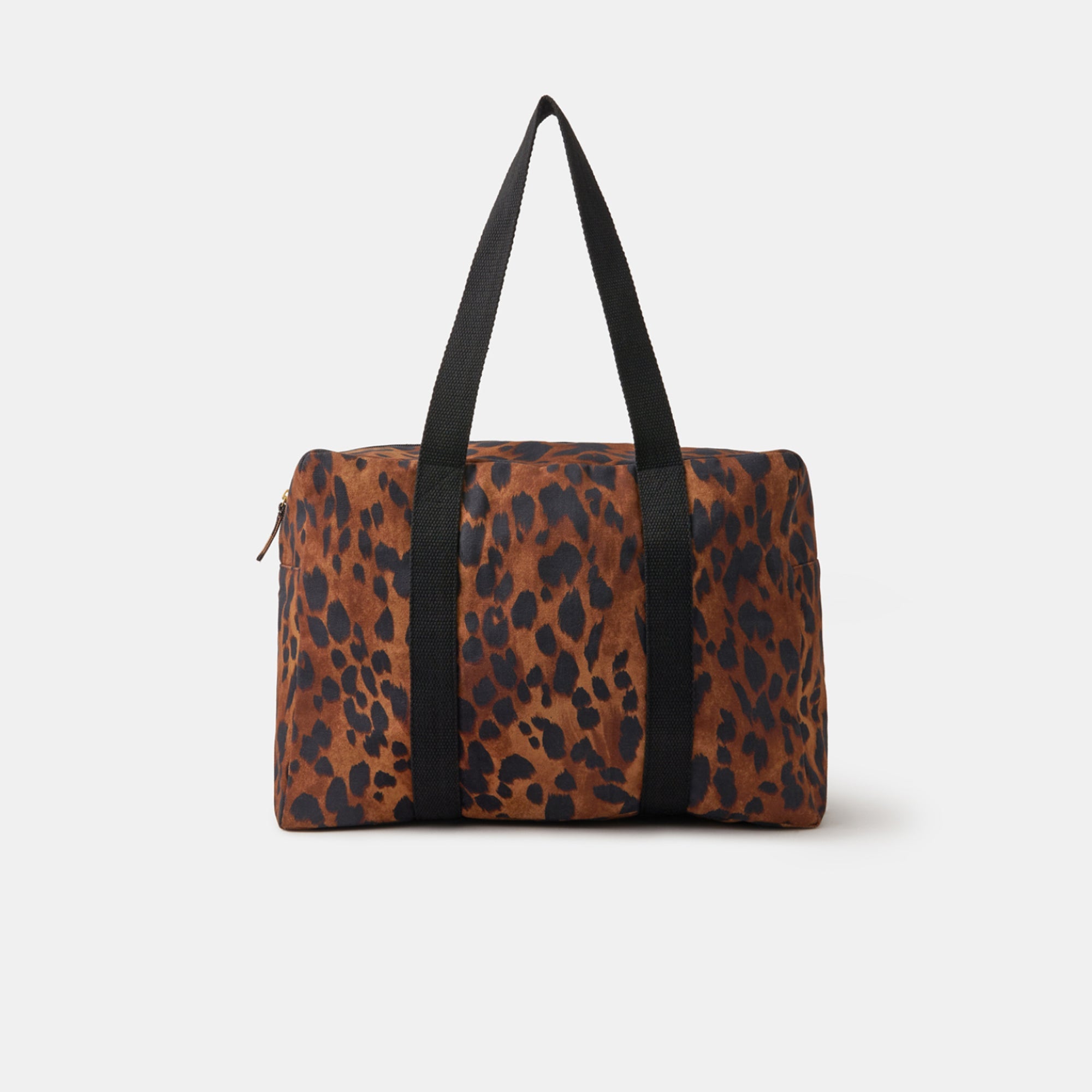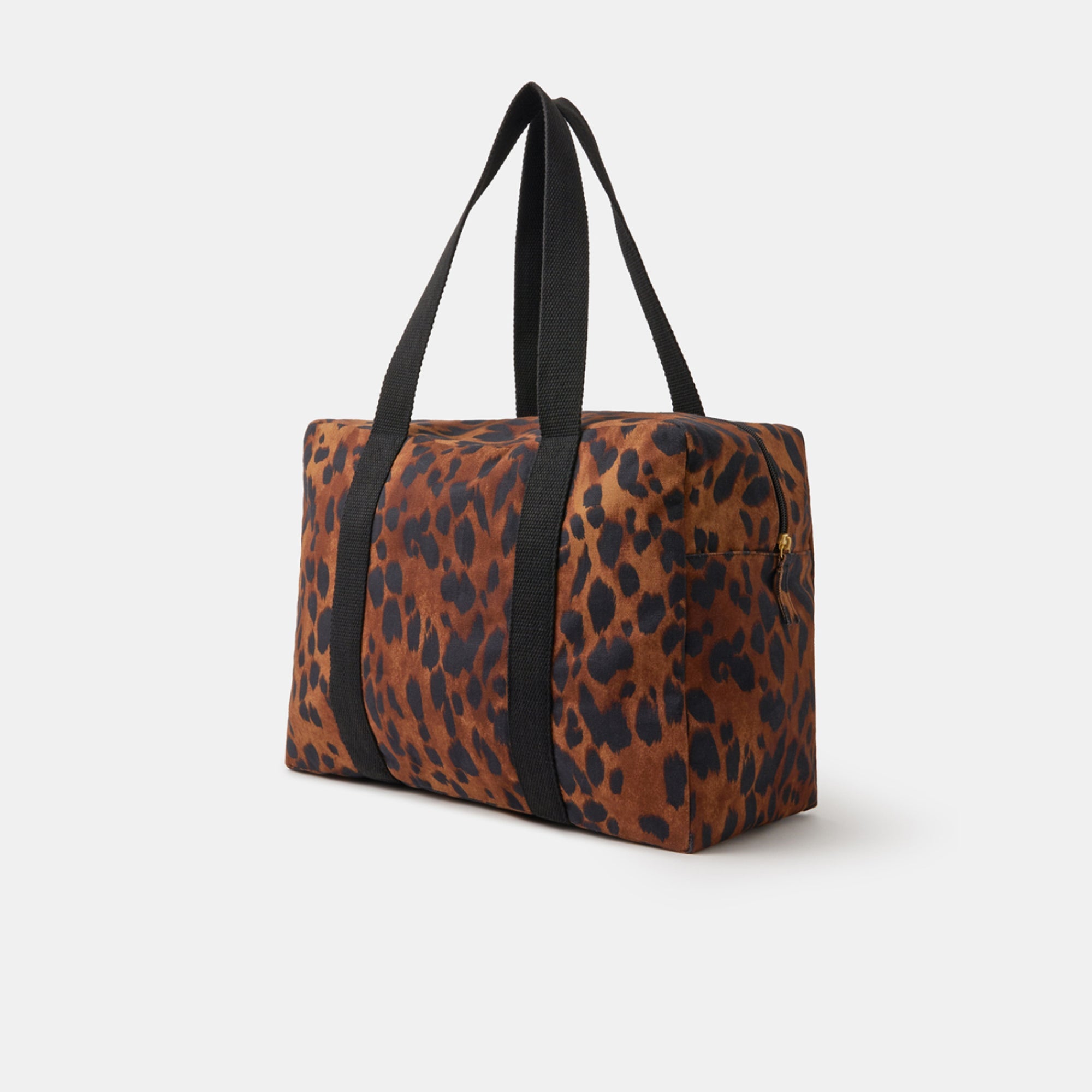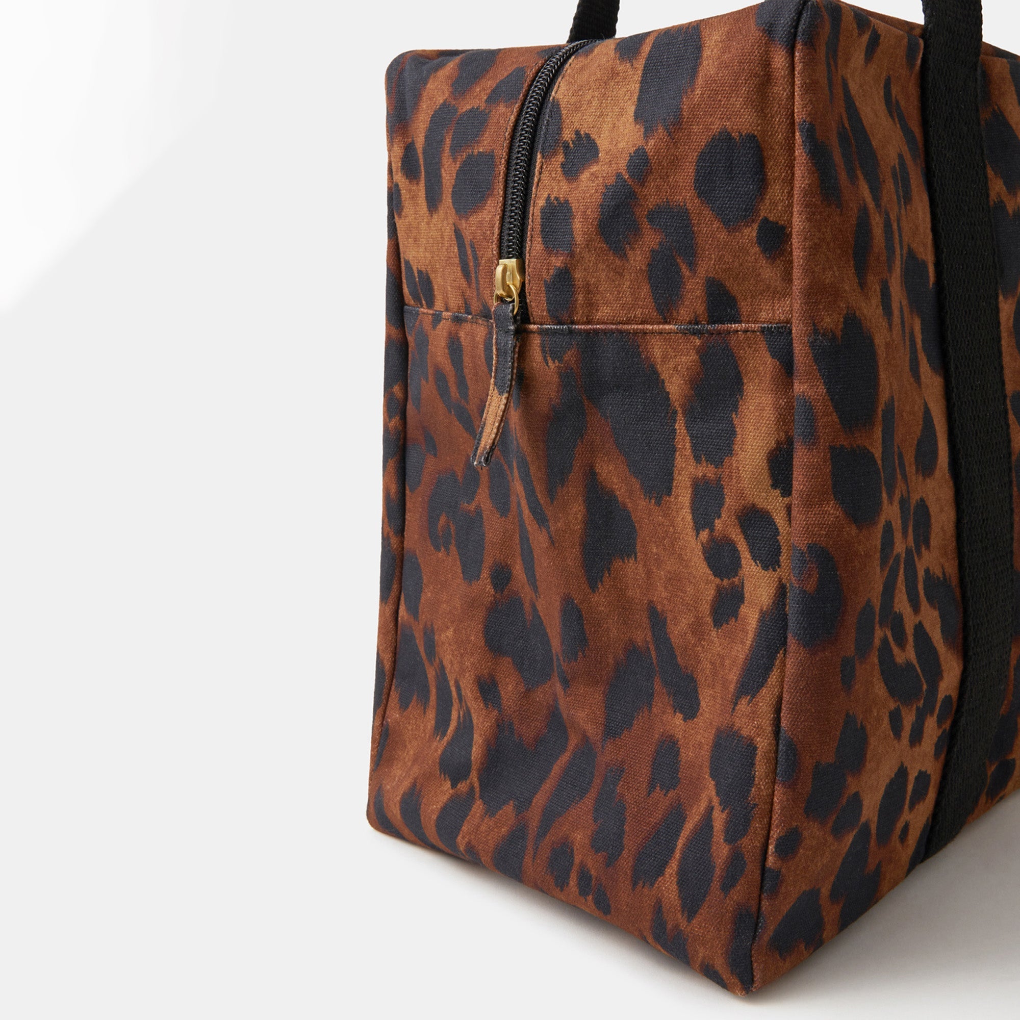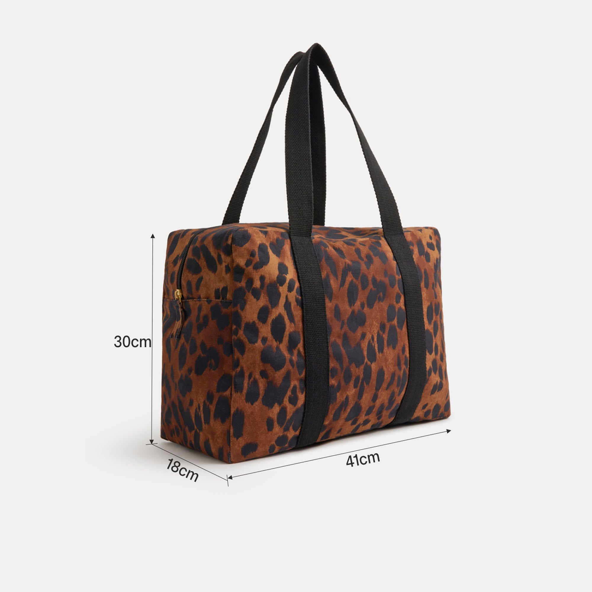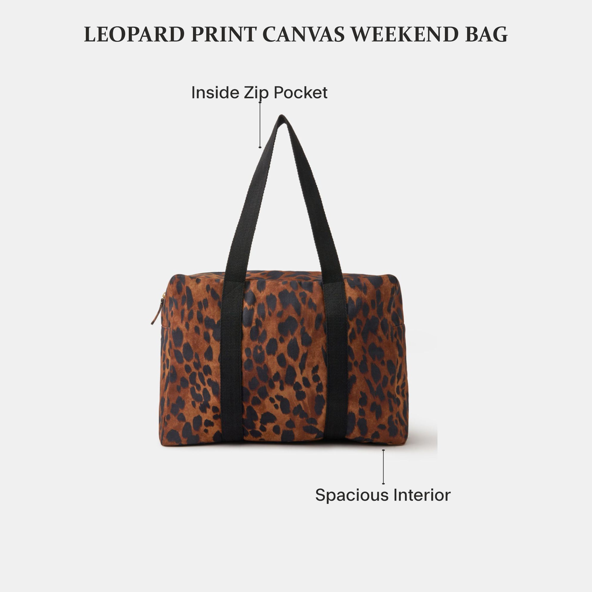 Going on a wild weekend away? We have just the thing for you. This Multi-Color Leopard Print Canvas Weekend Bag is crafted from durable cotton canvas with a bold animal print to make a style statement. Featuring a roomy main zip compartment, a small inner zip pocket, and two sturdy shoulder straps, it’s both fashionable and practical. Perfect for short trips, gym sessions, or as a carry-on for your travels.