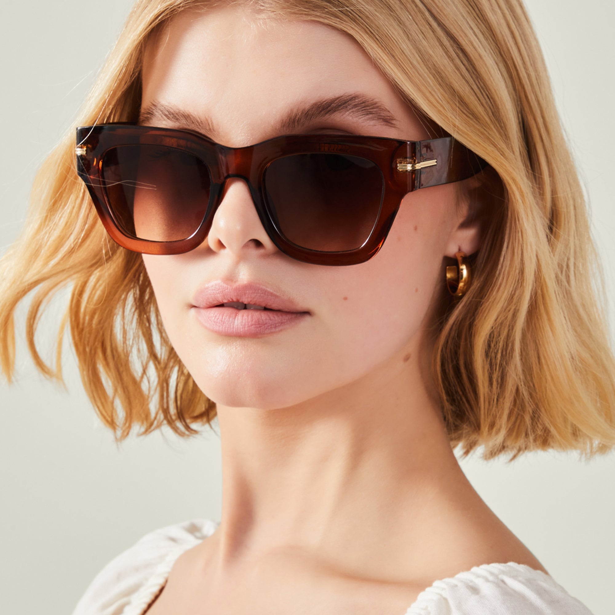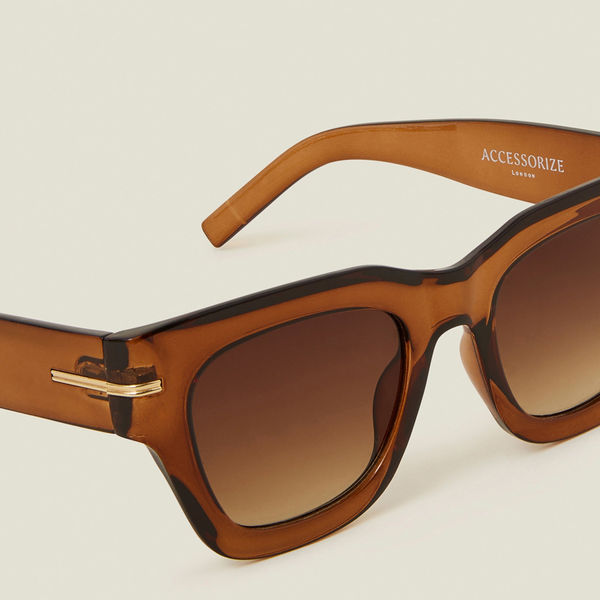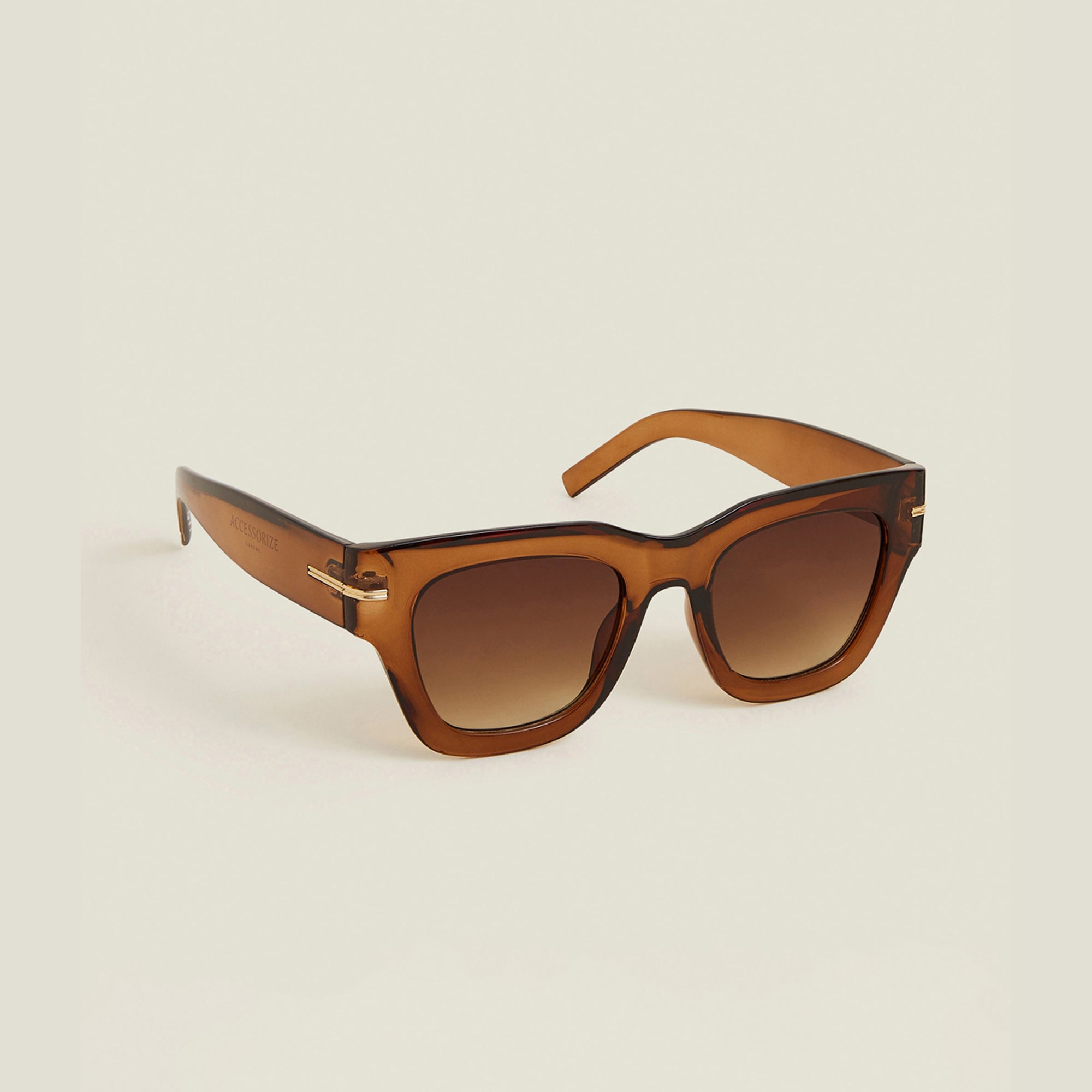 90s vibes. Designed with square frames in a chic coffee colour, these sunnies have a simple gold-tone metal strip at the temples to finish.
