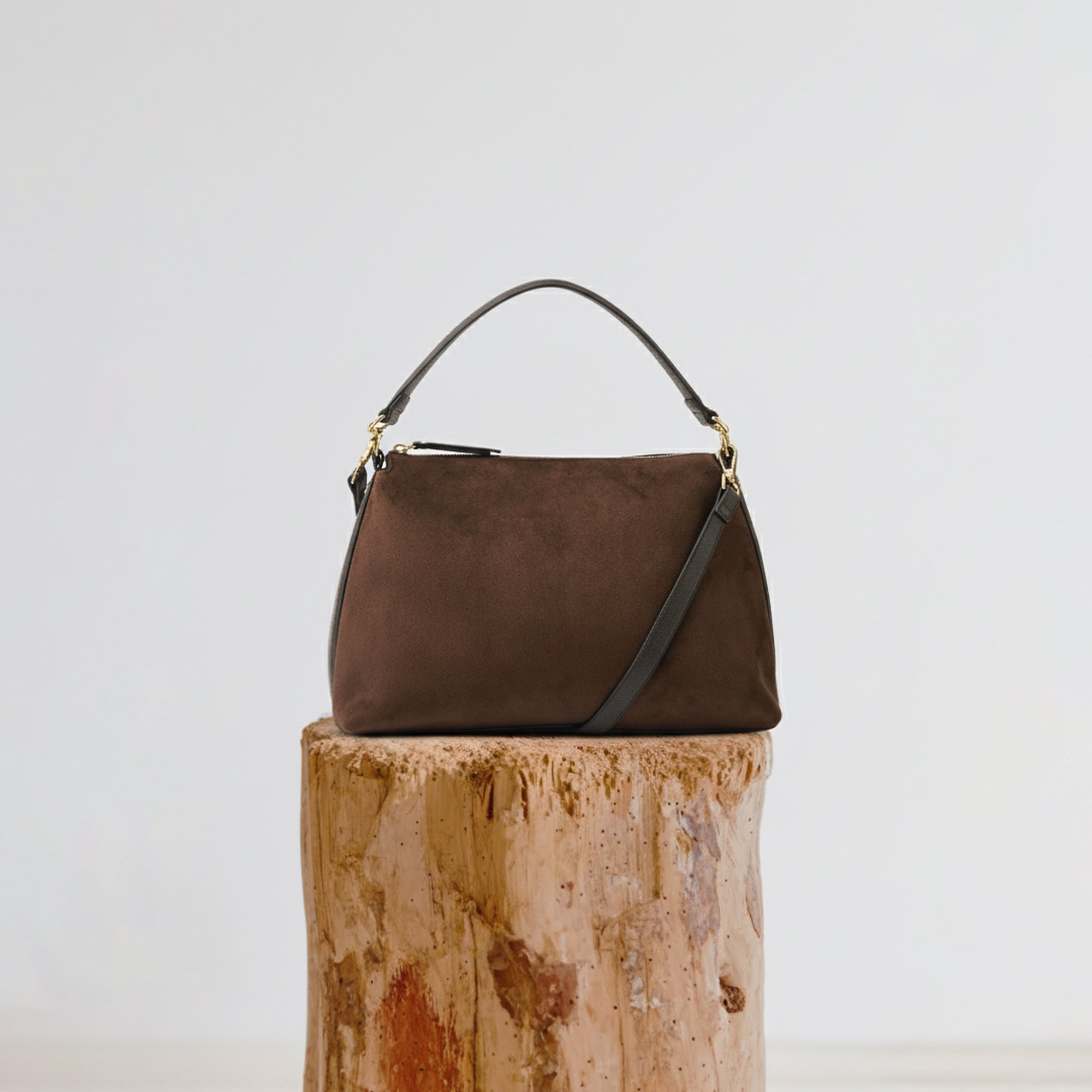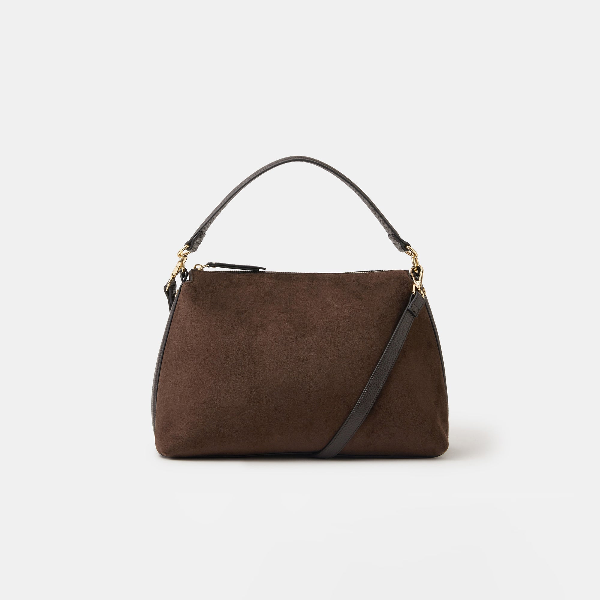 Chic, soft and slouchy, this handbag's got it all. Perfect for everyday wear, it's designed in faux suede with a main zip compartment and small zip pocket inside. Finished with a dual strap because (like you) she's versatile, so swing it from the handles or style it across the body. Brown