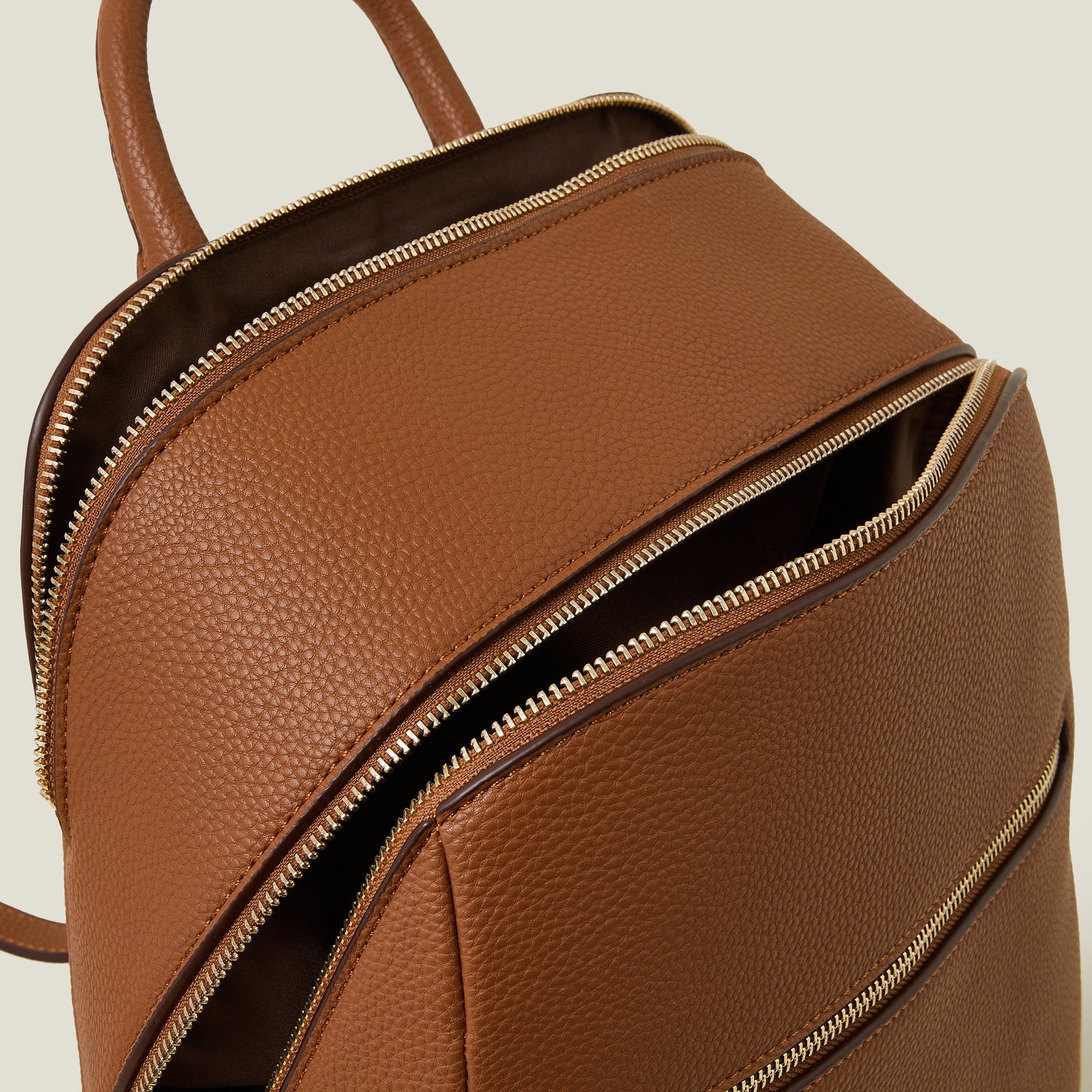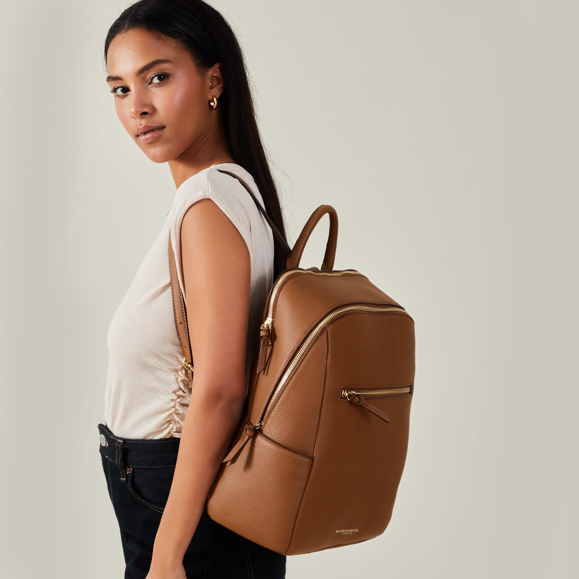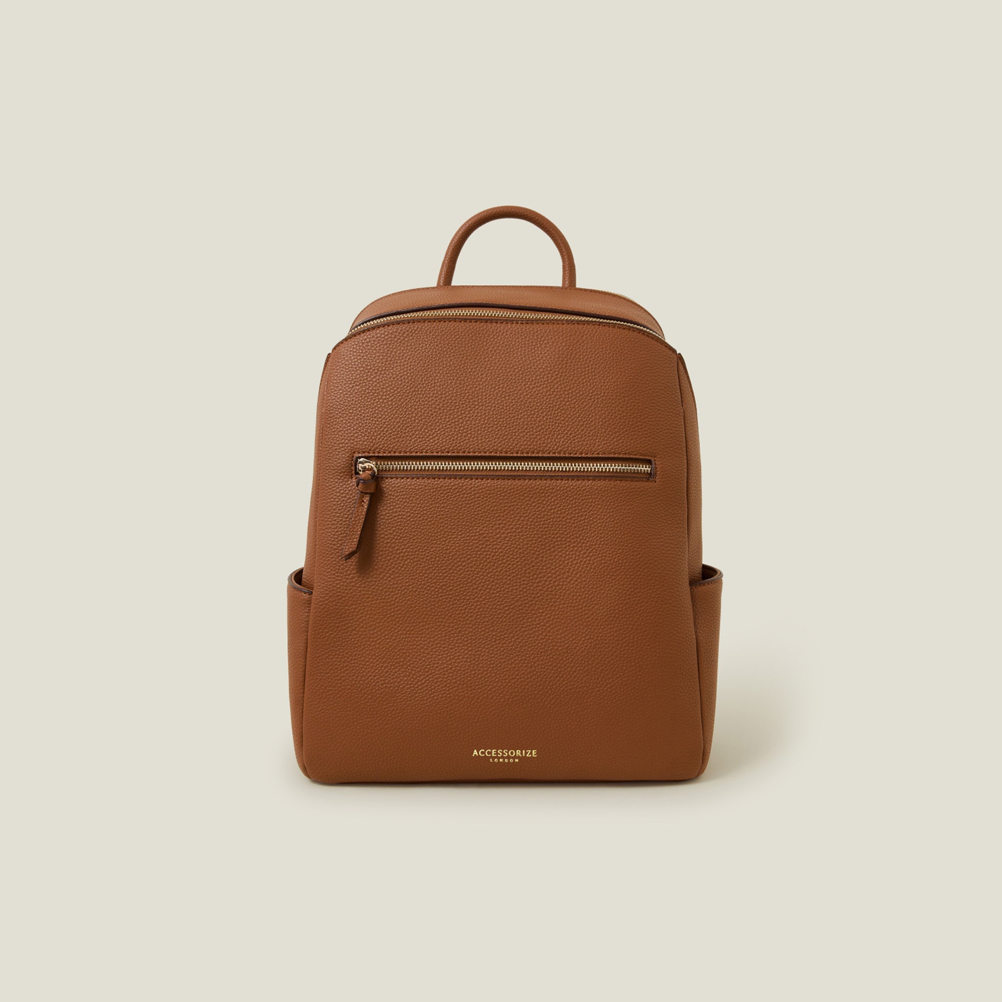 A bag appropriate for smart and casual? We've got you covered! From office commutes to university lectures, this zip-around backpack features various pockets to hold all your essentials, including a slim compartment at the back which is great for small laptops and electronics. Crafted in soft faux-leather, it's available in black and tan. Fits a 12x8 in laptop.