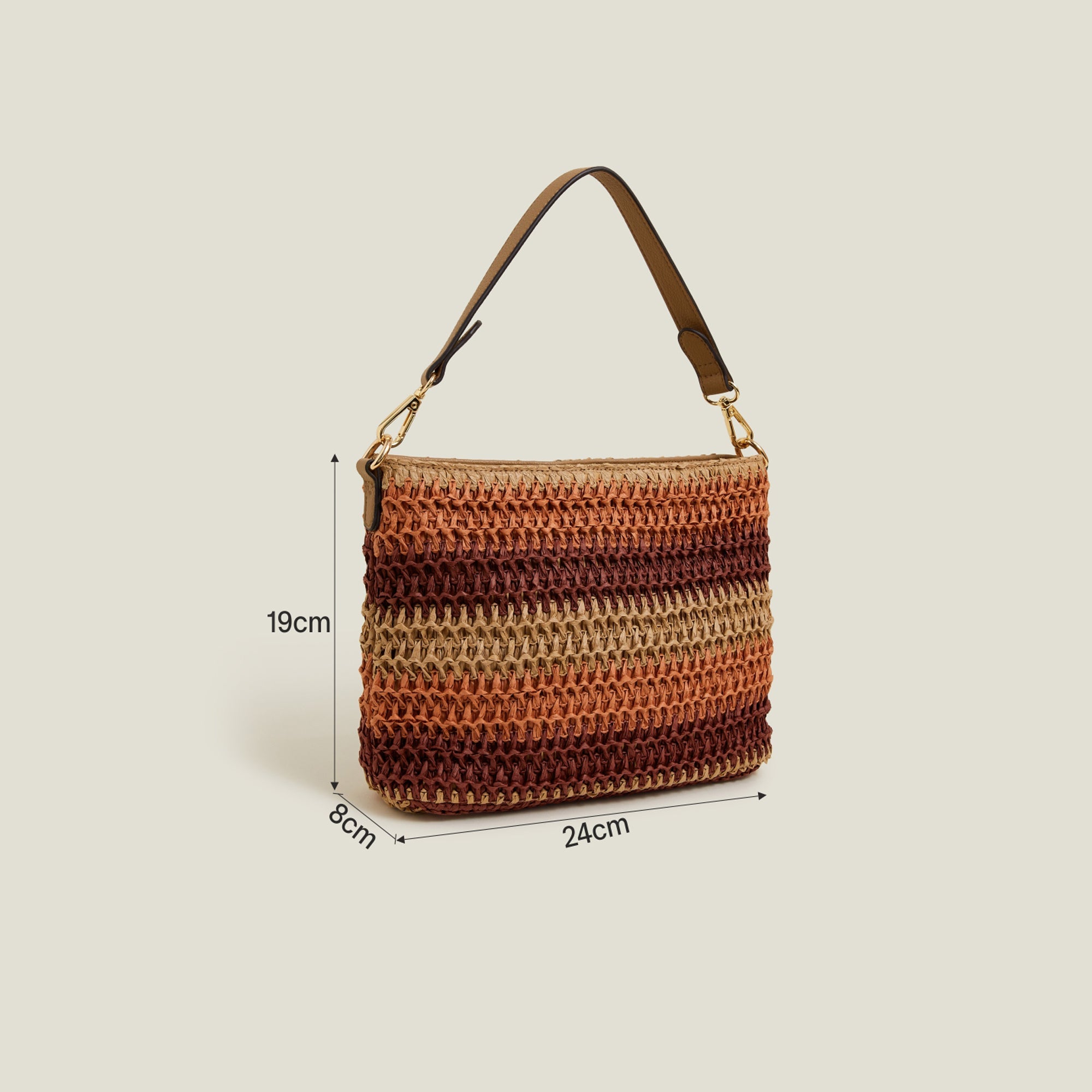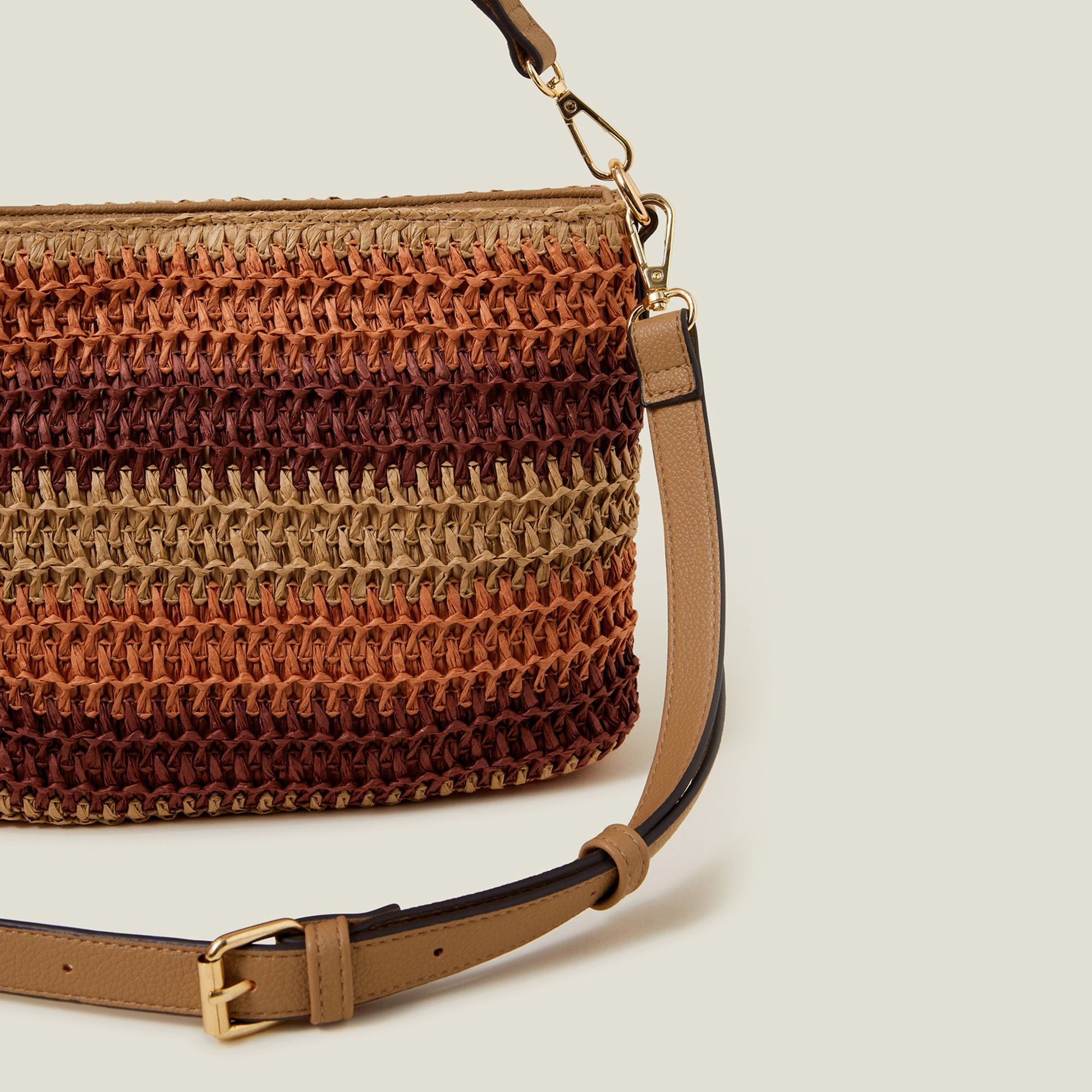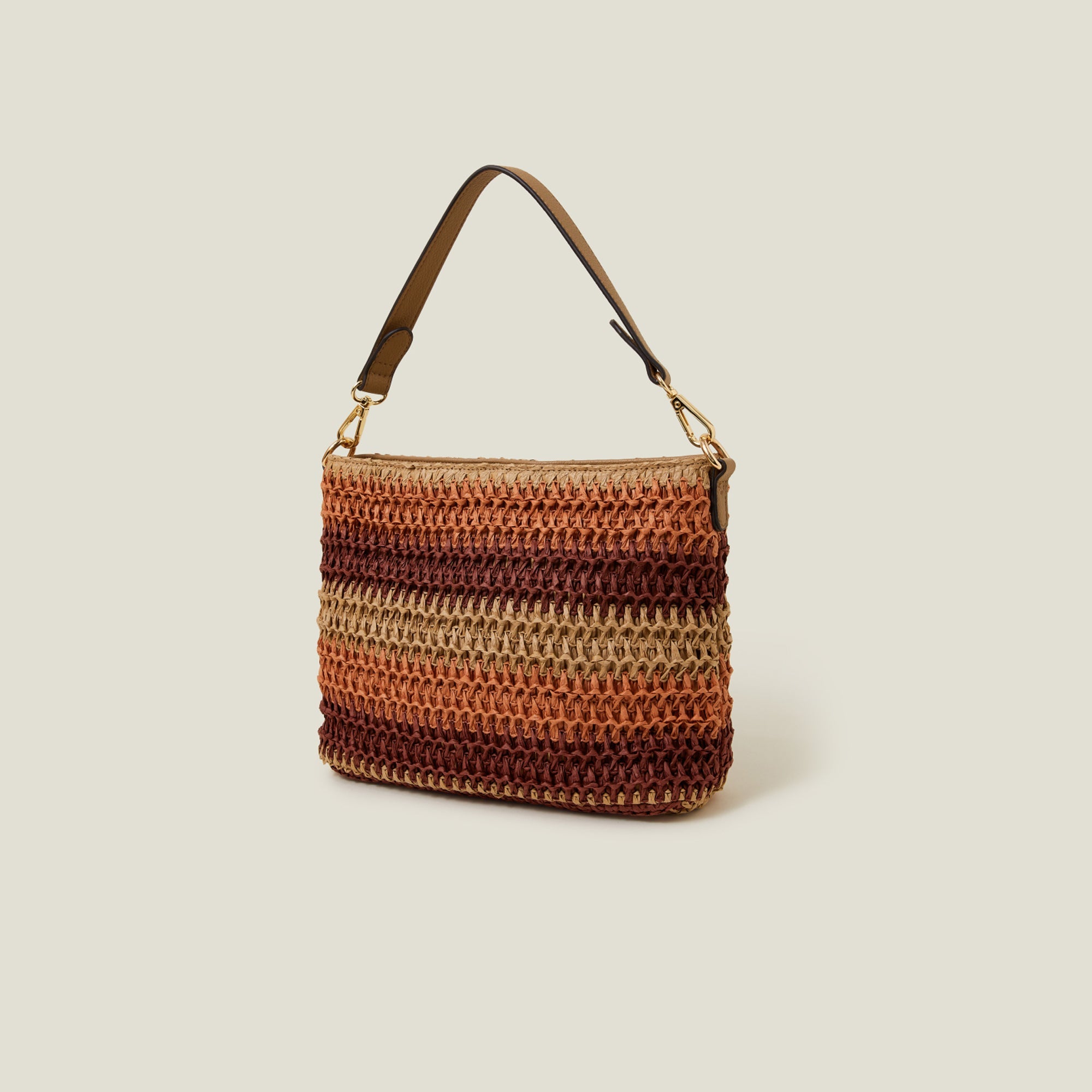 Woven with sunset tones perfect for the golden hour sun, this raffia bag is a true suitcase staple. Featuring a roomy main compartment, it secures with a zip fastening to the top with a top handle and detachable cross-body strap