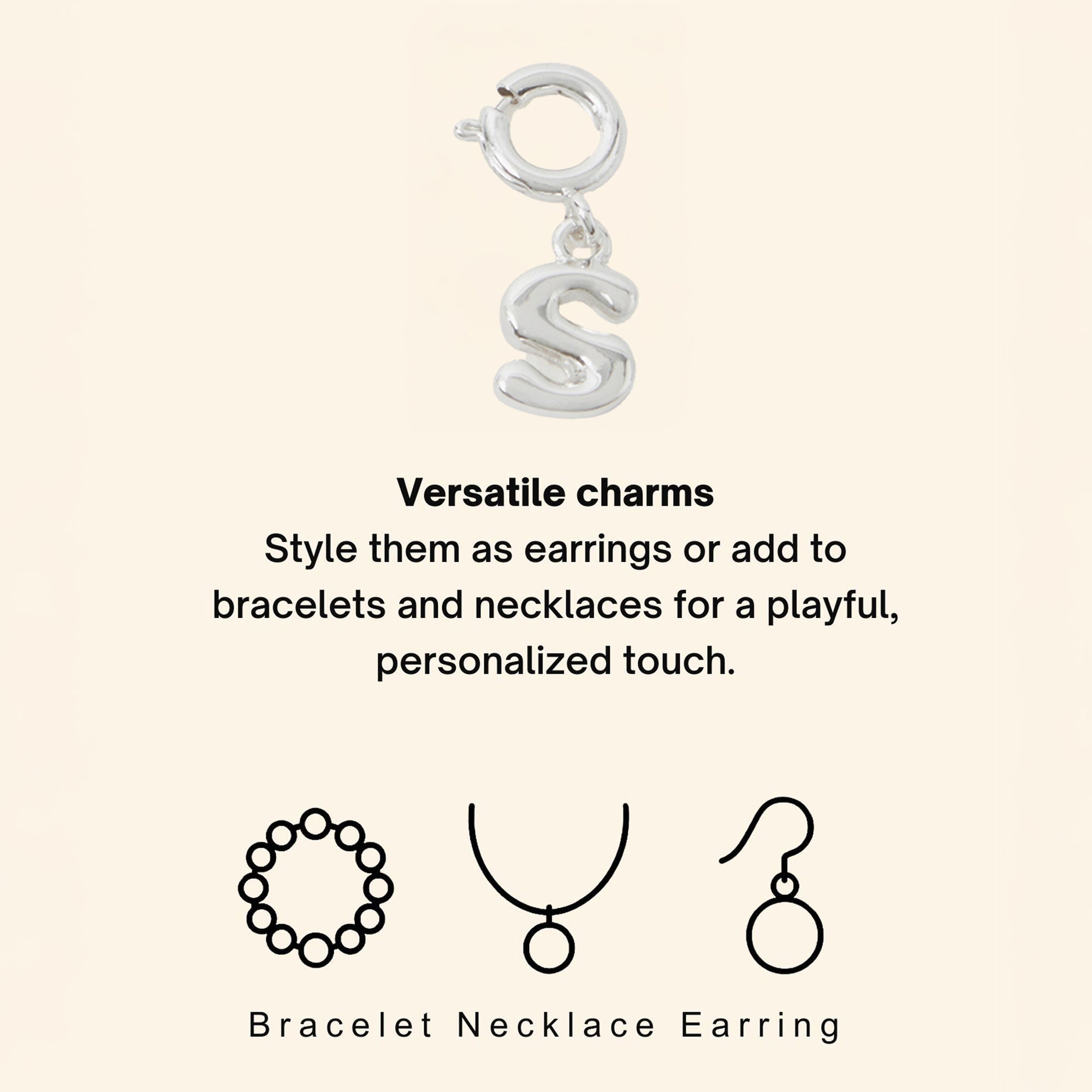 An accessory bursting with personality! This jewellery charm showcases a letter of your choice in a fun, bubbly finish. It's dipped in a silver tone and fastens to jewellery with the lobster clasp.