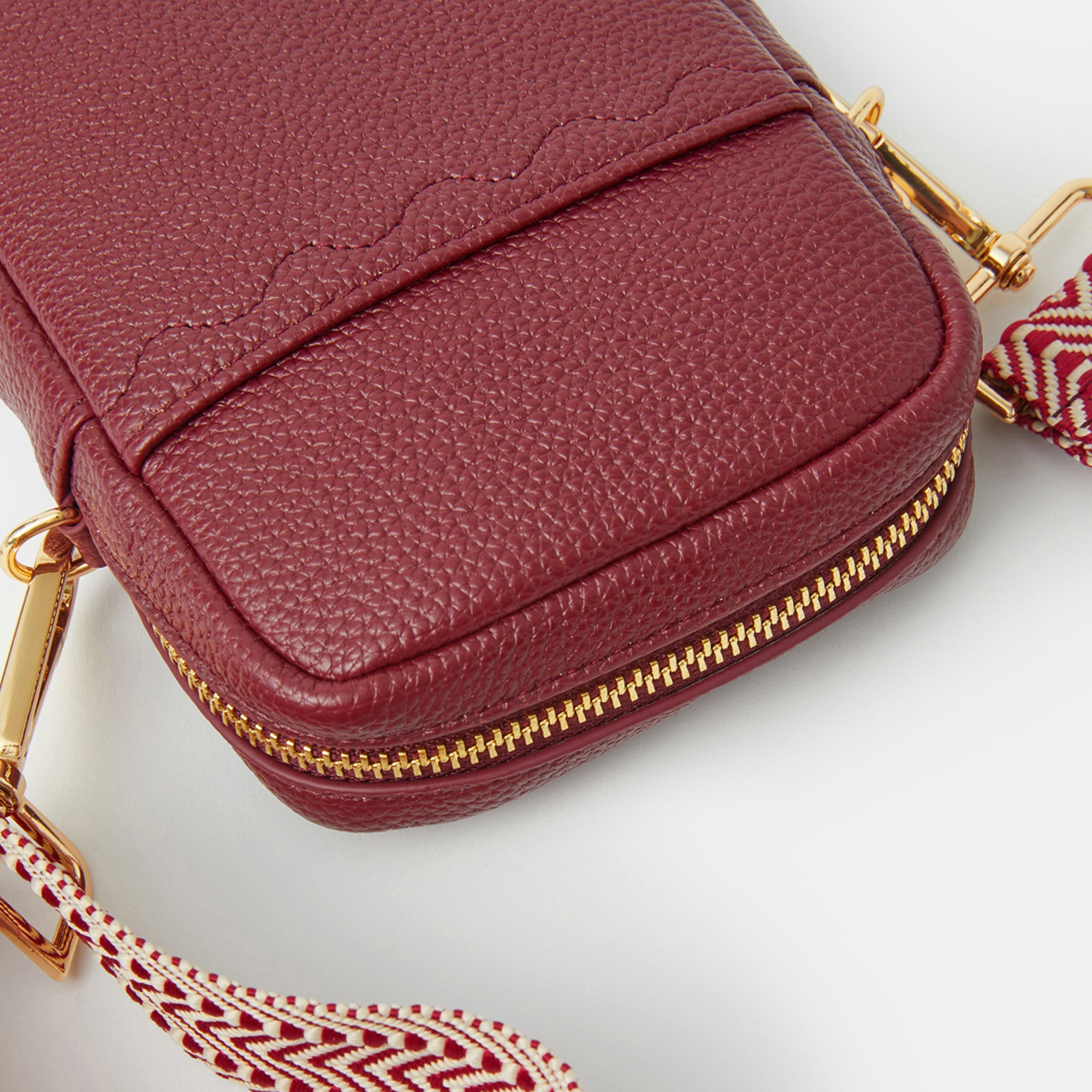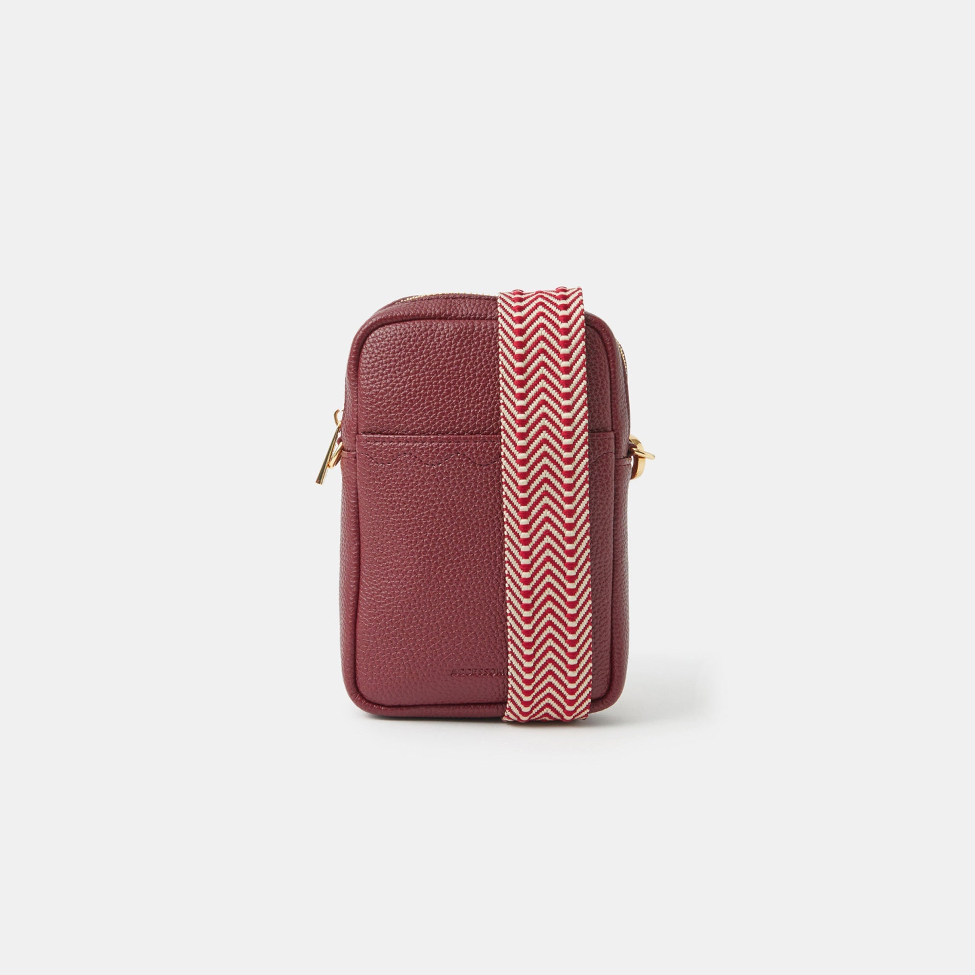 Designed in faux leather with a decorative webbing strap, this compact crossbody bag is perfectly-sized to store your phone and other small essentials. Features an outside slip pocket and zip fastening for the main compartment. A customisable style: this bag has a removable strap, meaning you can change up the design...every day of the week! From understated neutrals to punchy prints, why not take a look at our curated bag straps? Red