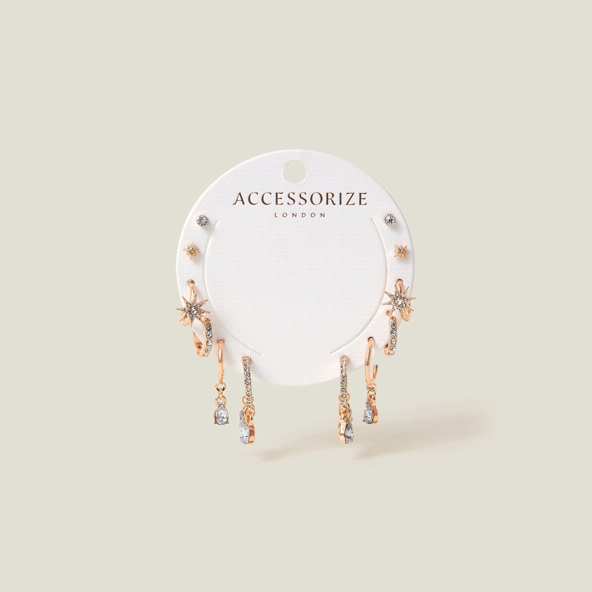 Shine like the starry night sky every single day with this gold-tone set. Featuring stars, hoops, and sparkles, this 12 pack ensures you'll always have a pair of studs on hand.