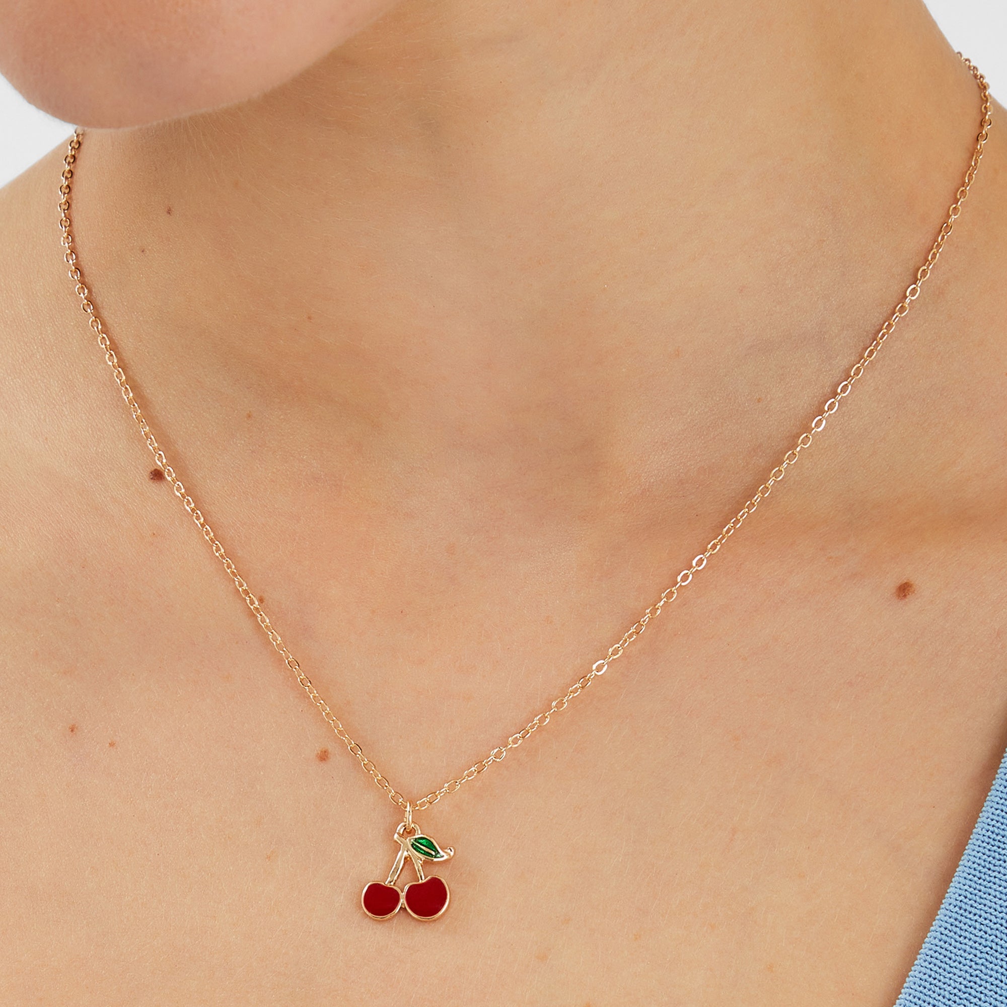 So sweet you'll want to wear it all summer long. Featuring an enamel cherry pendant on a gold-tone chain, this necklace is a fun, fruity addition to your jewellery box. Finished with a lobster clasp fastening and extender.