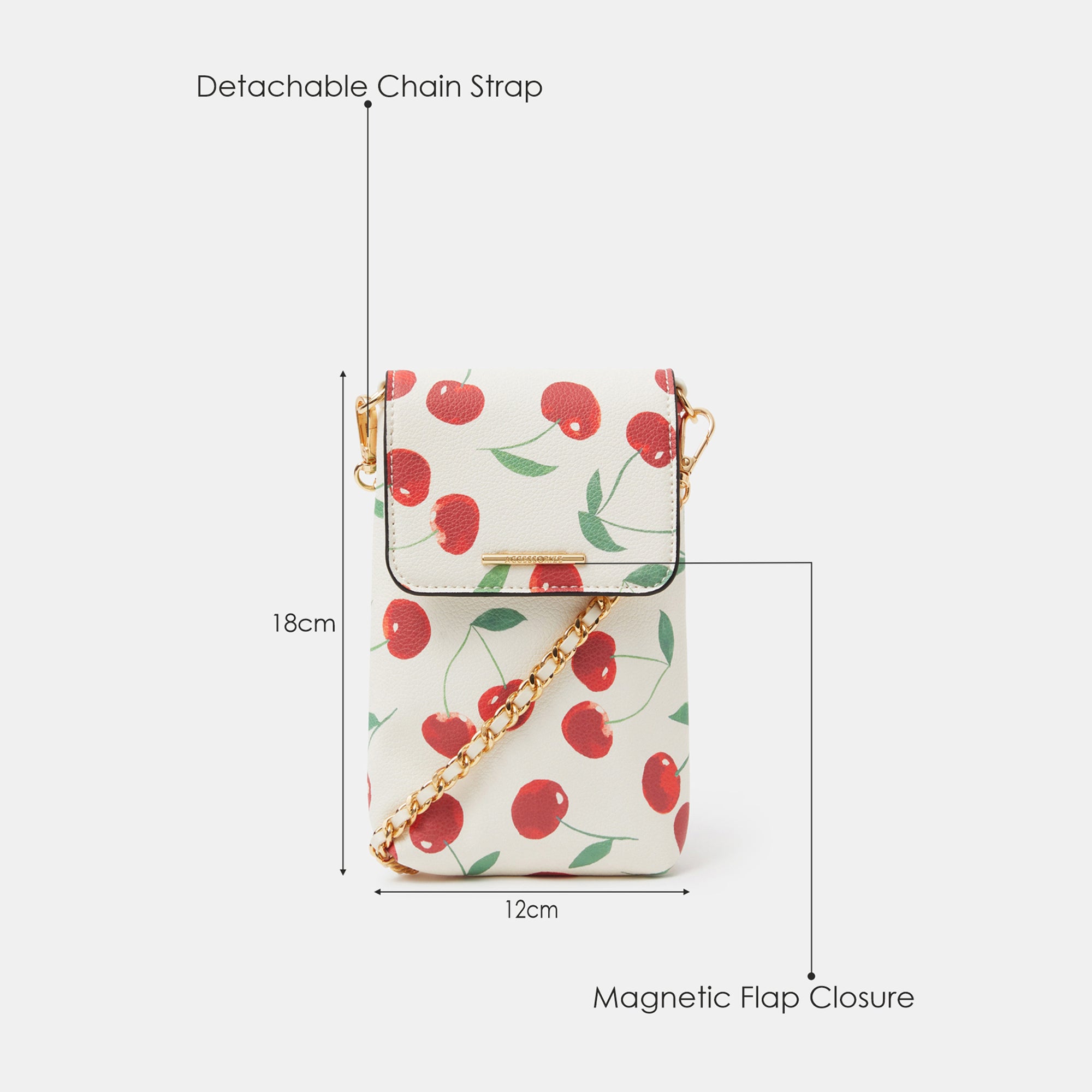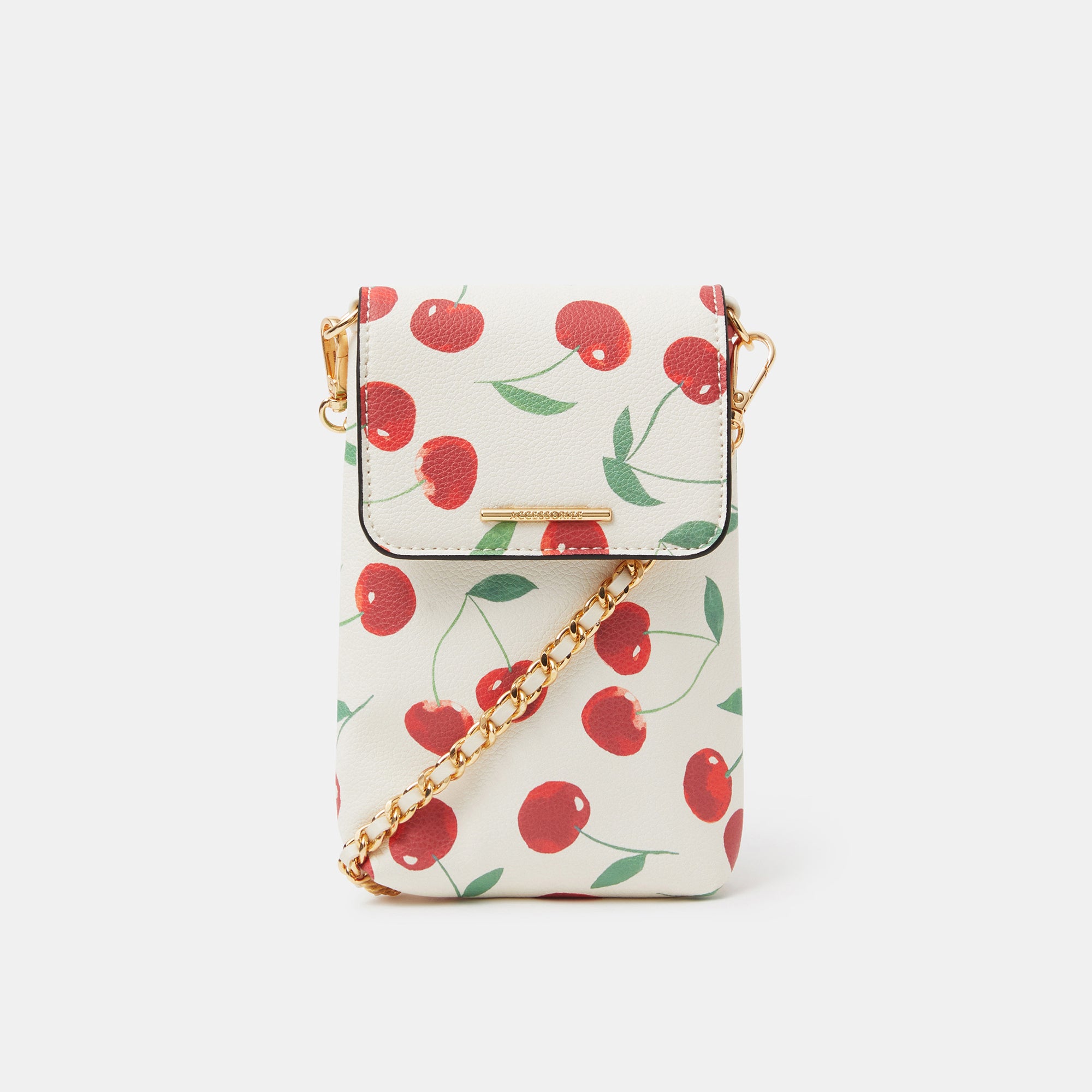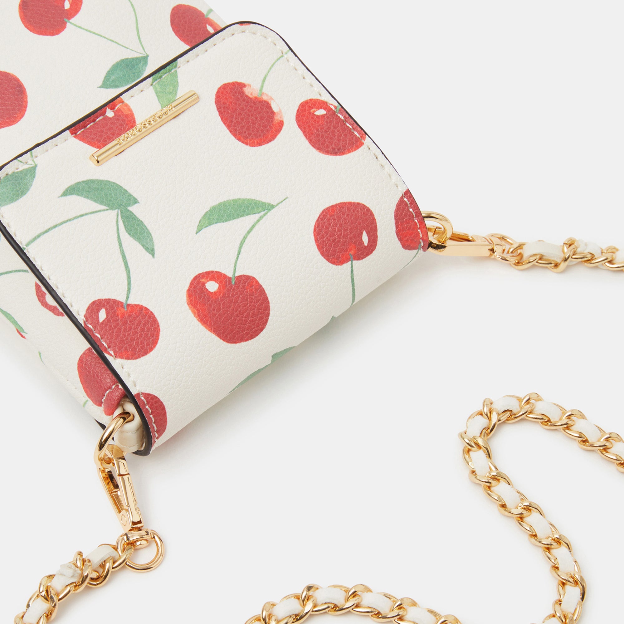 Freshly-picked for keeping your phone safe and secure in style, this bag features a fold-over design, magnetic button fastening and sweet cherry print. Complete with a long crossbody chain, your hands are free to reply in the group chat and mooch around with a matcha.