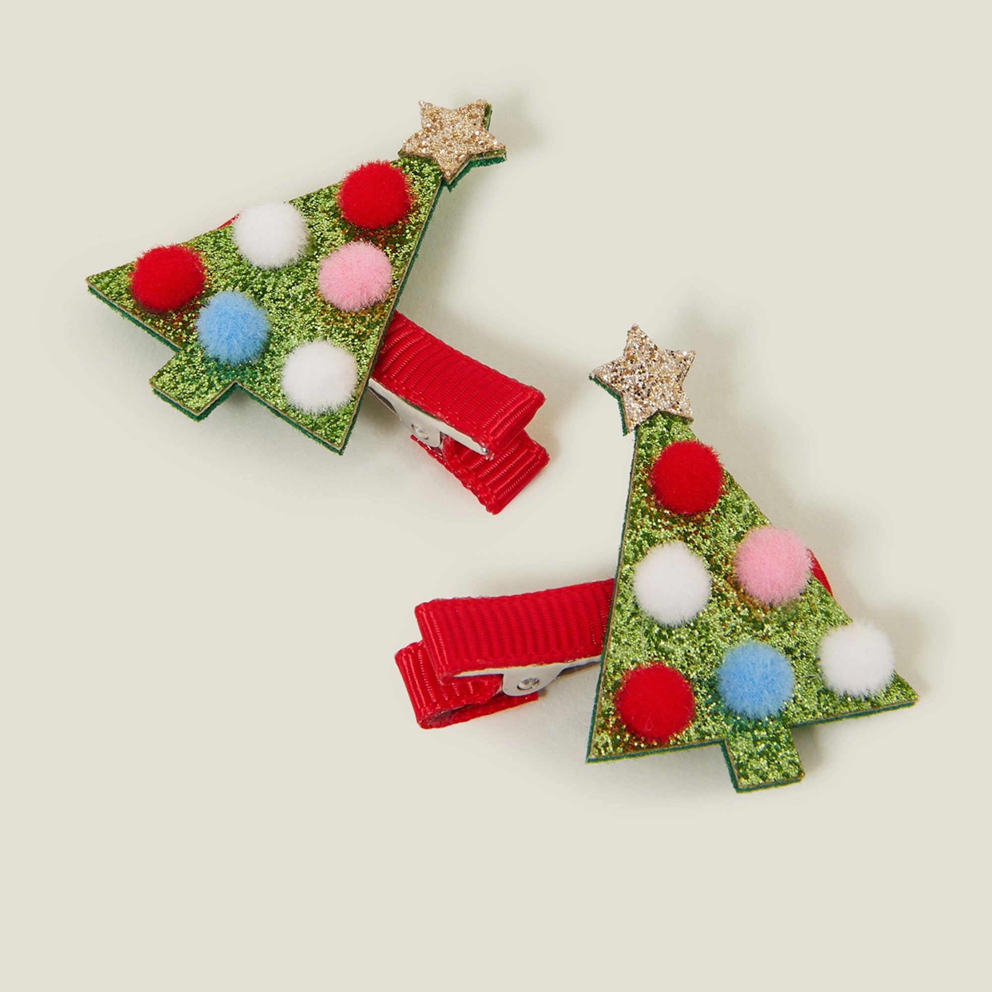 What's better than a decorated Christmas tree? A pair of decorated Christmas trees to adorn your little one's hair! These festive hair clips feature glittery tree motifs adorned with colourful pom-poms and a star topper.