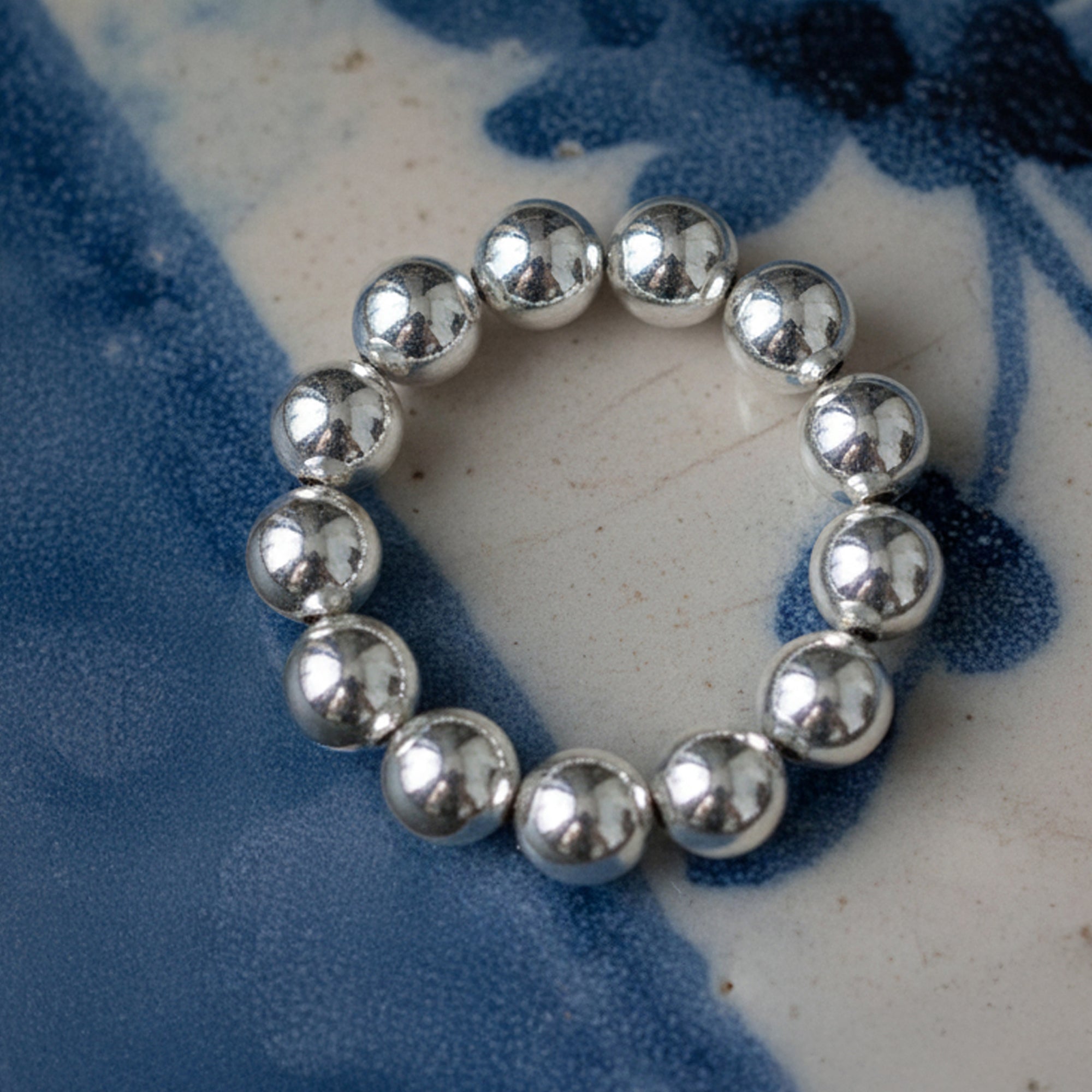 Turn up the shine with this statement bracelet. Showcasing chunky metallic beads, it'll instantly elevate your look. Elasticated for an easy slip-on fit. Silver