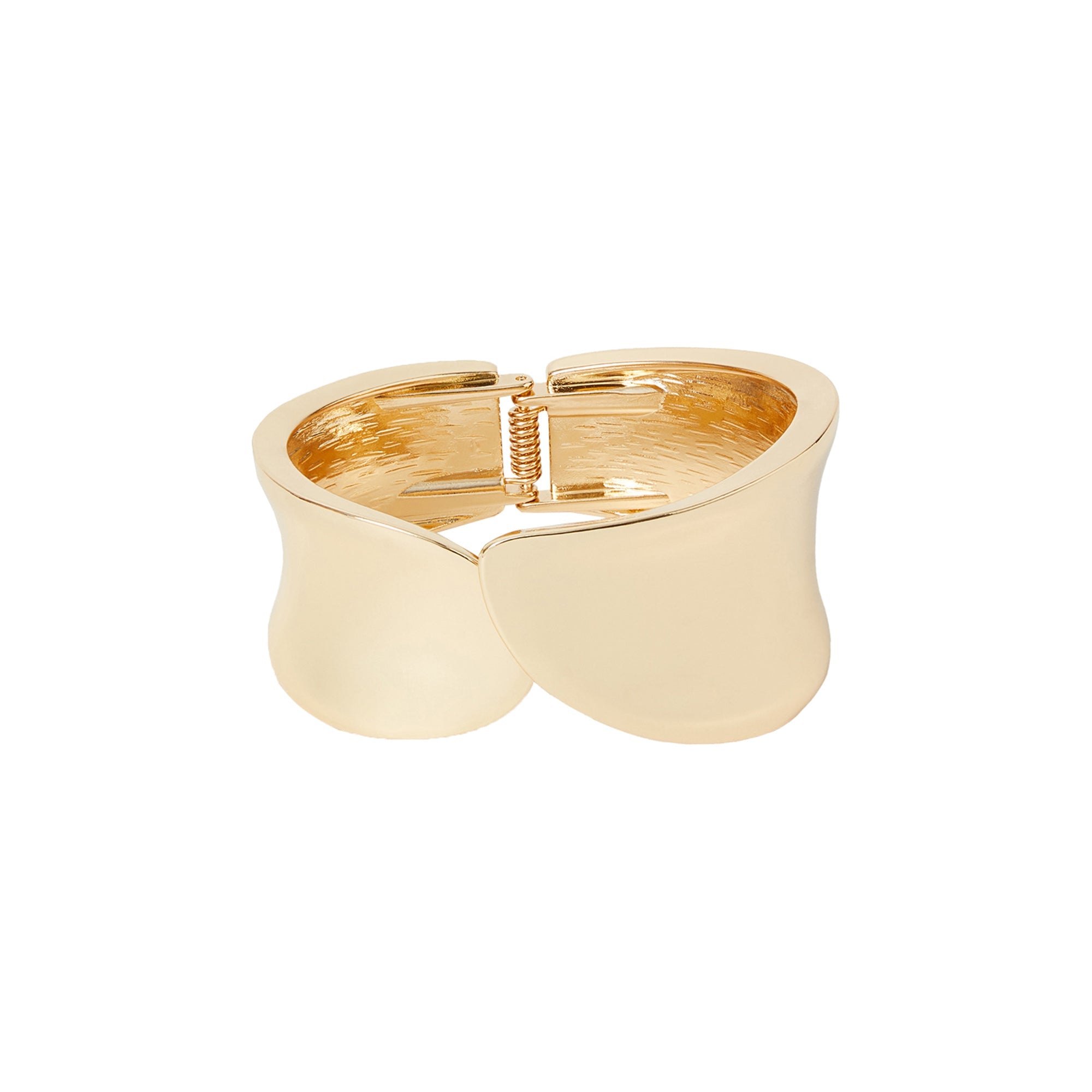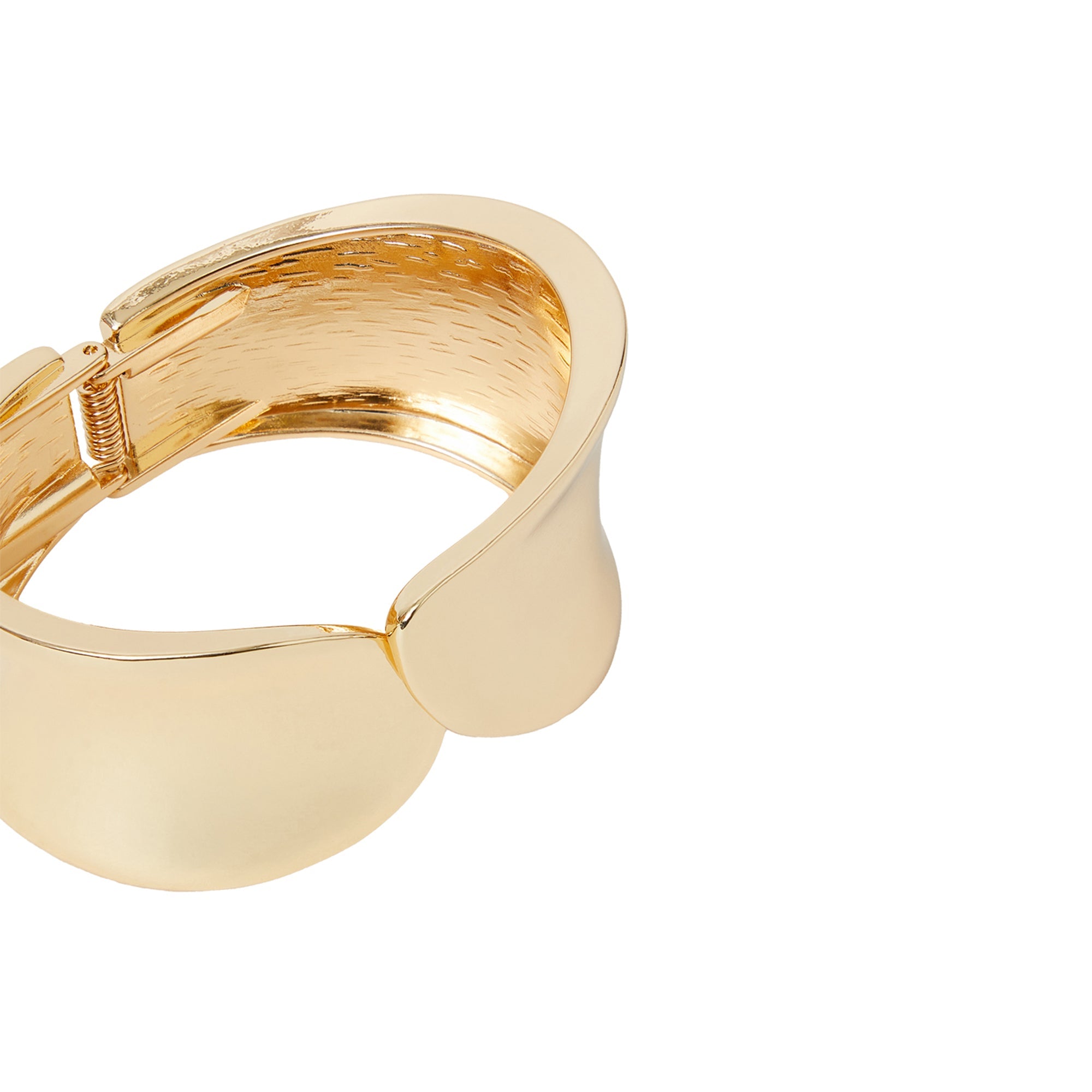 Boho energy. Designed in a chunky profile, this bangle features a smooth texture with a shiny finish. Fastens with a hinged clasp.