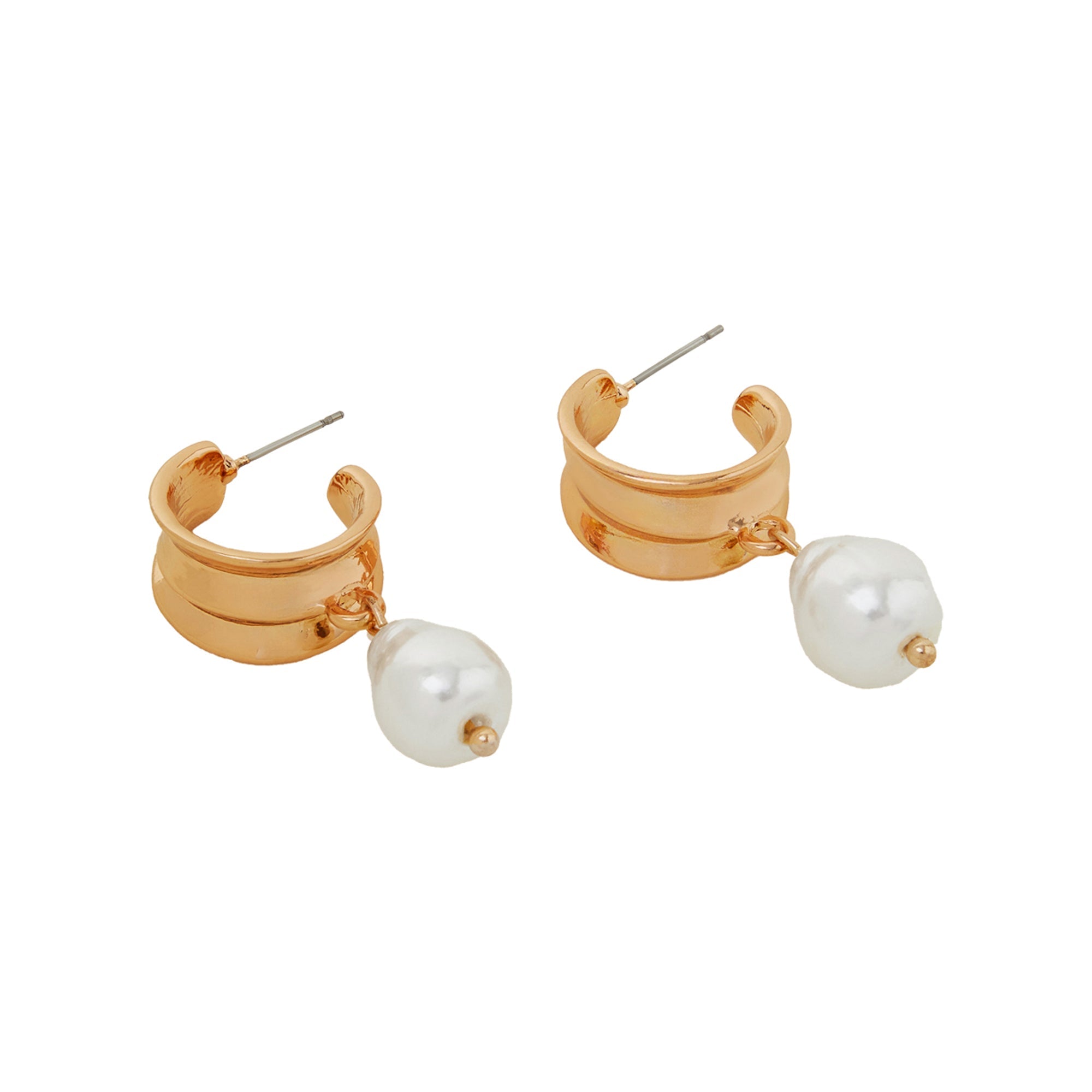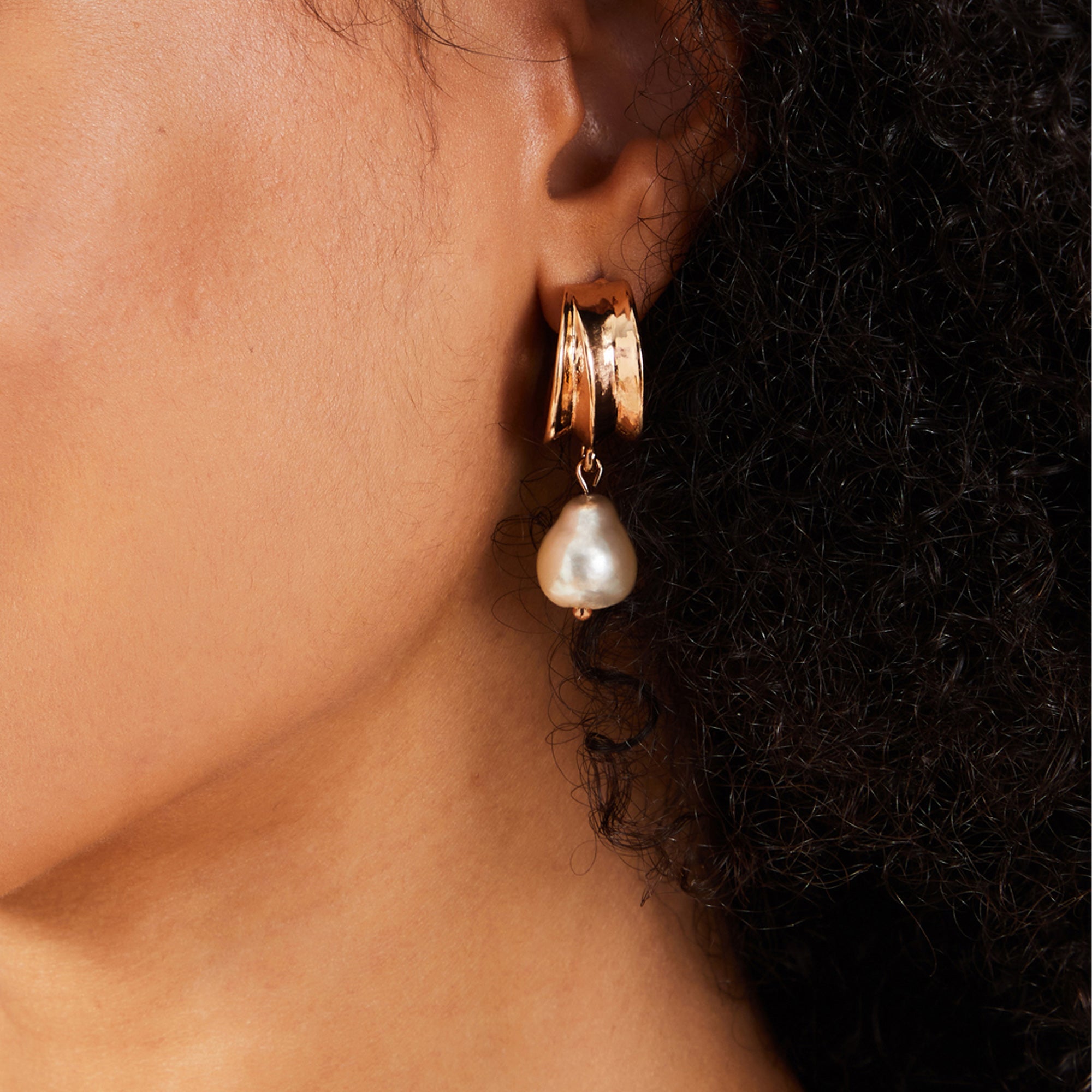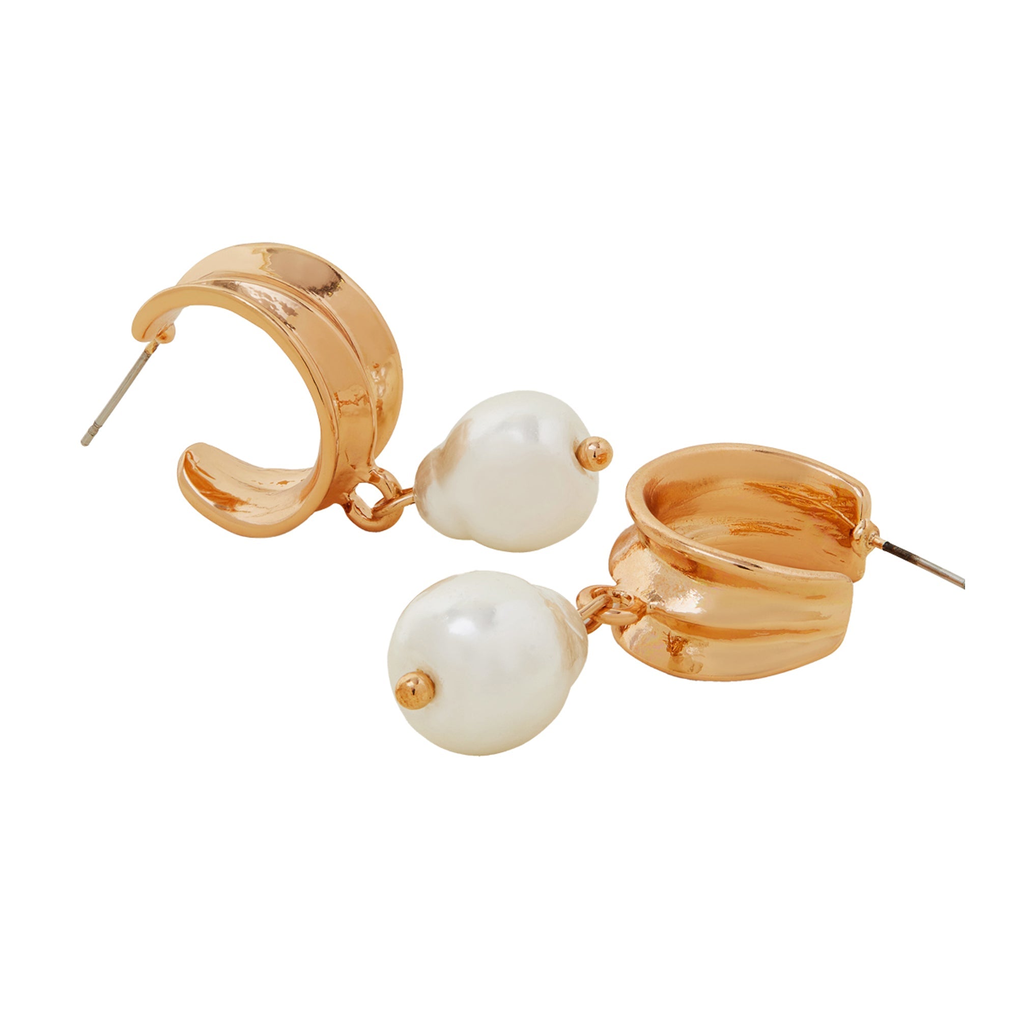 Featuring a wide hoop, these earrings are finished with a tiny hanging pearl charm for a touch of luxury on your every day looks.