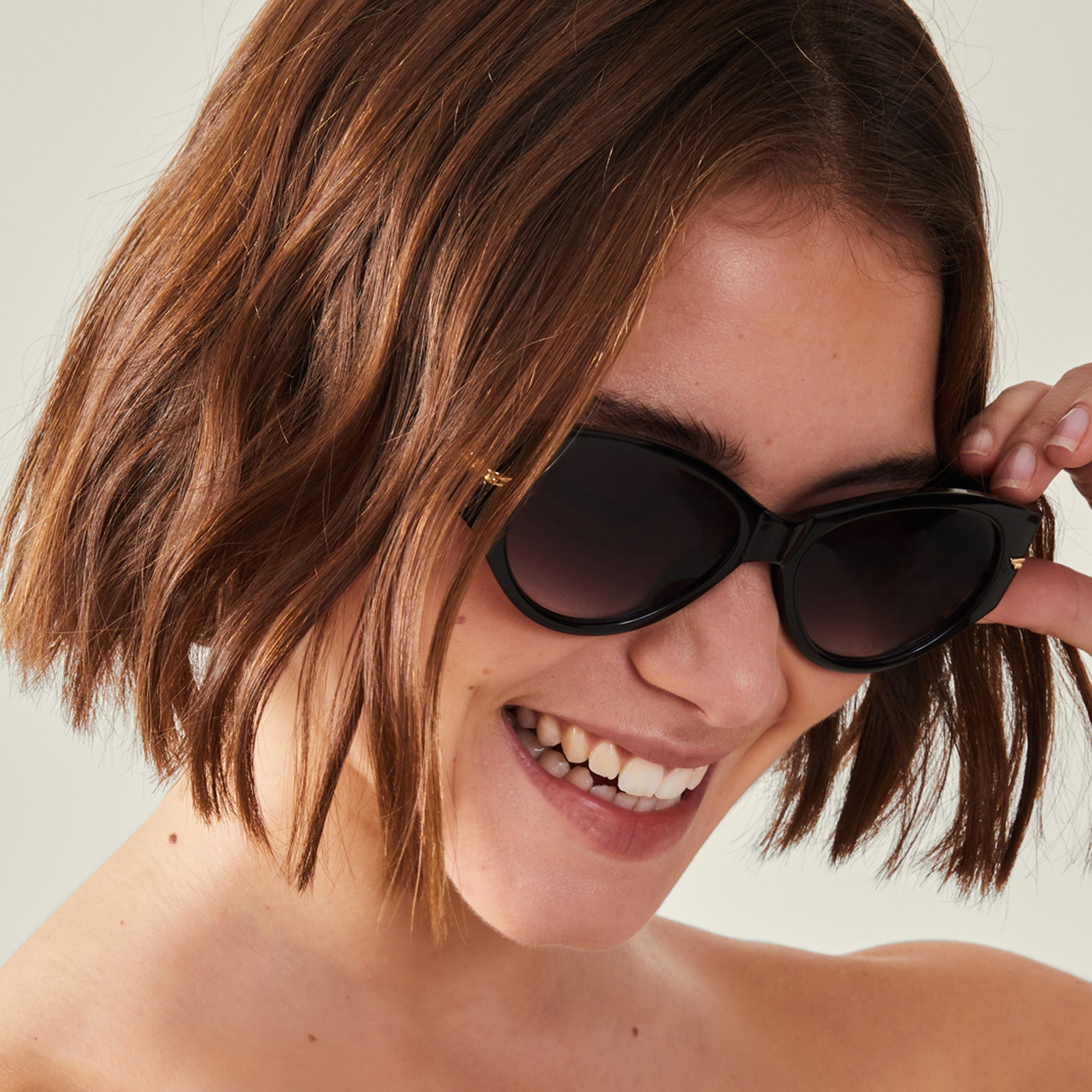 Keep these sunnies close by for those sunny coffee runs to the café at lunch. Designed with jet-black rims, shaded lenses, and boned metal arms.