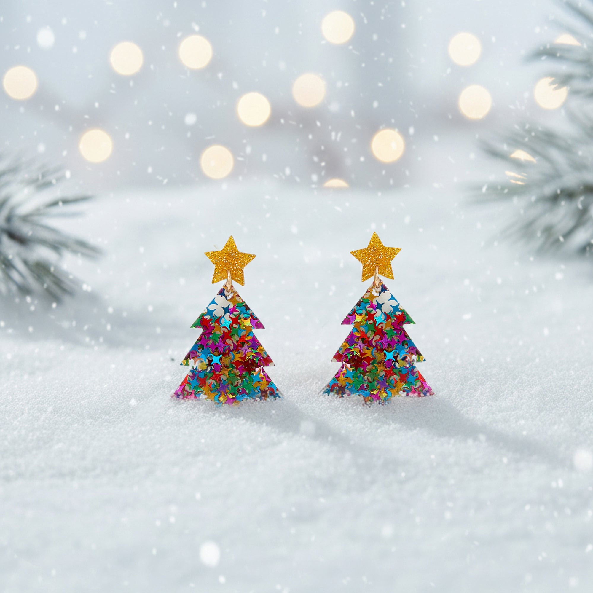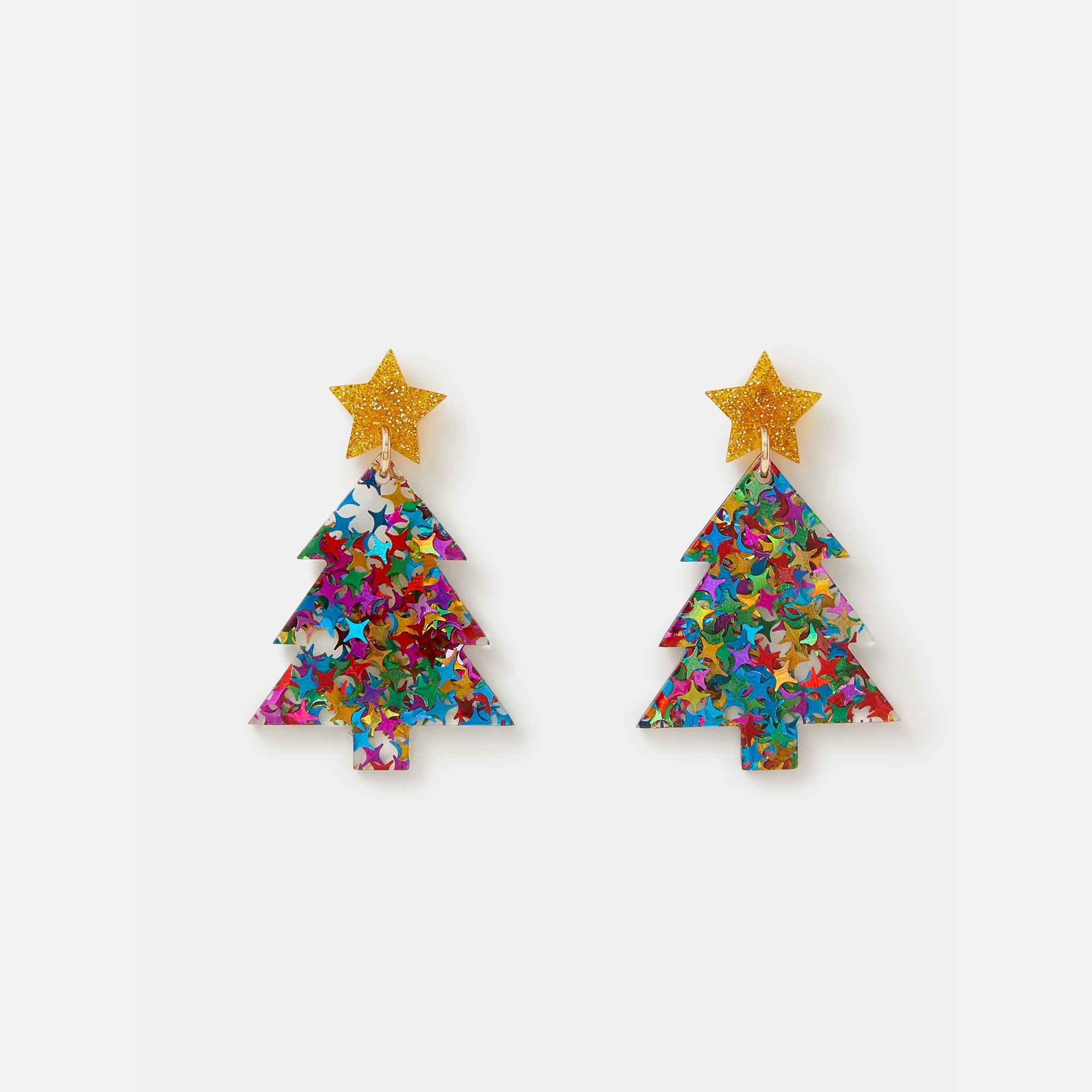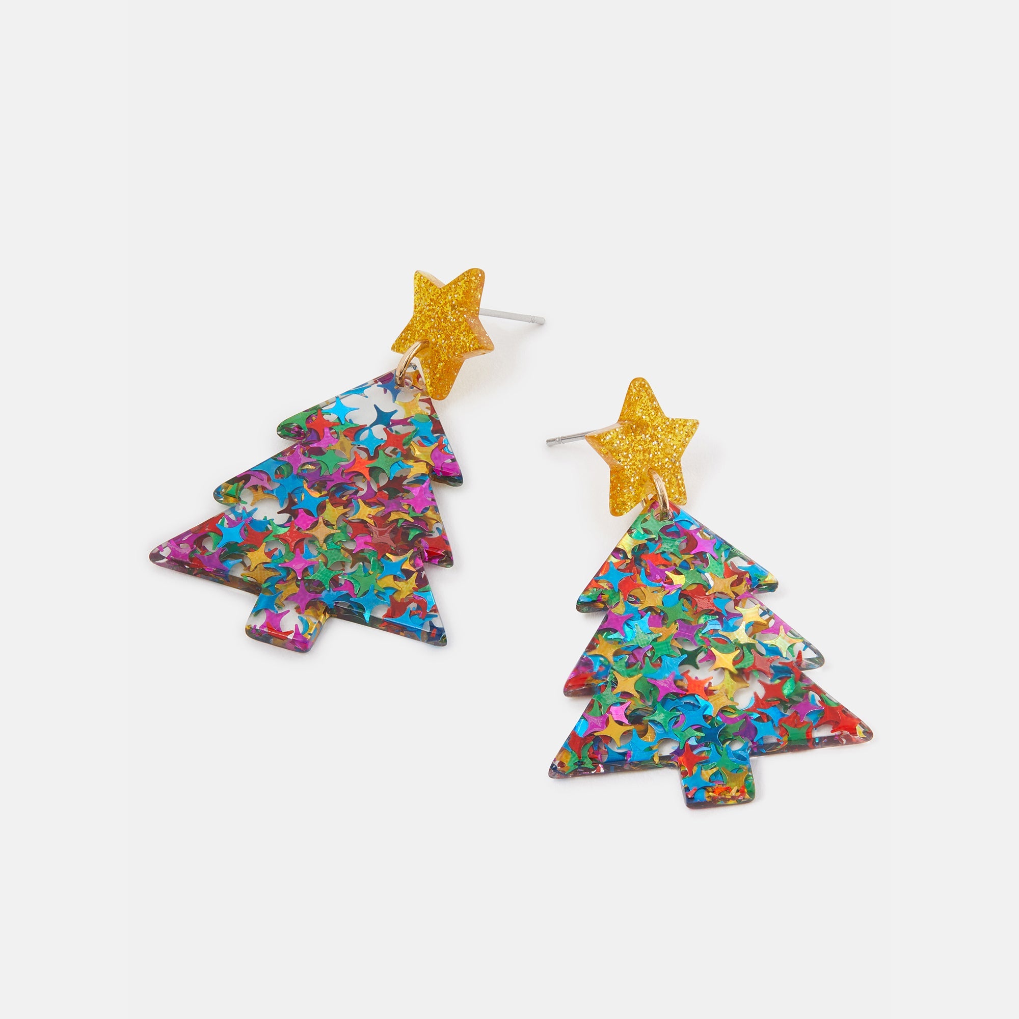 Your Christmas party look isn't complete without these sparklers by your sides. Shaped like a Christmas tree with star-shaped confetti inside, these earrings spark joy throughout the festive season.
