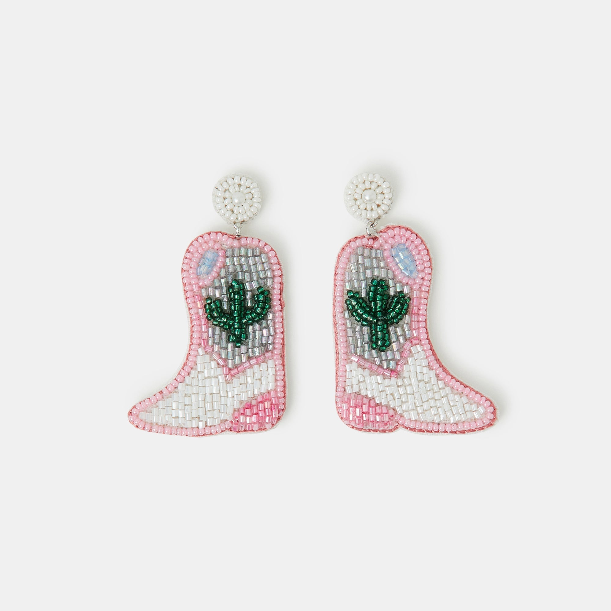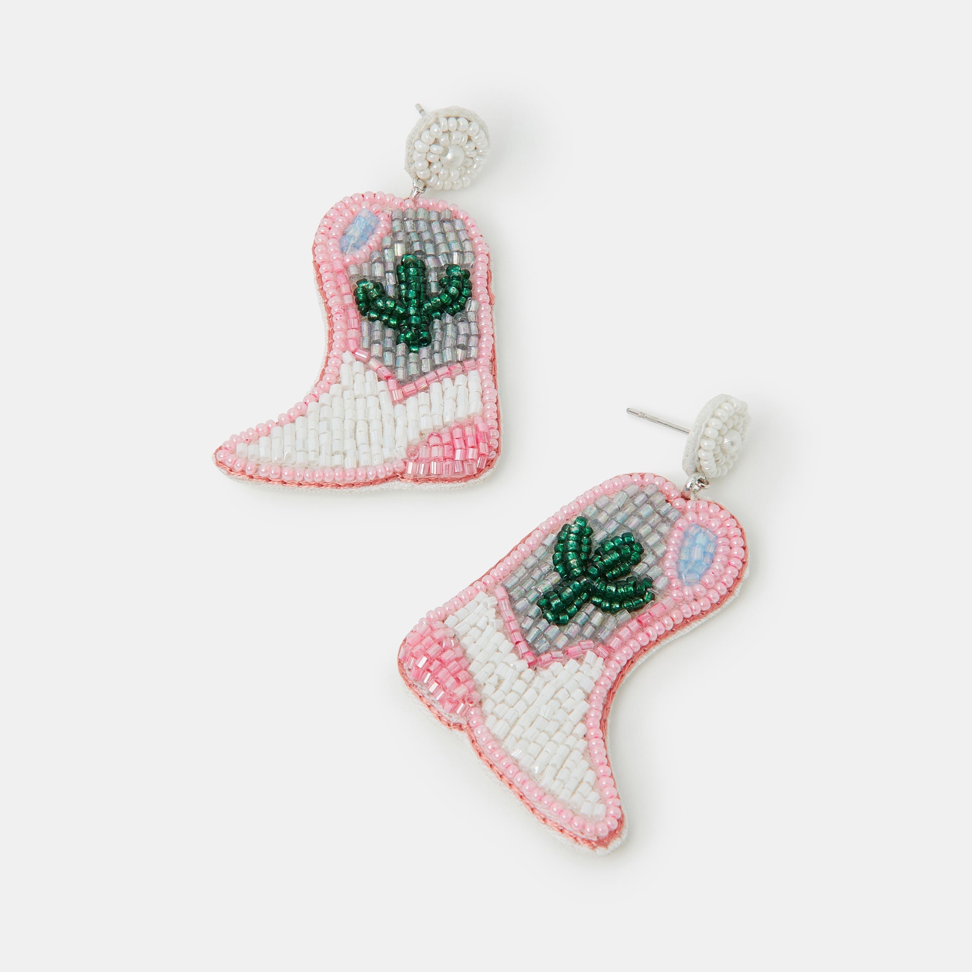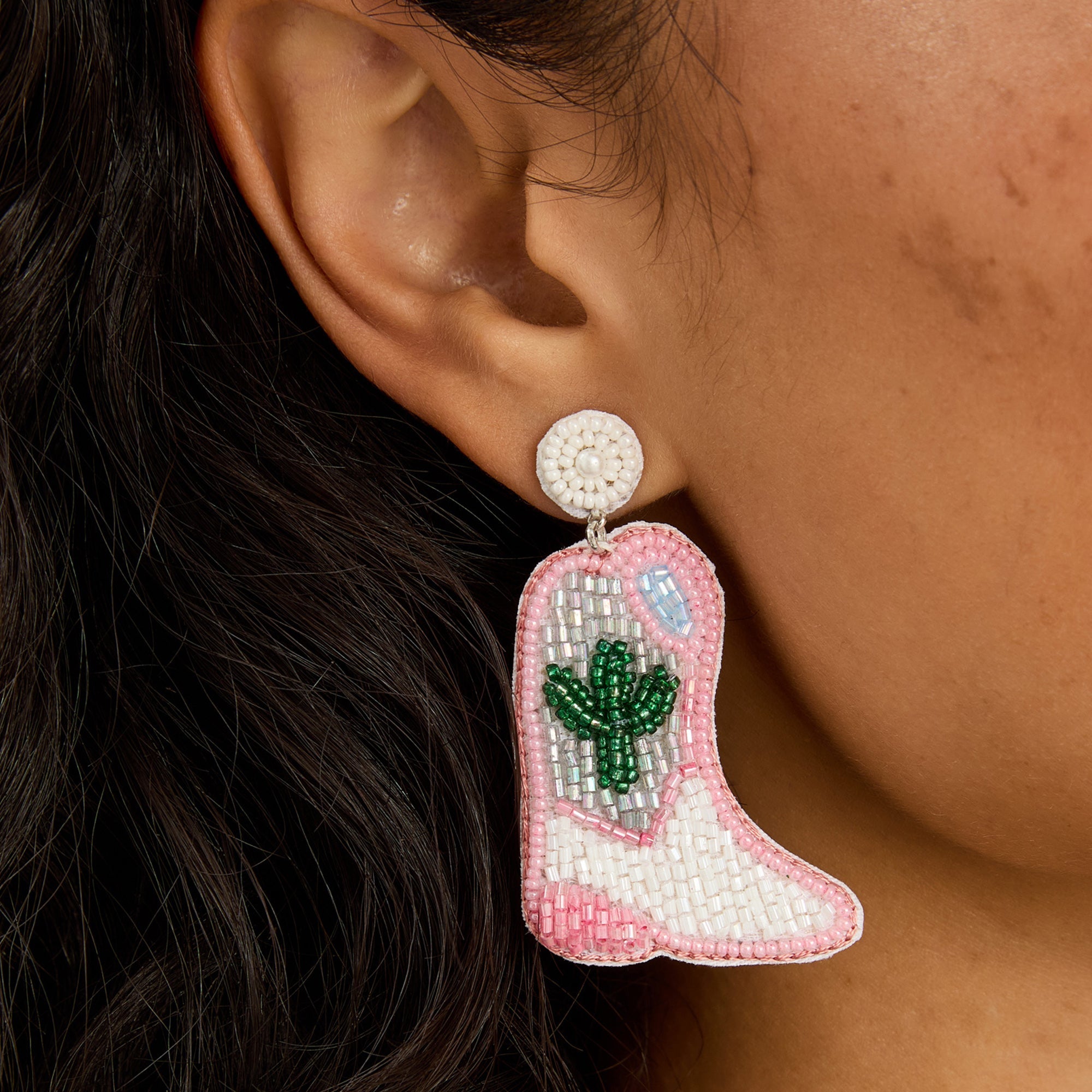 Howdy! Trendy and super fun, these beaded cowboy boot earrings are a playful addition to your ear stack.