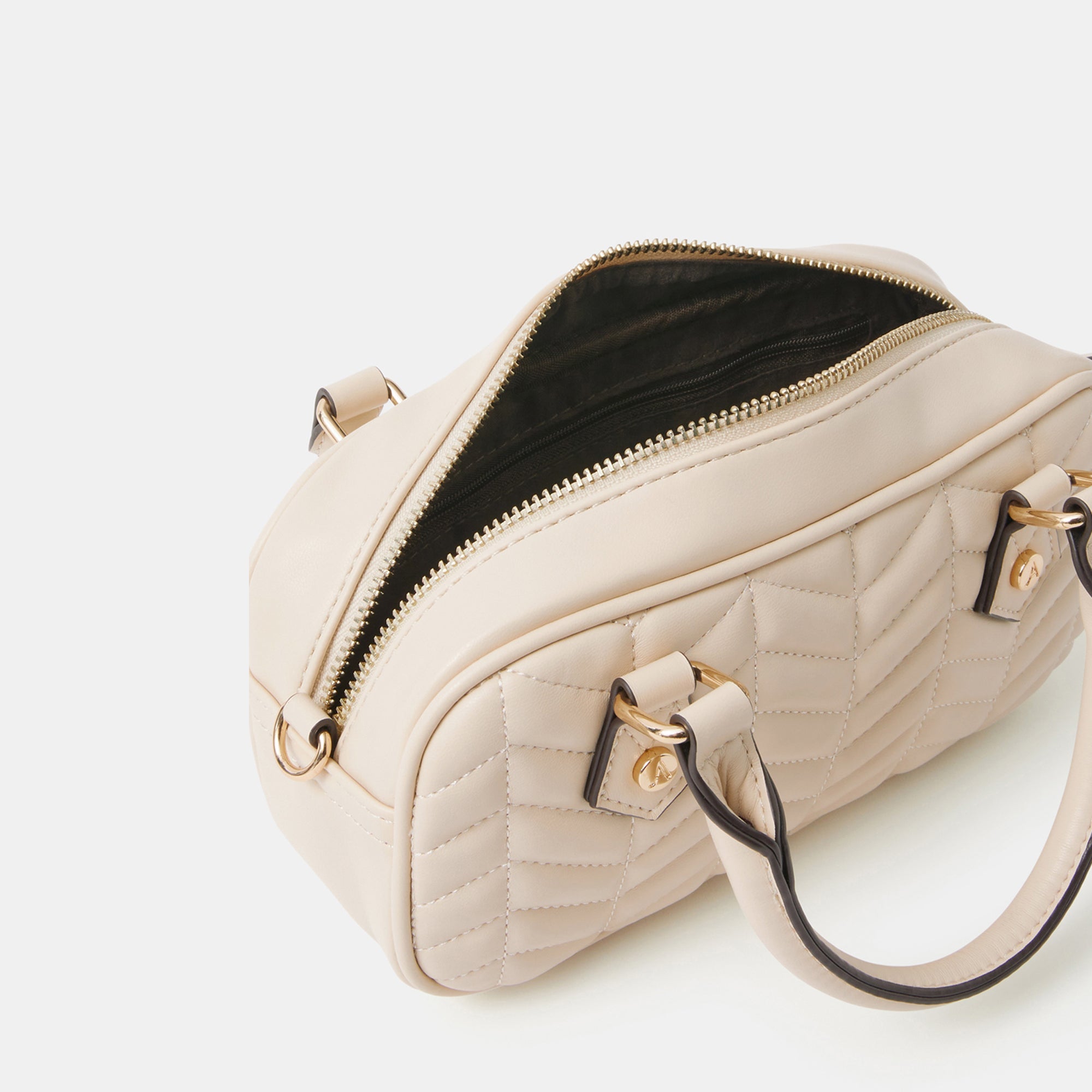 The perfect plus-one for... well, anything! Cute and compact, this mini handbag is stitched with a quilted finish and features a main zip compartment, inner zip pocket and optional crossbody strap for hands-free styling. Cream