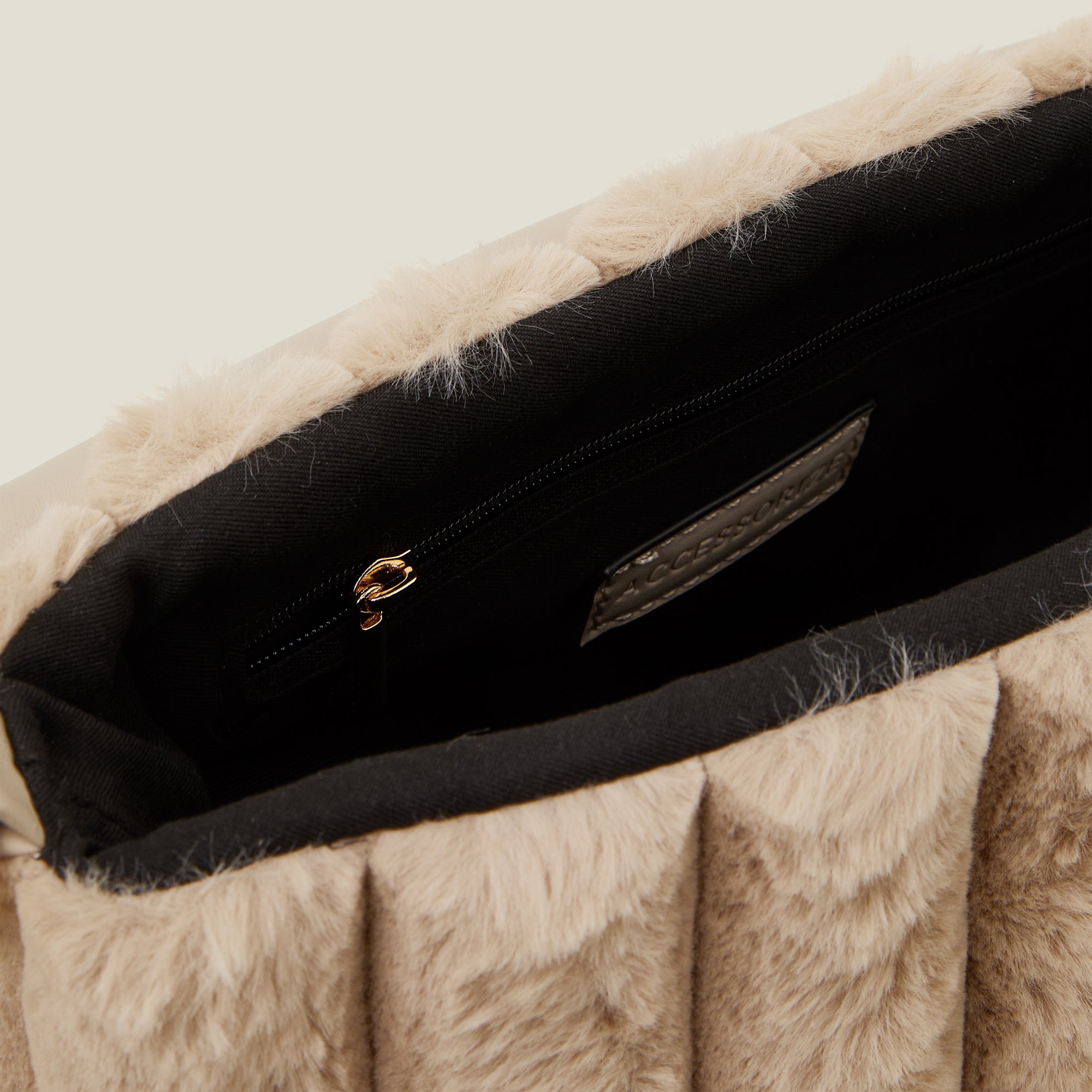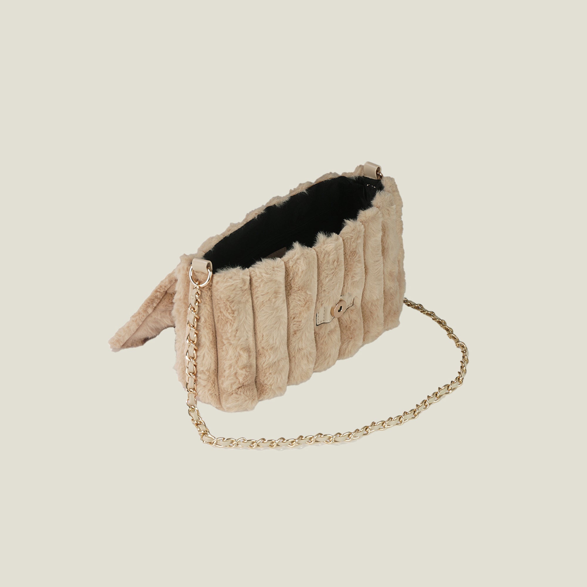 Ooooooh, you big softie. Featuring a fold-over flap and quilted faux fur finish, this bag adds a little luxe to any look. Sling it over you shoulder with the chain strap and take on the bars!