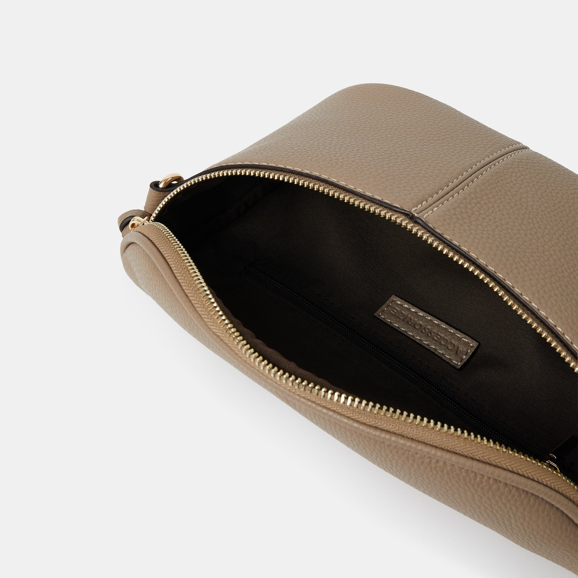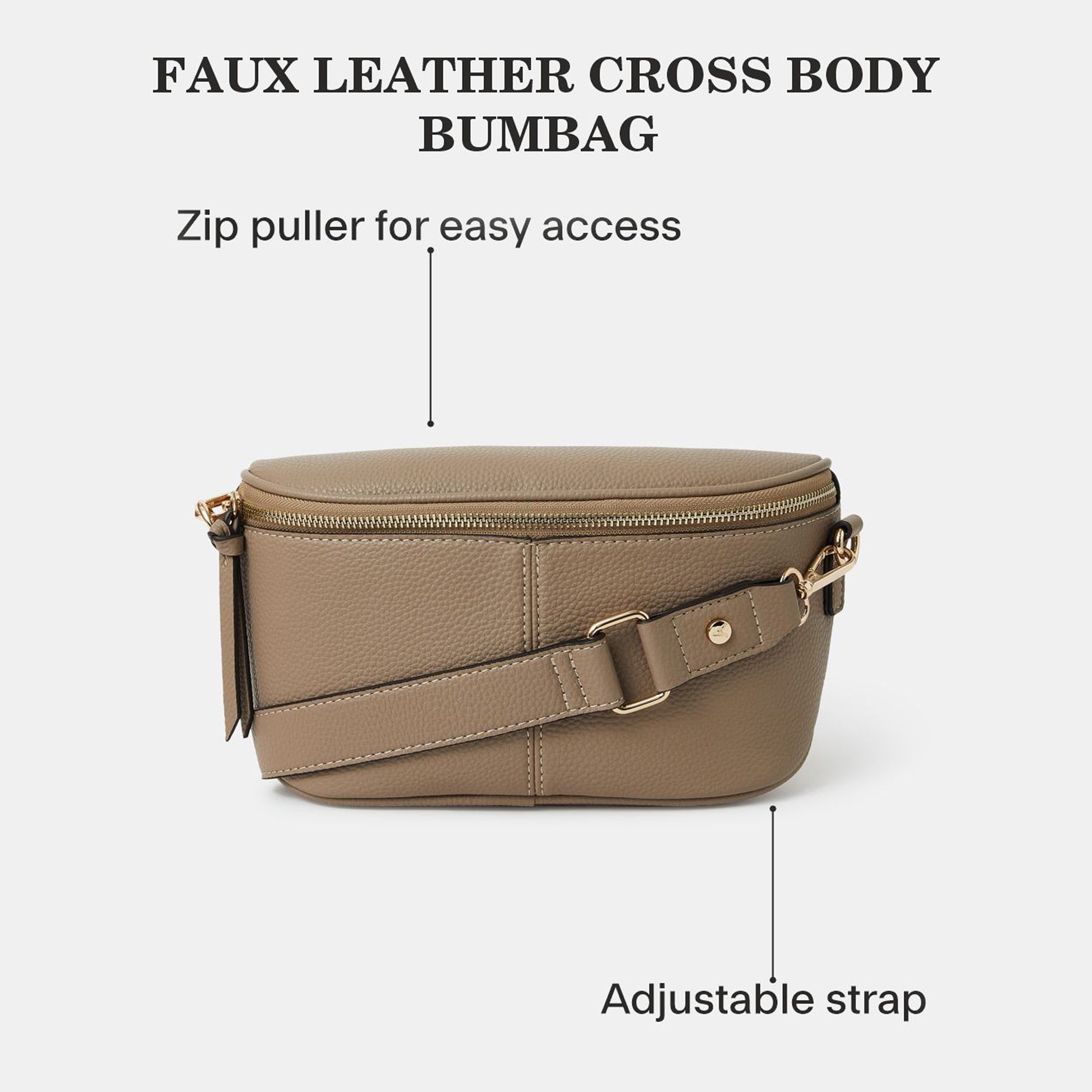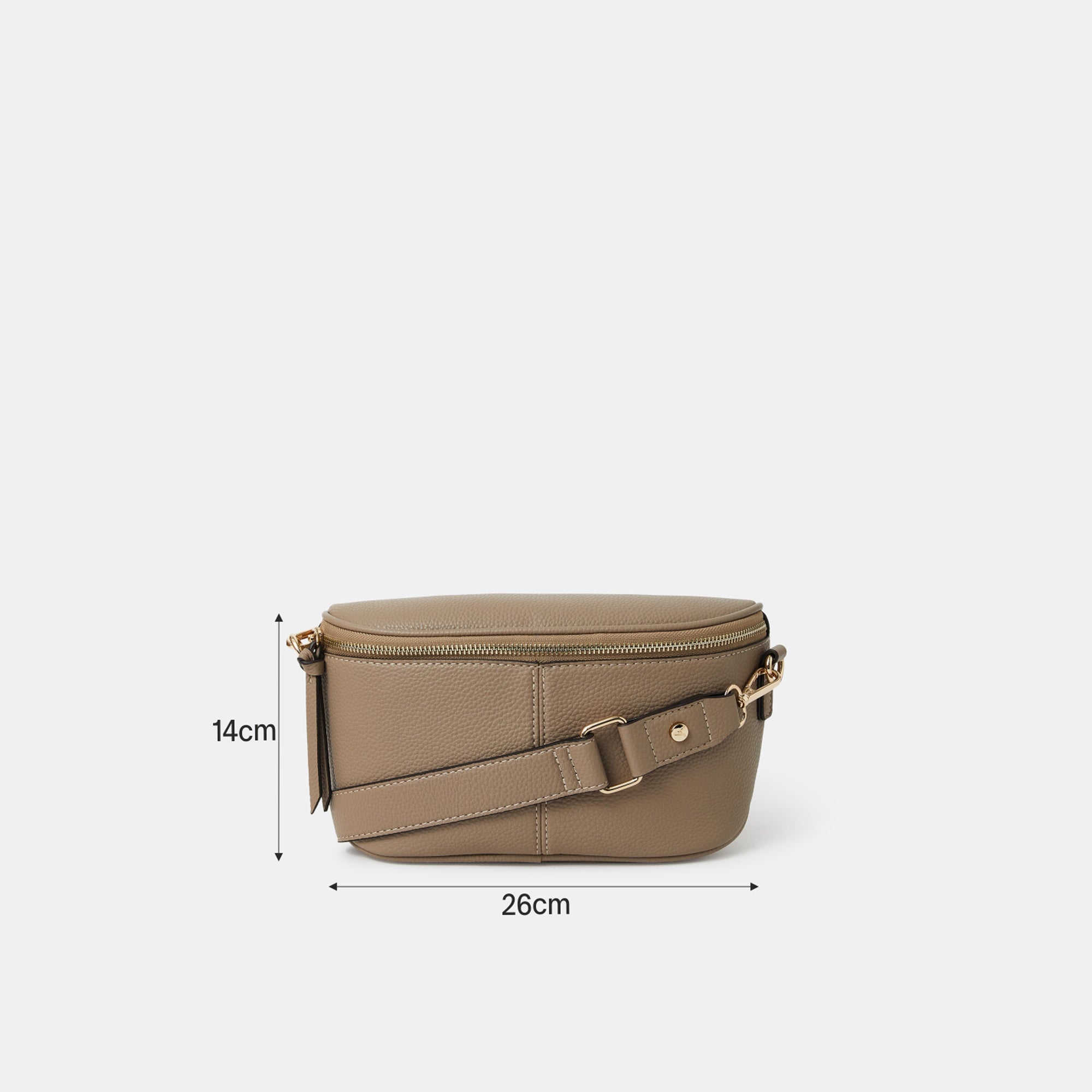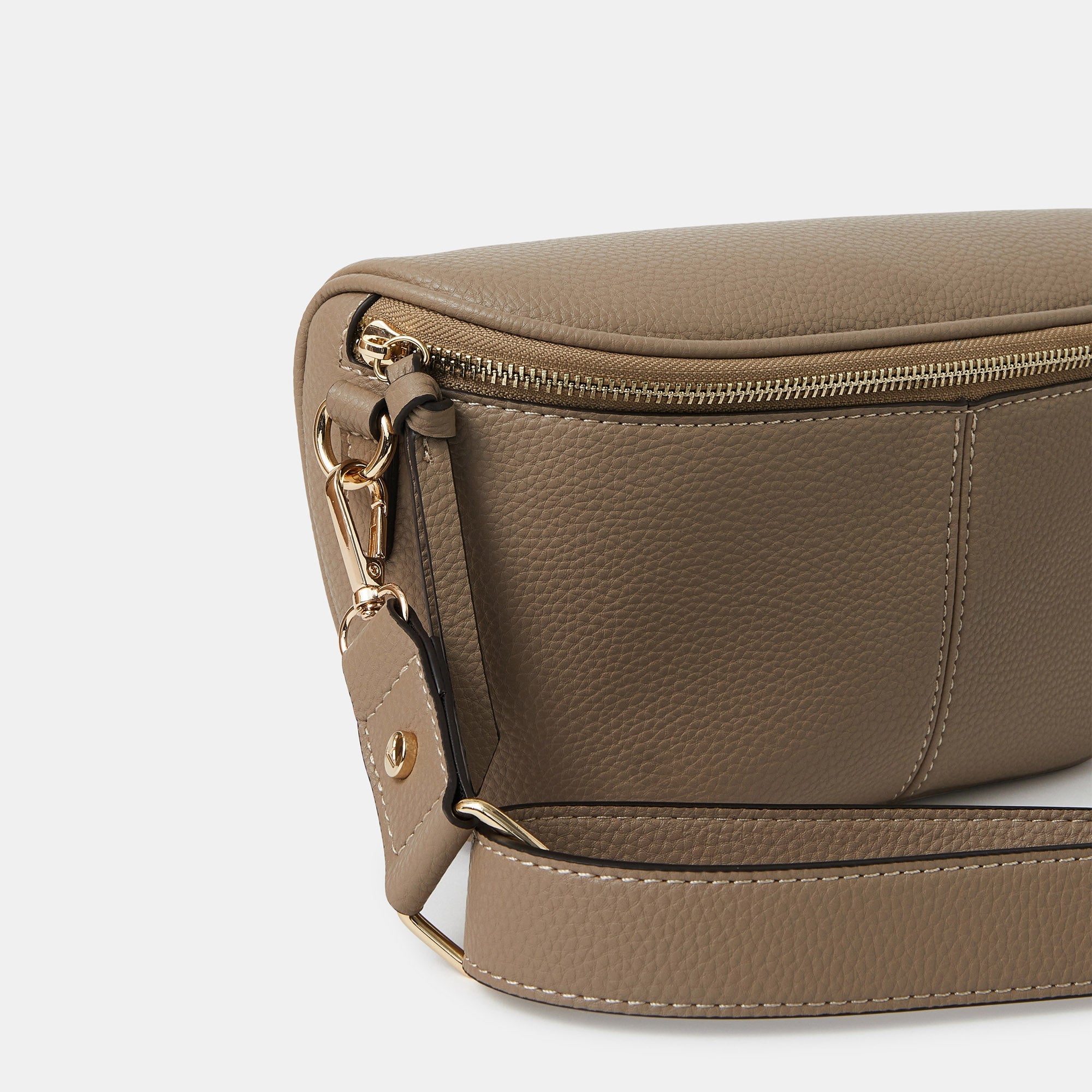 Inspired by a bumbag silhouette, this compact crossbody is perfect for slinging over all your weekend looks. Designed with a zip compartment and adjustable strap. Brown