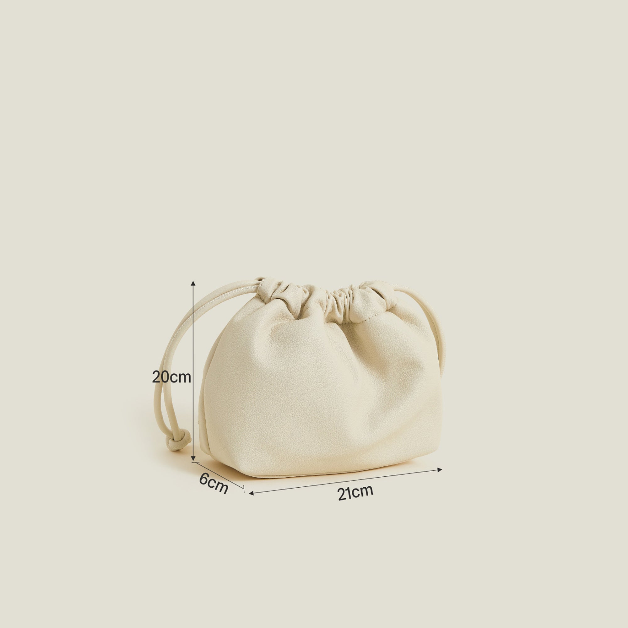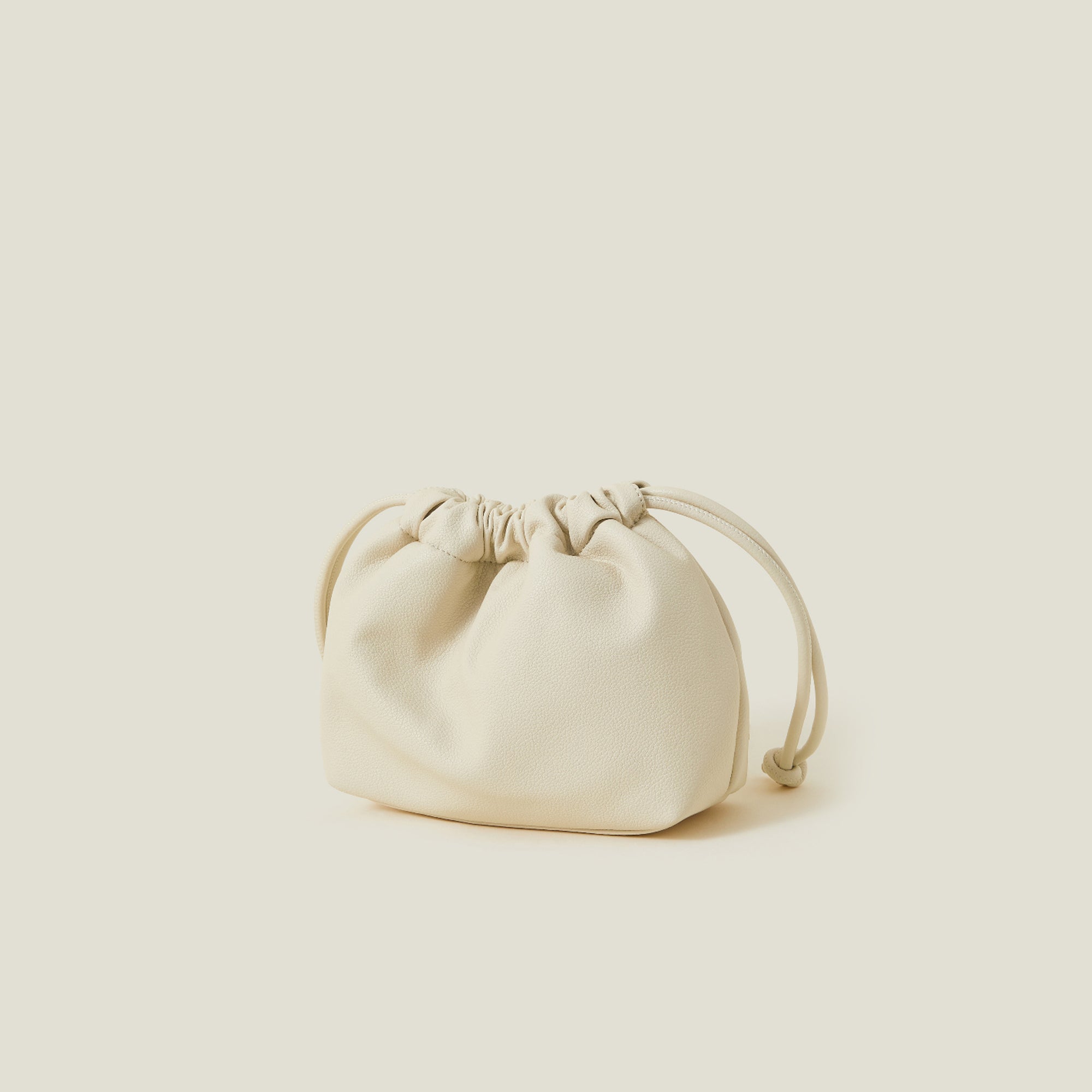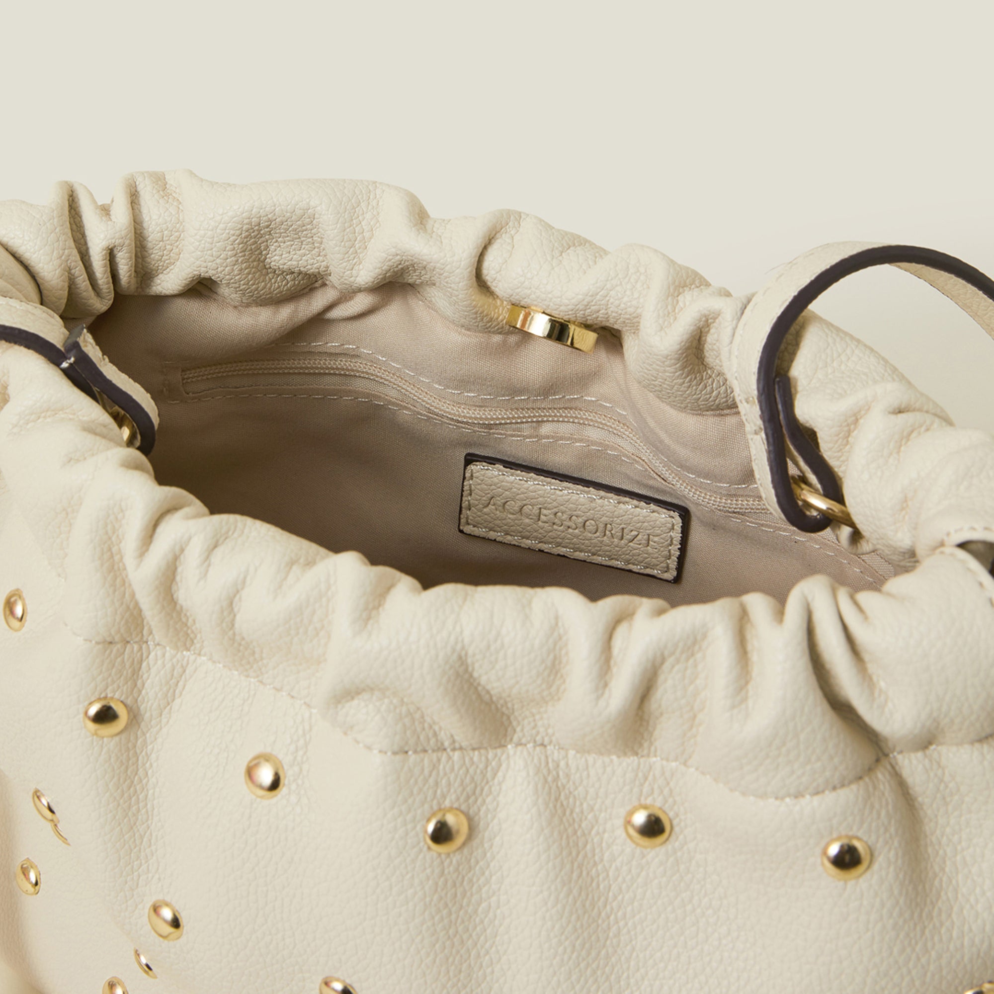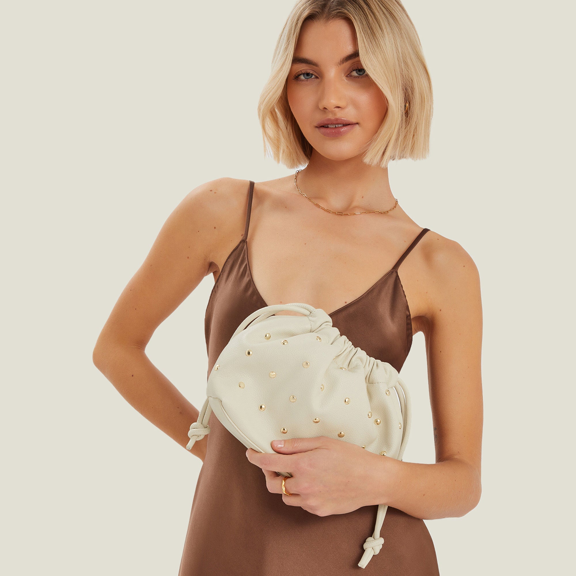 Cream Studded Drawstring Pouch Bag