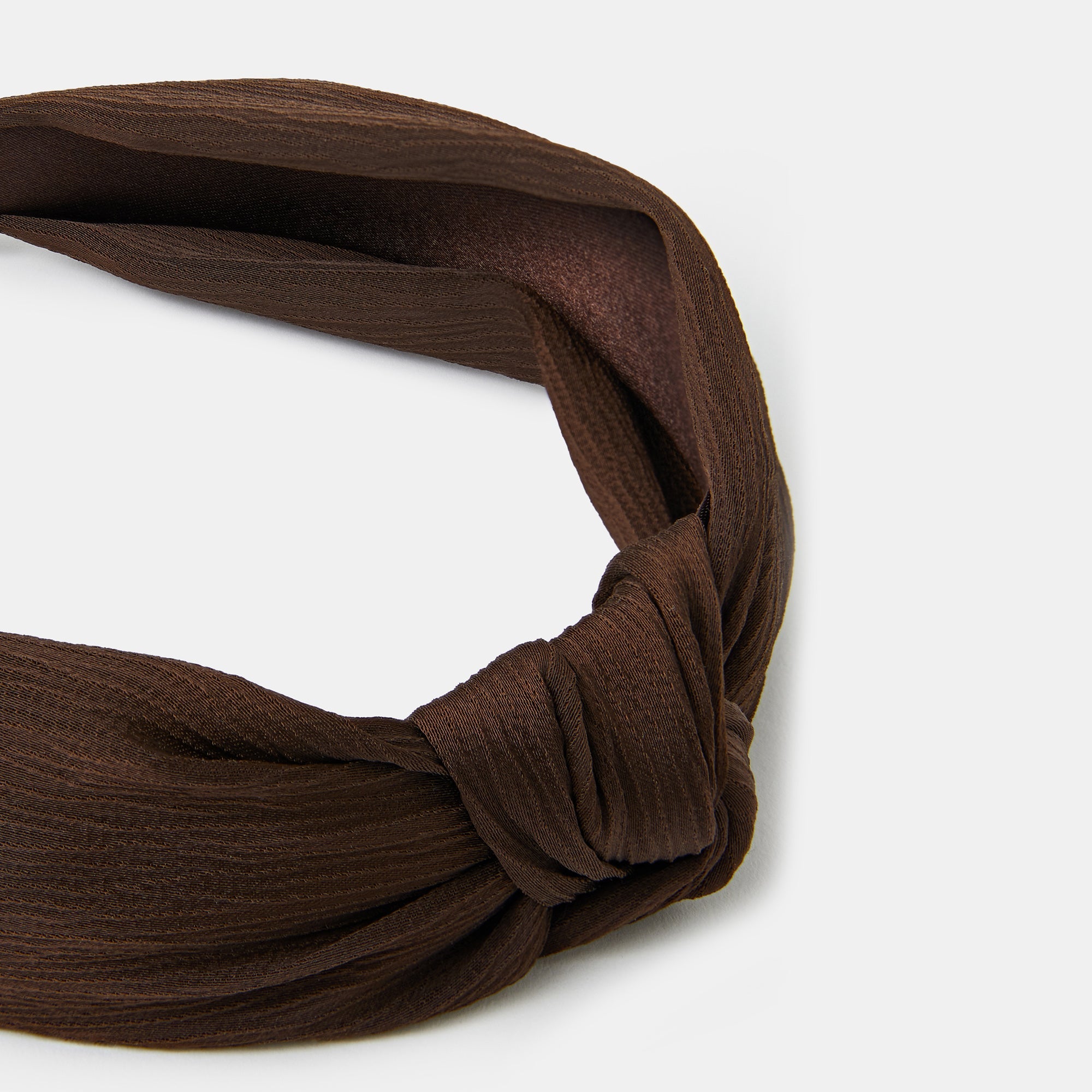 Bad hair day? No problem! An easy way to elevate your looks, this headband is made from in a dreamy chocolate brown fabric with a knot detail and crinkled finish.
