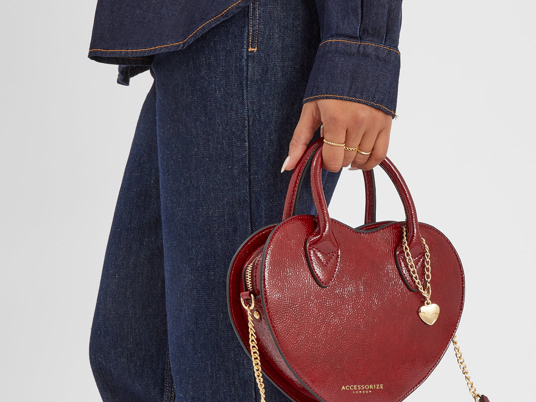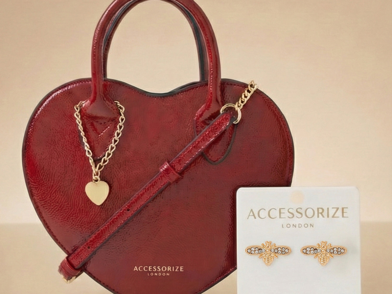 Designed to celebrate love in style, this charming Valentine’s combo from Accessorize London pairs playful elegance with statement romance. The crystal-embellished bee stud earrings add a subtle sparkle and whimsical touch, perfect for everyday wear or special moments. Complementing them is a bold heart-shaped sling bag in a rich red hue, finished with a delicate chain strap and heart charm for a truly romantic feel. Style the earrings for a hint of shine, while the standout sling bag becomes the focal point of your look—ideal for date nights, celebrations, and thoughtful gifting. A perfect blend of charm, romance, and modern femininity.