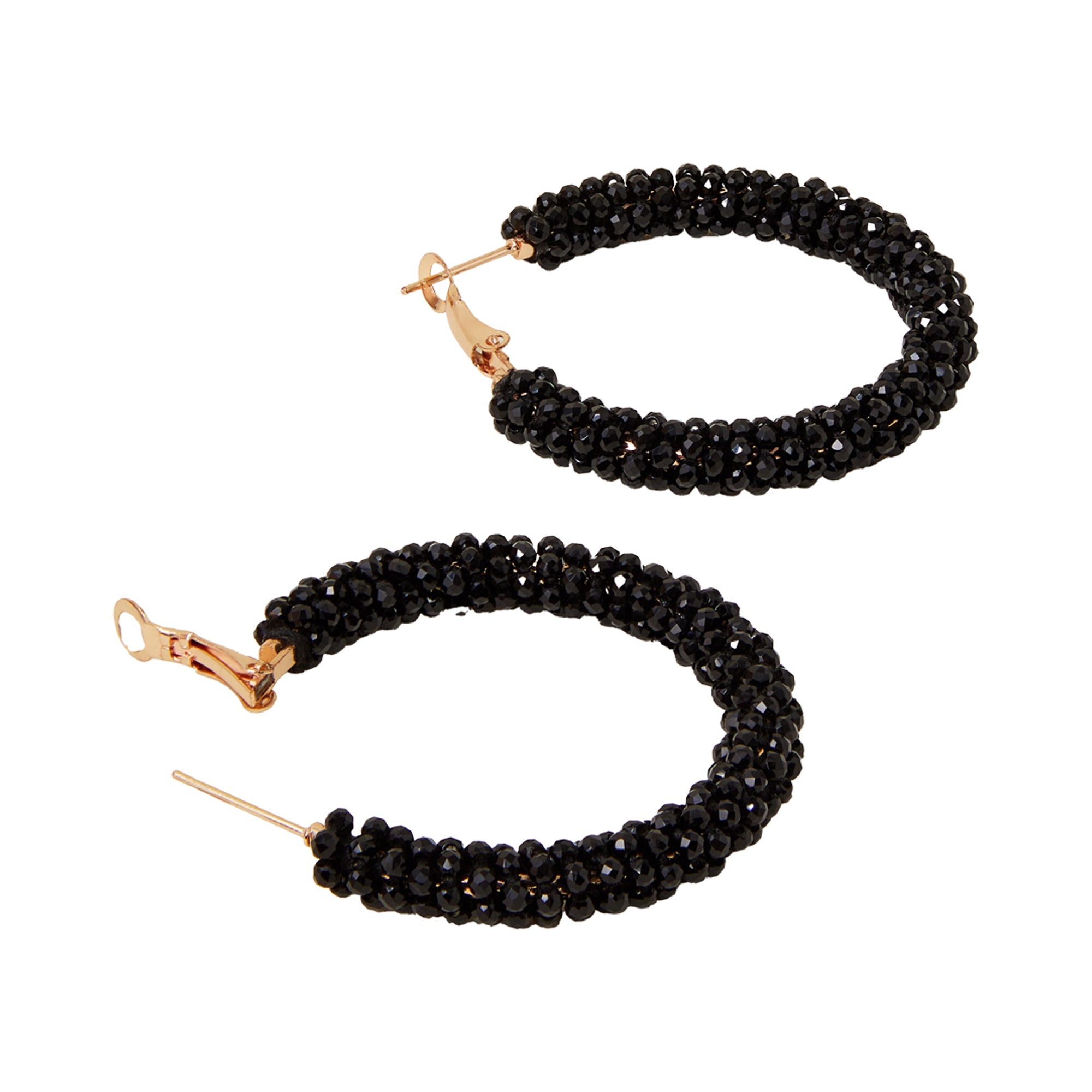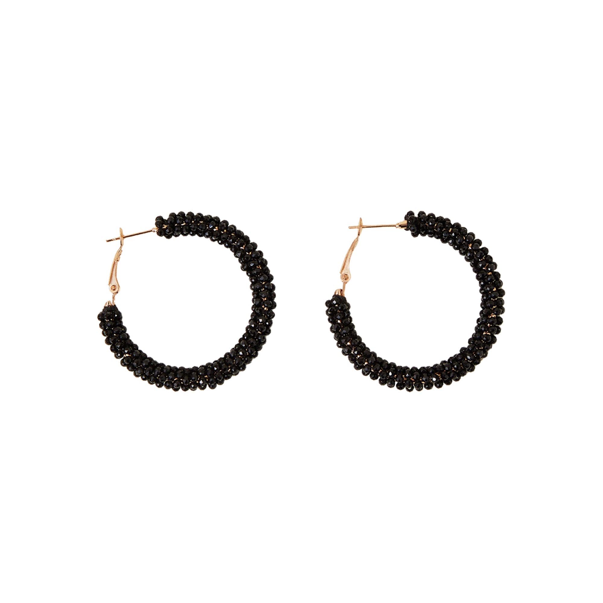 An elevated iteration of the classic hoops, this pair is decorated with black facet beads that endlessly sparkle when they catch the light.
