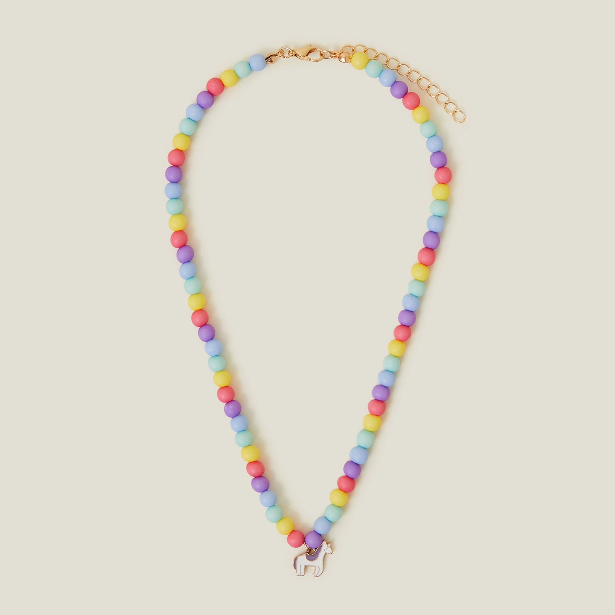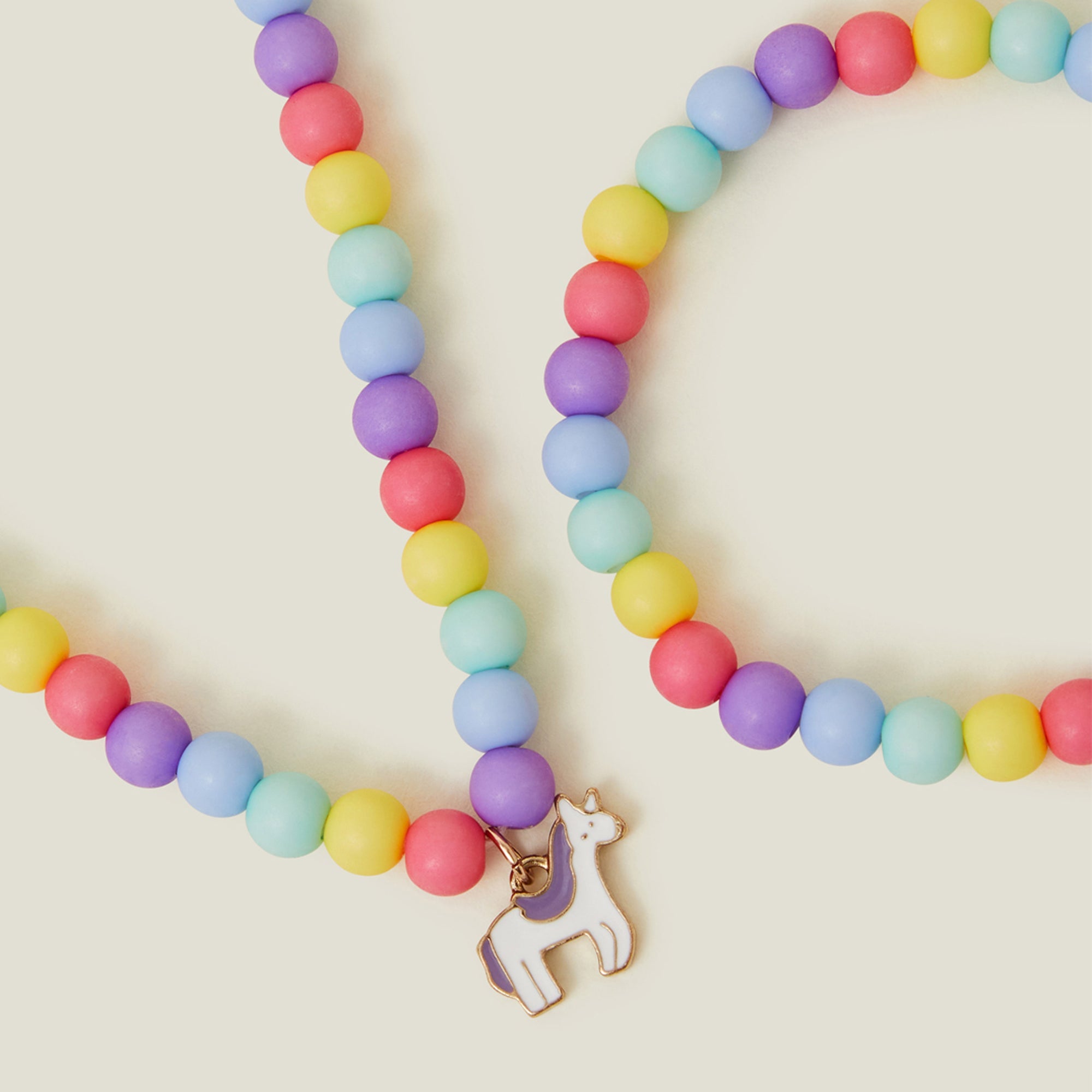 Candy coloured beads make this jewellery set irresistibly sweet. Featuring a magical unicorn charm to the necklace, it comes with a matching bracelet.