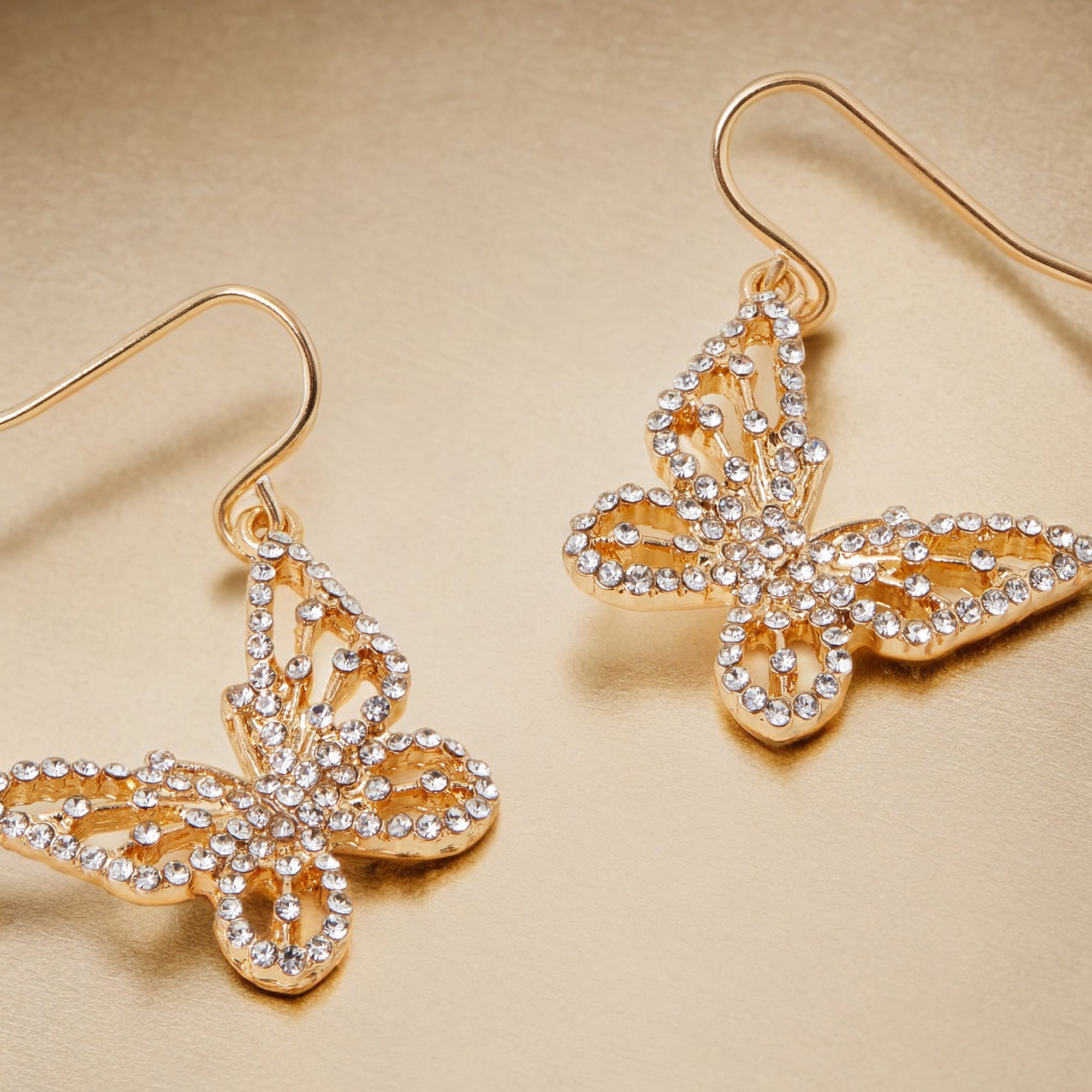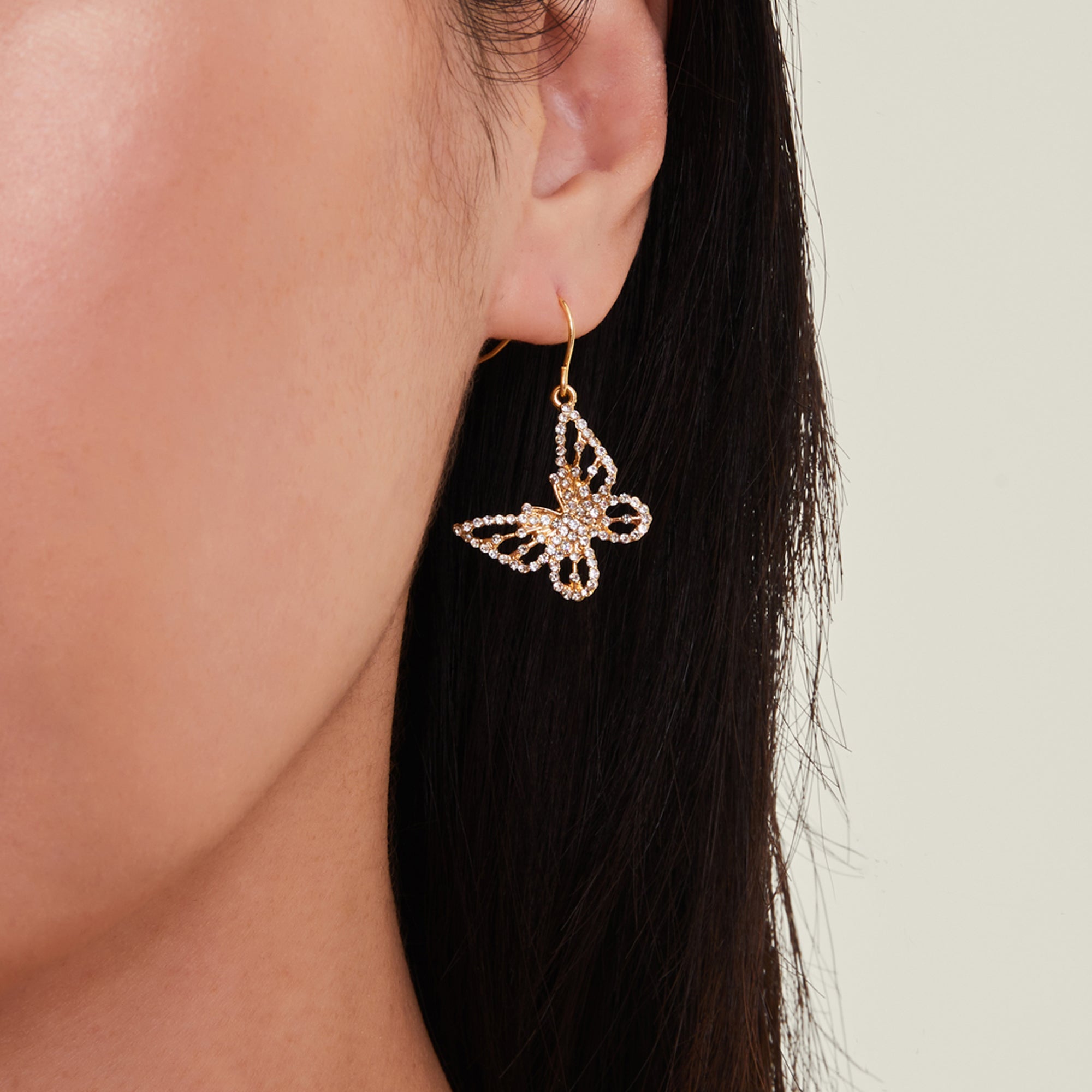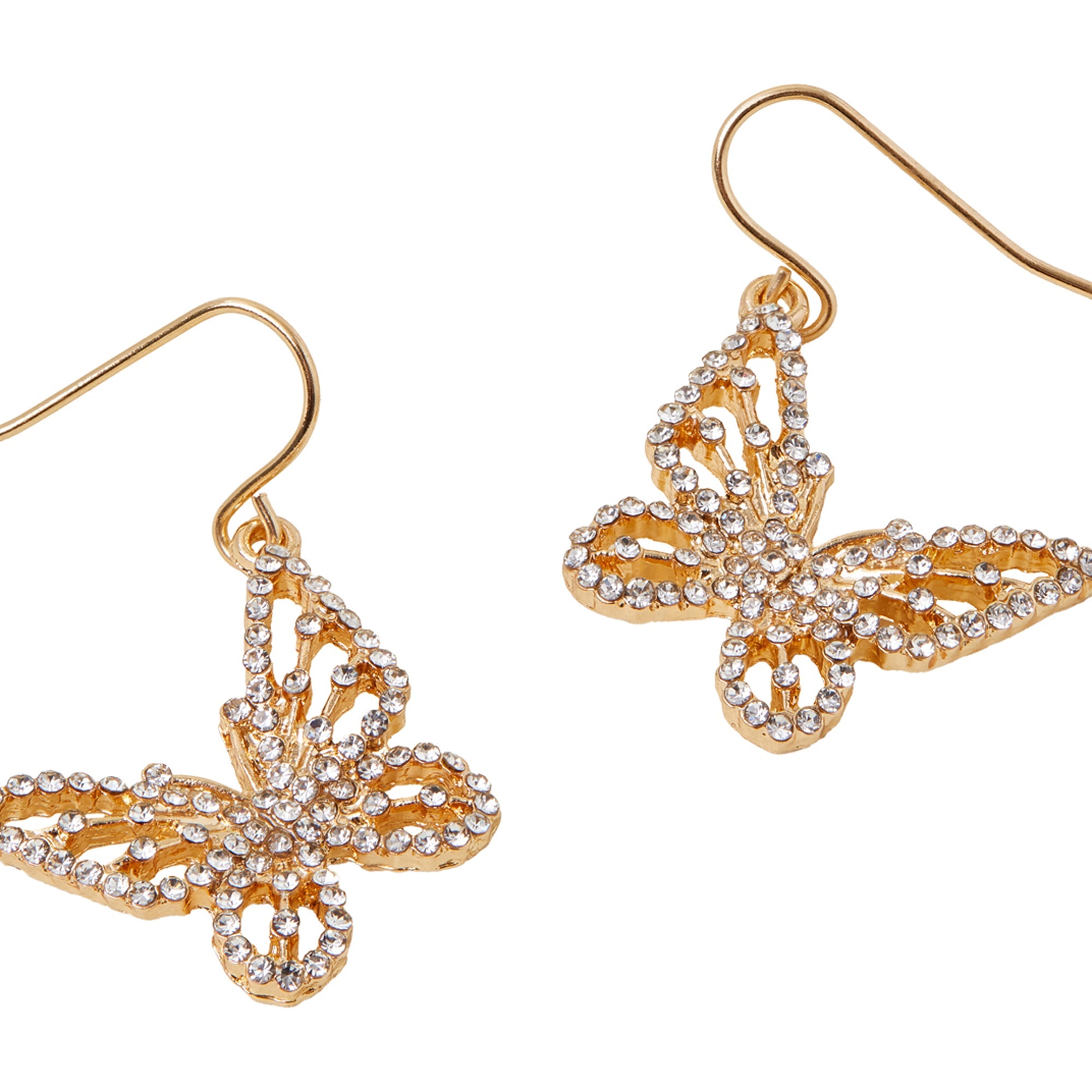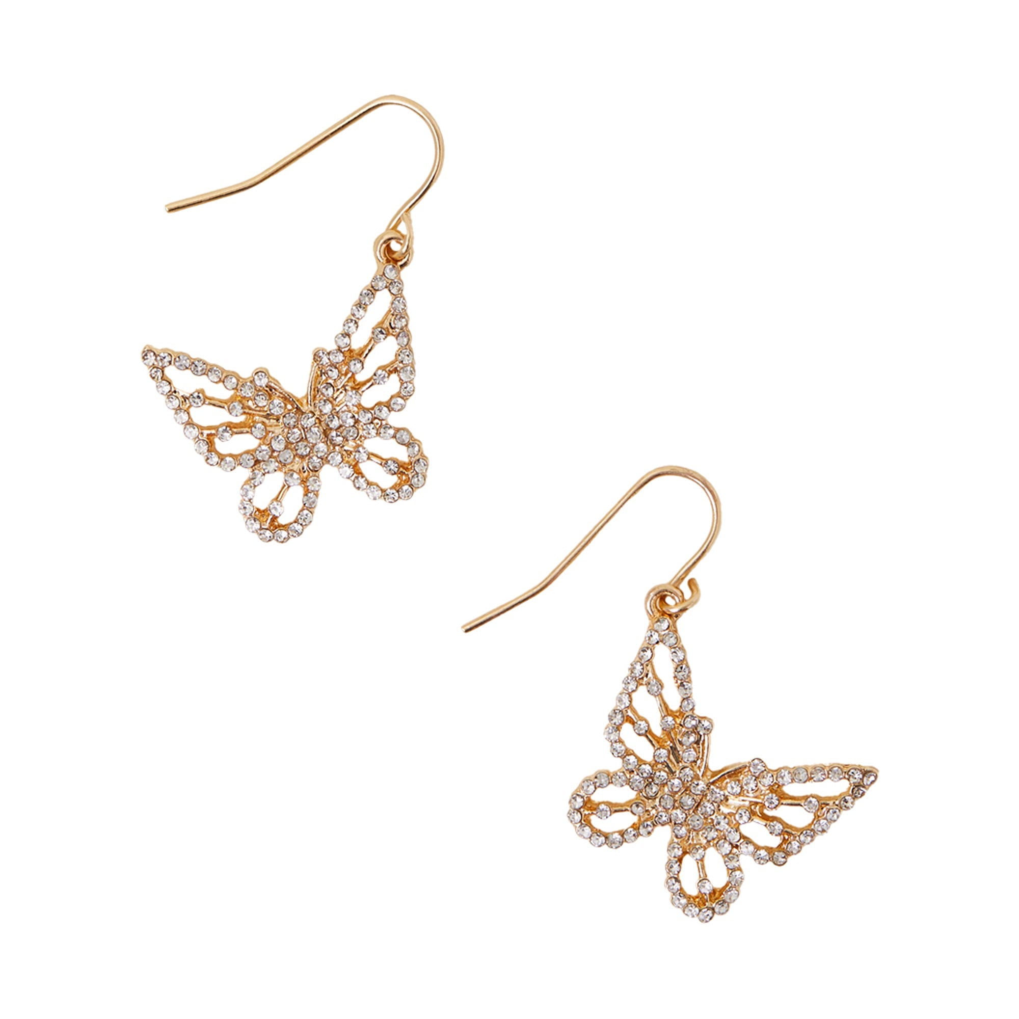 Featuring super-sparkly butterflies that flutter on a simple wire hook, these earrings are so cute, you'll never want to take them off. The Fish hook lock offers both security and ease of wear, providing a comfortable fit while keeping the earrings securely in place