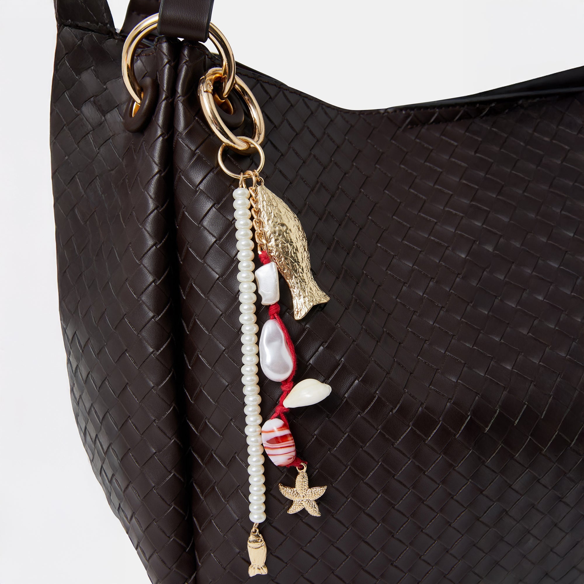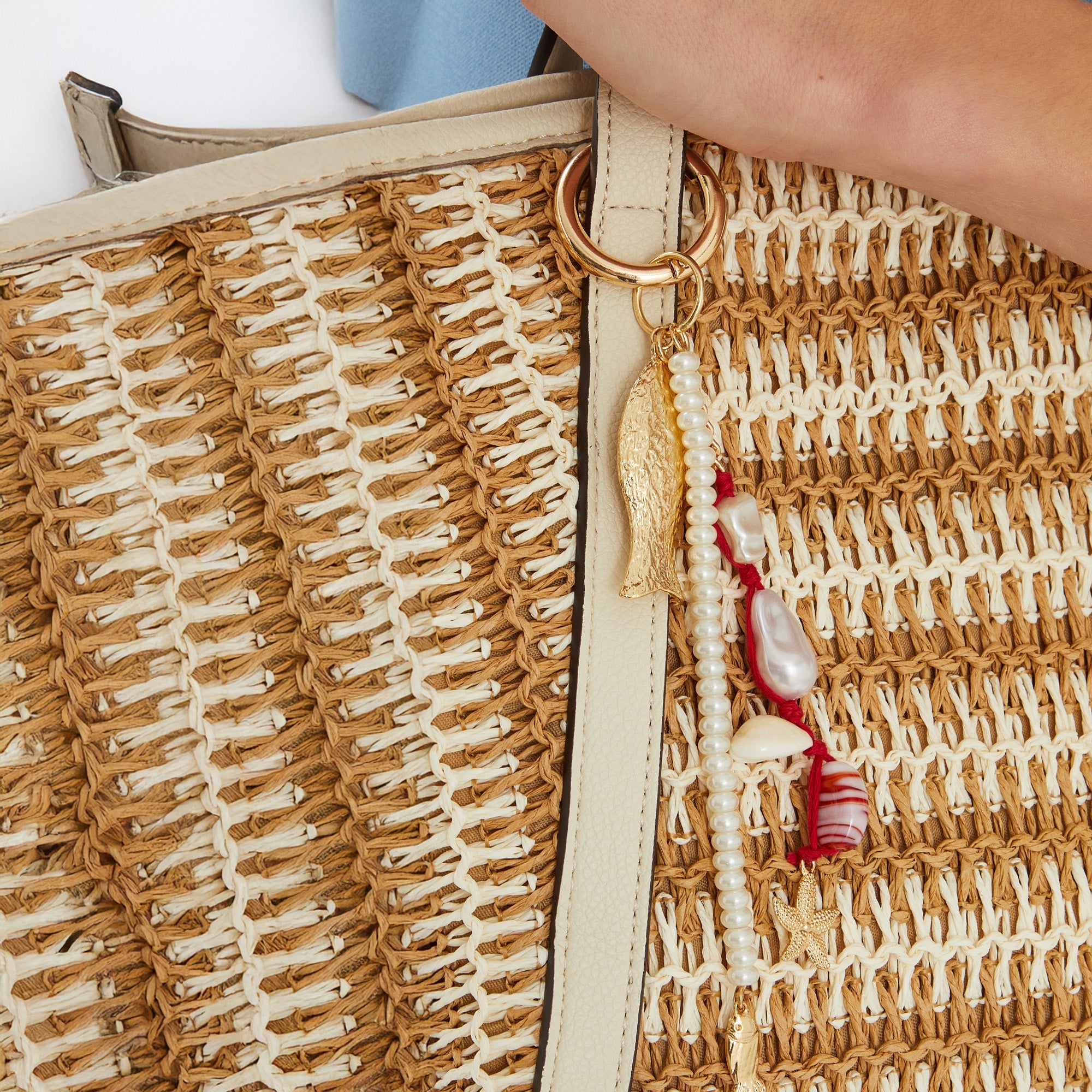 What a catch! Perfect for accessorising your beach bag or tote, this bag charm is decorated with fish motifs, faux pearls, pebble beads and seashells.