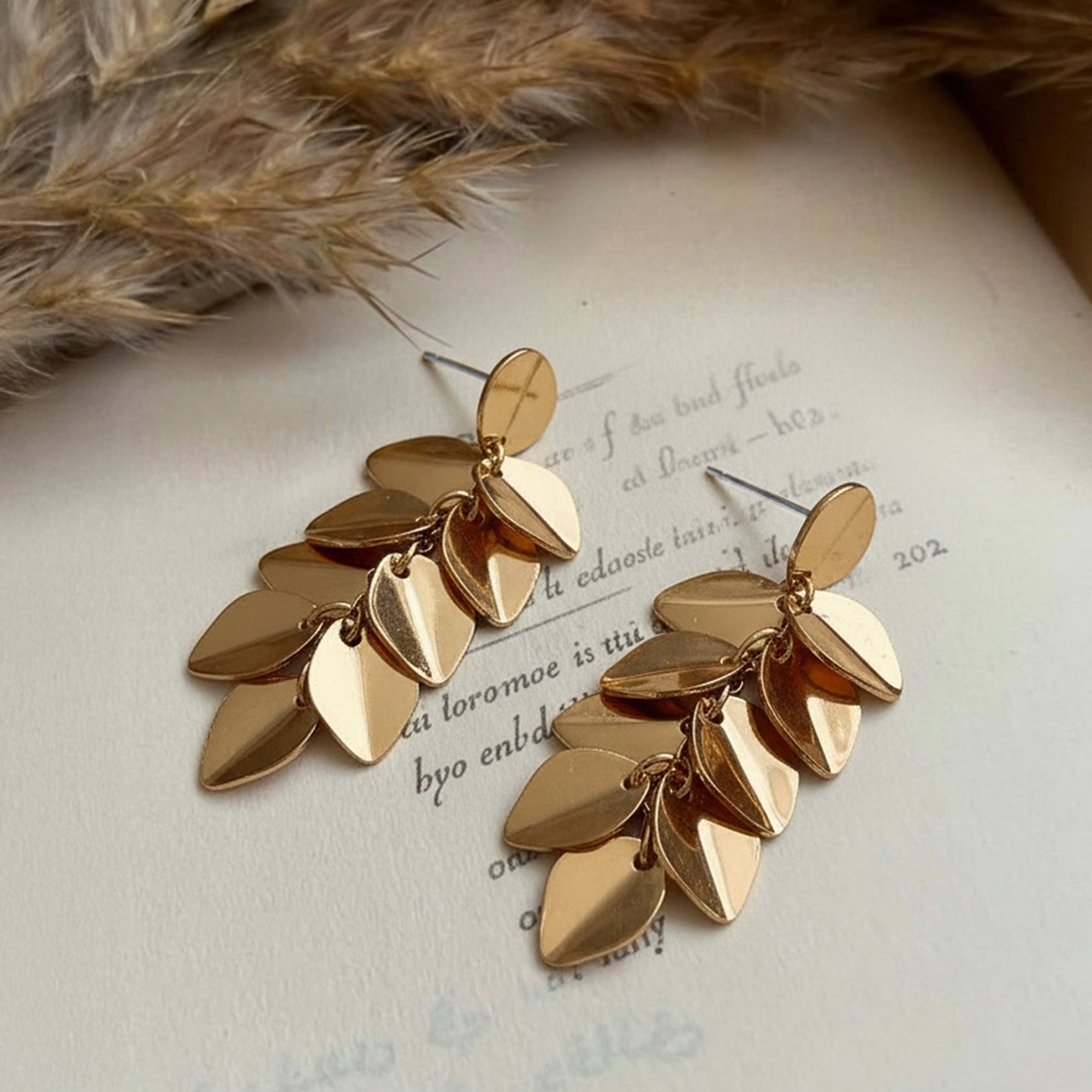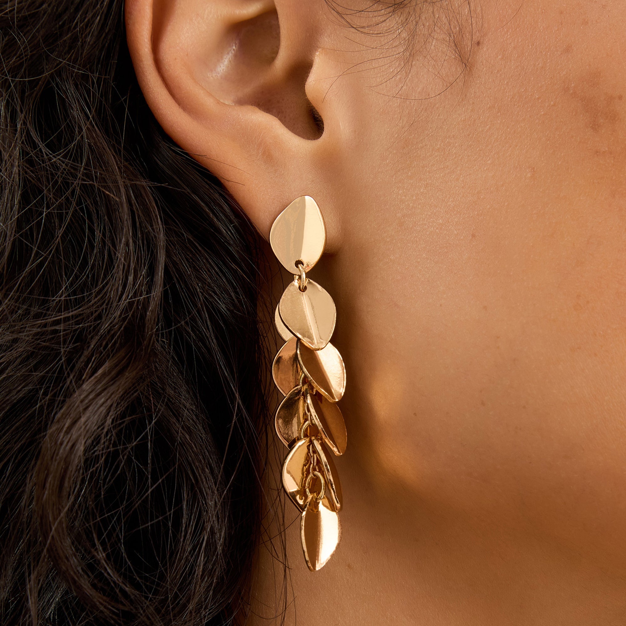Designed with leaf like charms that effortlessly catch the light, these dazzling drop earrings are a statement pick for any occasion. The Post and Back lock offers both security and ease of wear