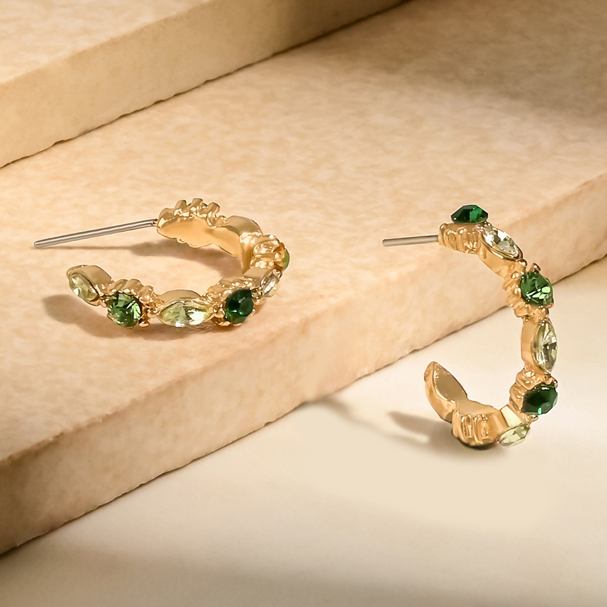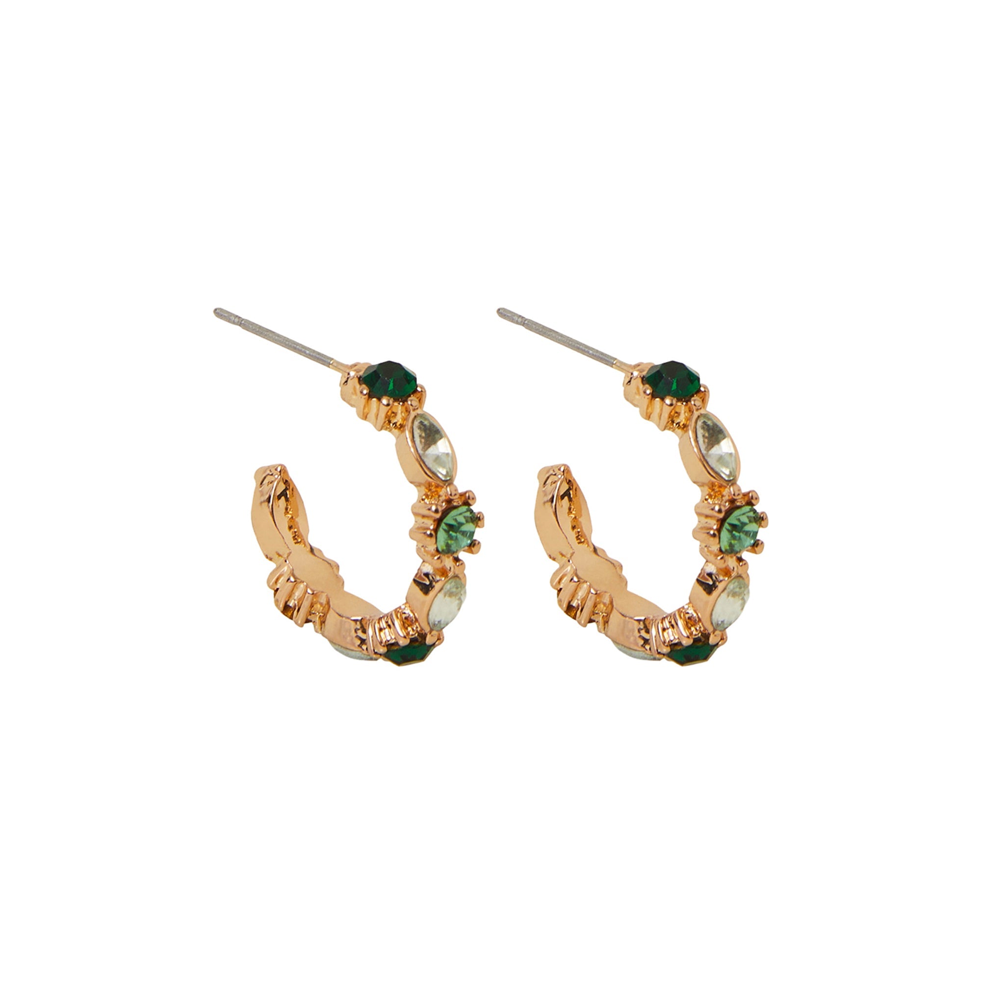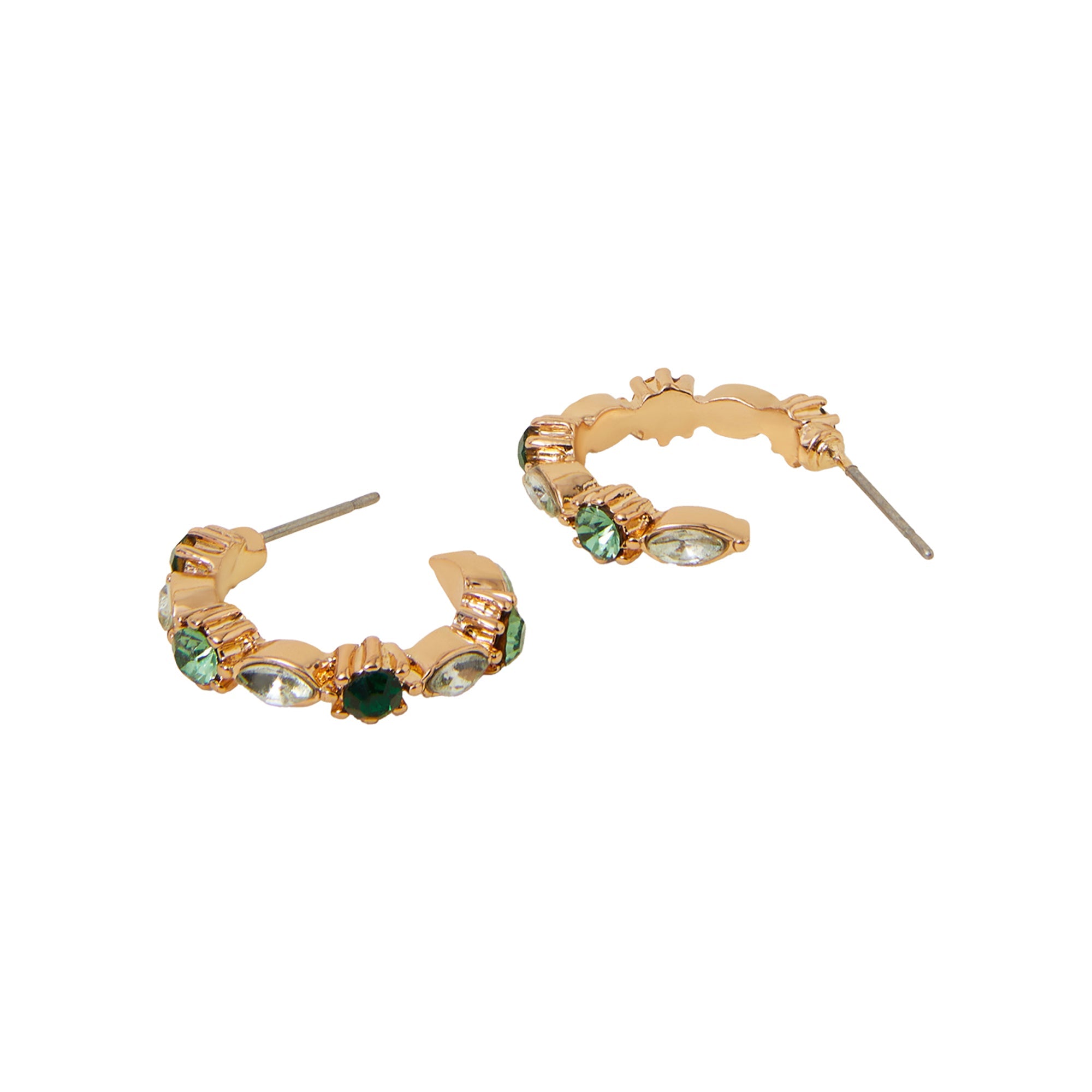 Whisk a touch of sparkle to your ear-stack with these miniature hoops. Decorated with a mix of green gemstones and a gold-tone finish. The Post and Back lock offers both security and ease of wear, providing a comfortable fit while keeping the earrings securely in place