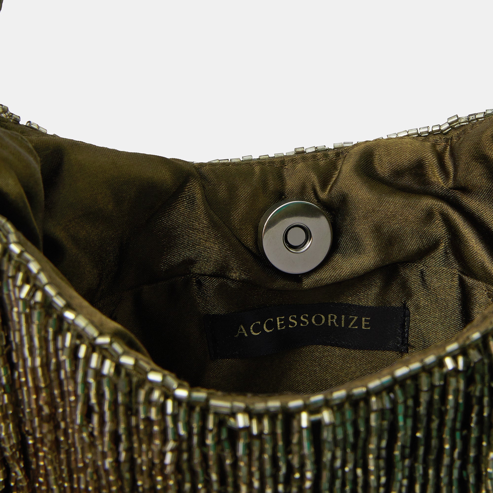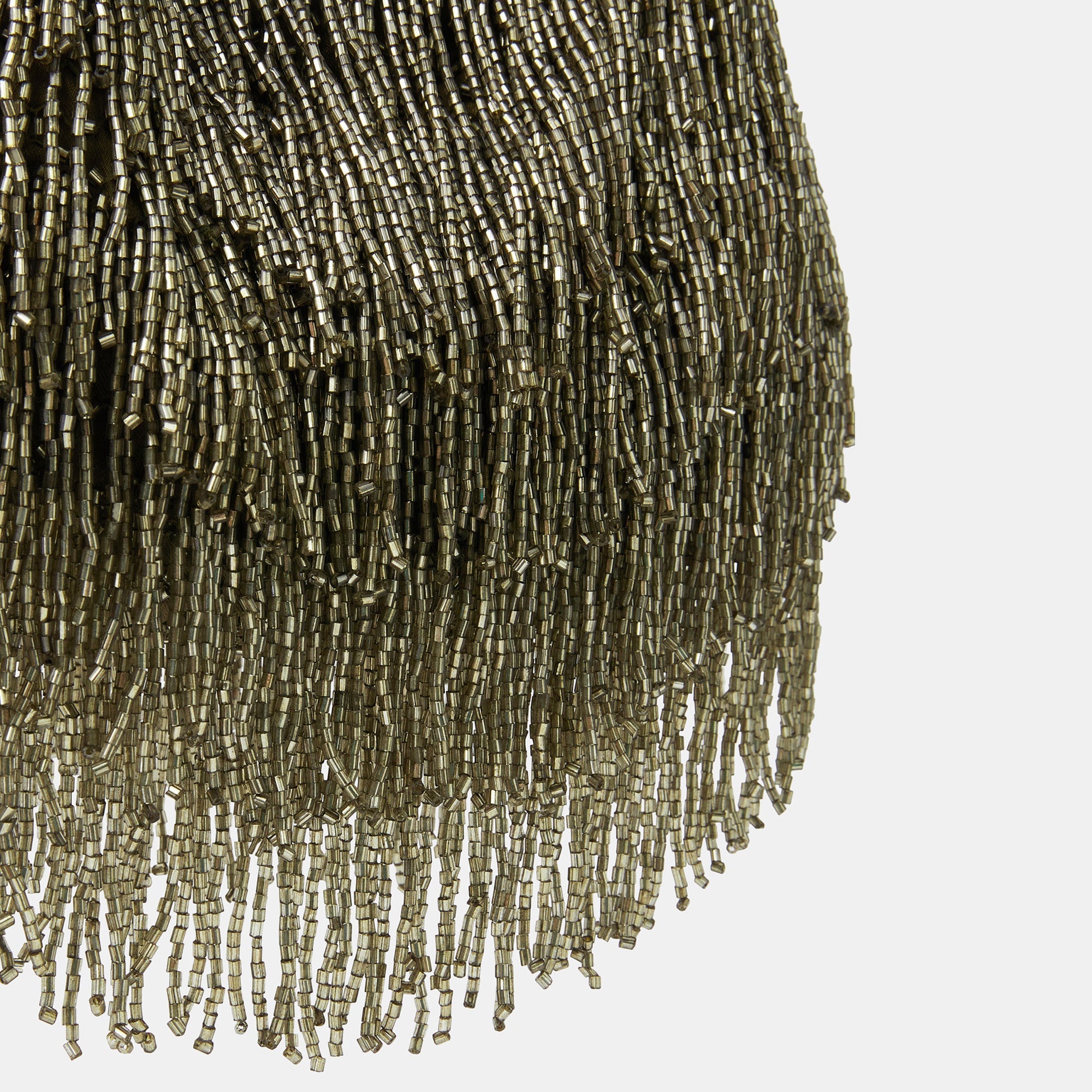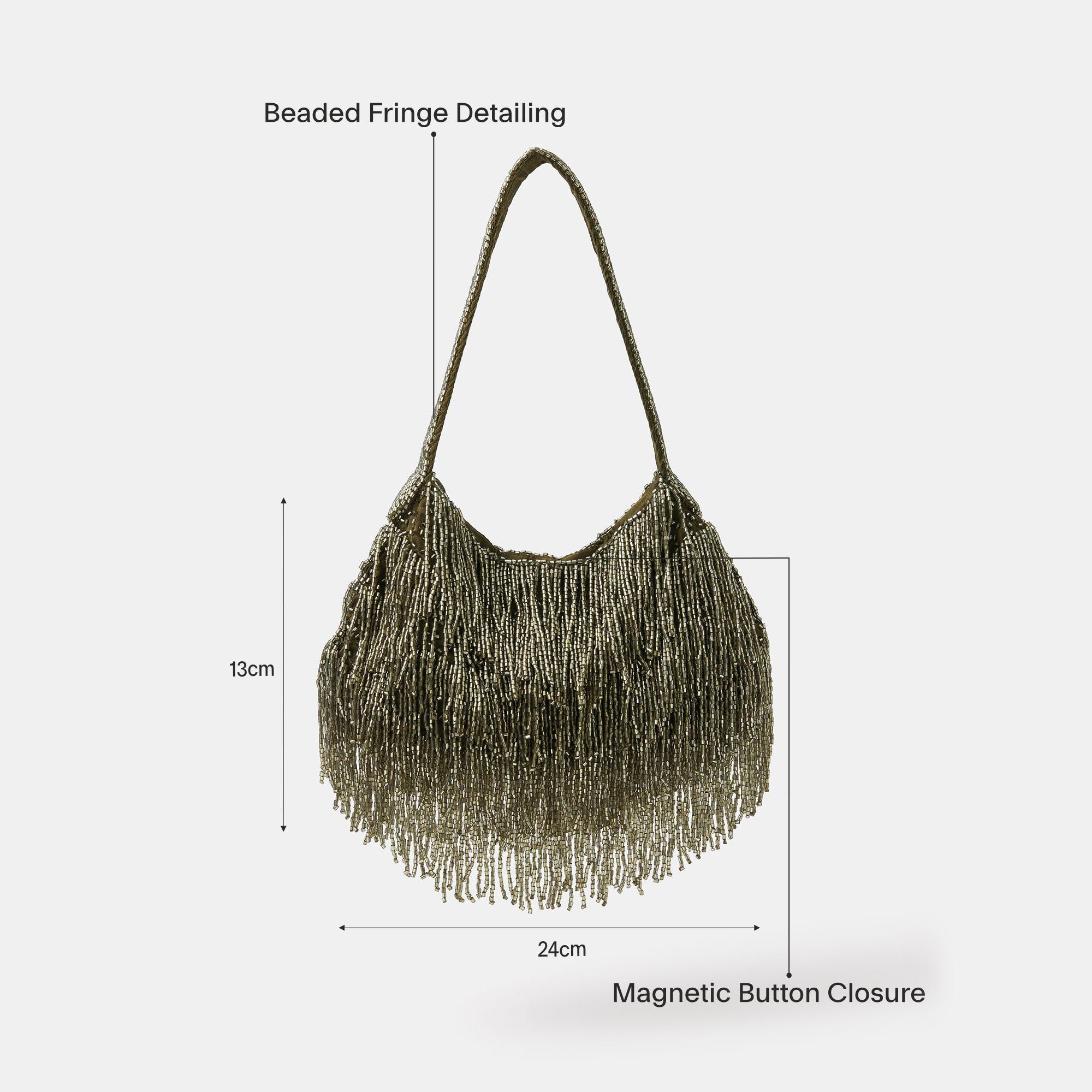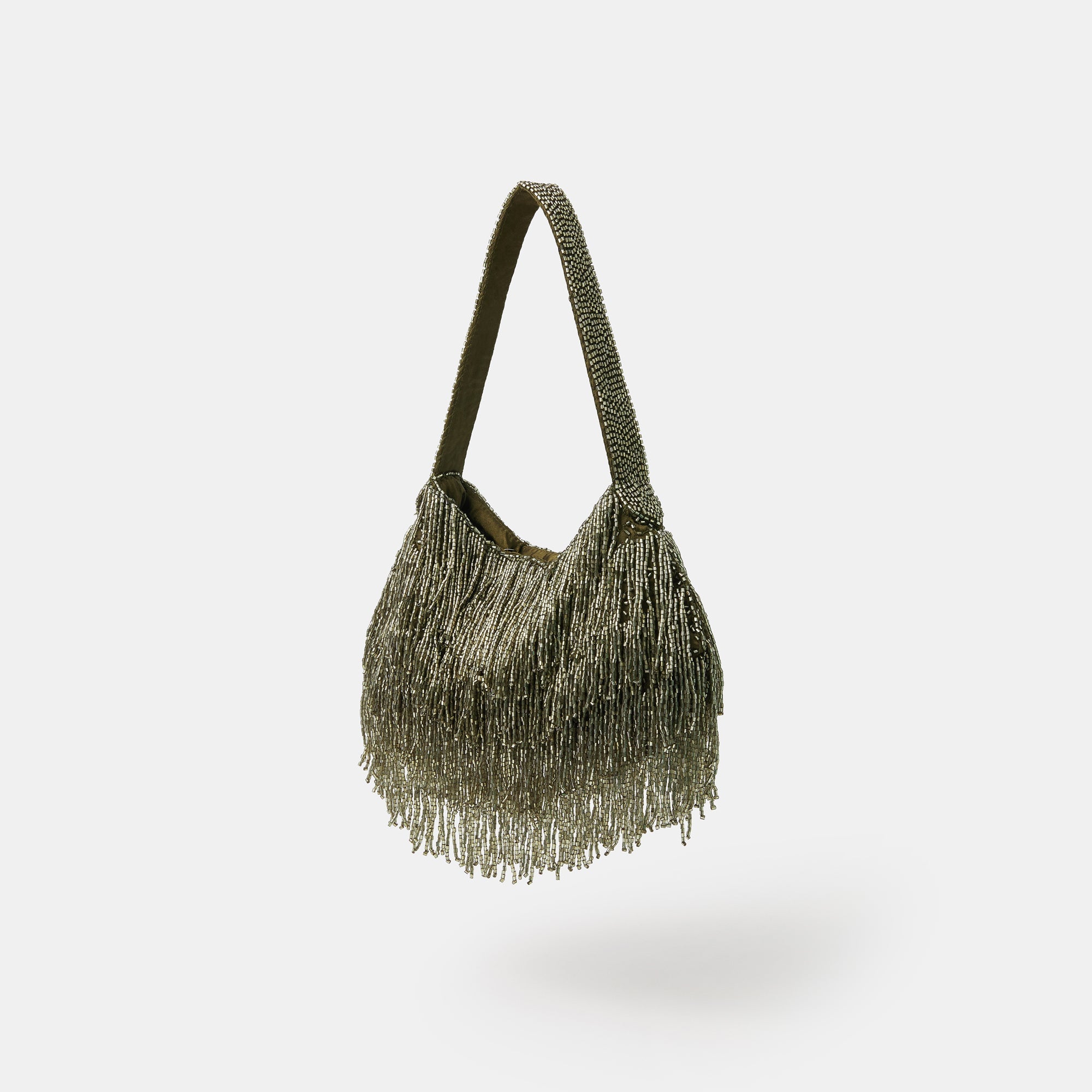 Gold Olive Beaded Fringe Handheld Bag