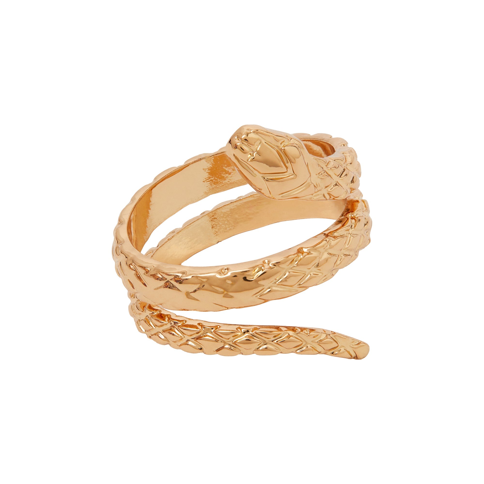 A sssstatement ring for your finger stack. Dipped in a golden tone, this ring is shaped like a snake with a wrap finish