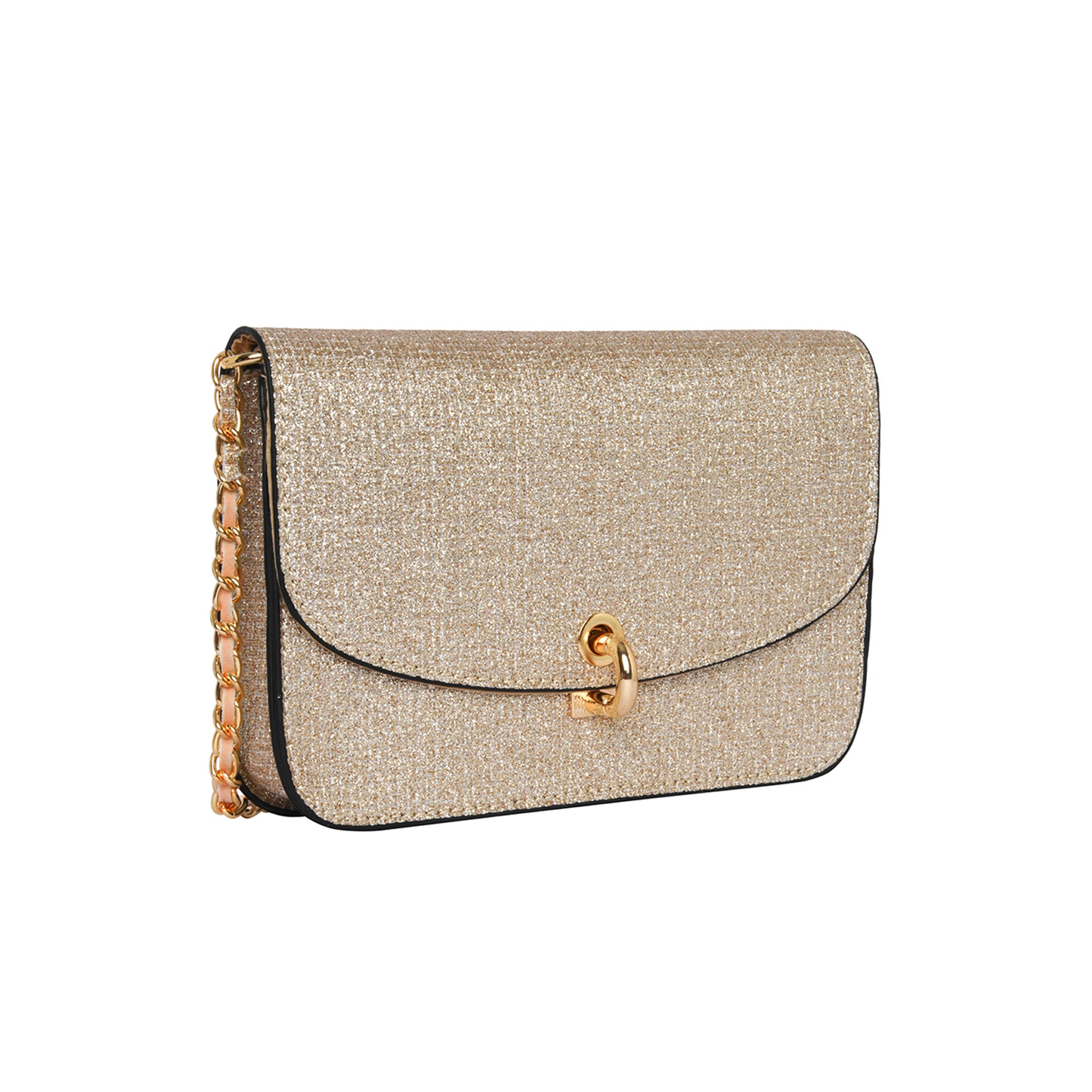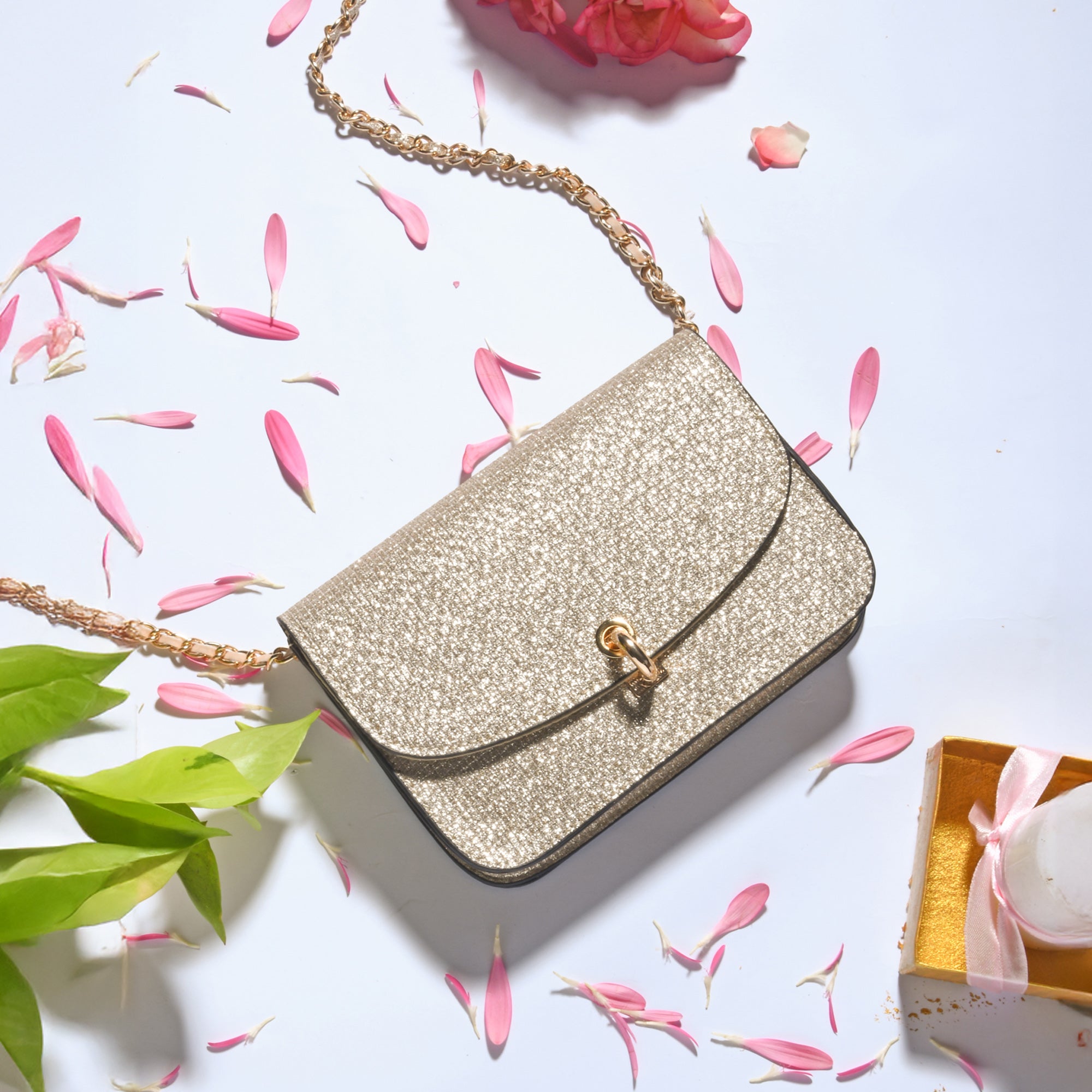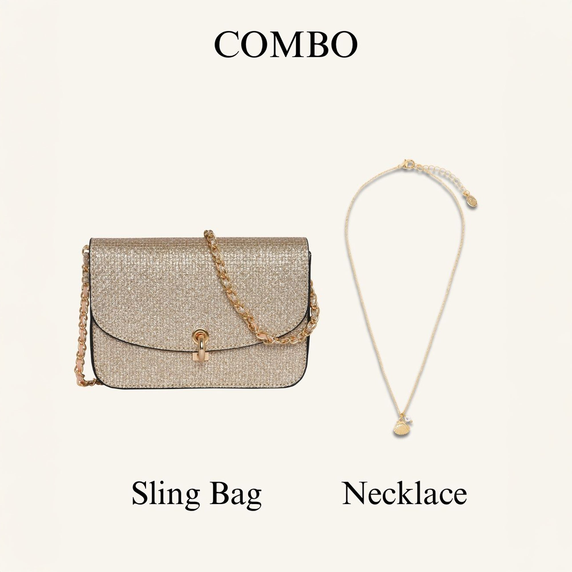 Gold Textured Sling Bag & a gold pendant necklace combo set (Diwali Gift Hamper Box)