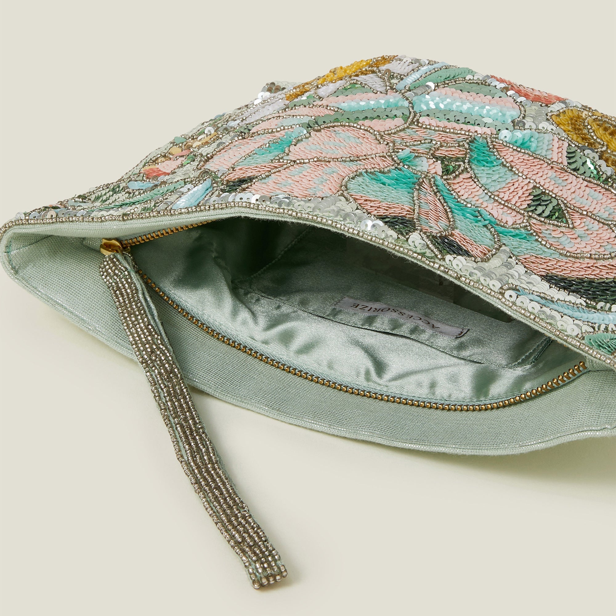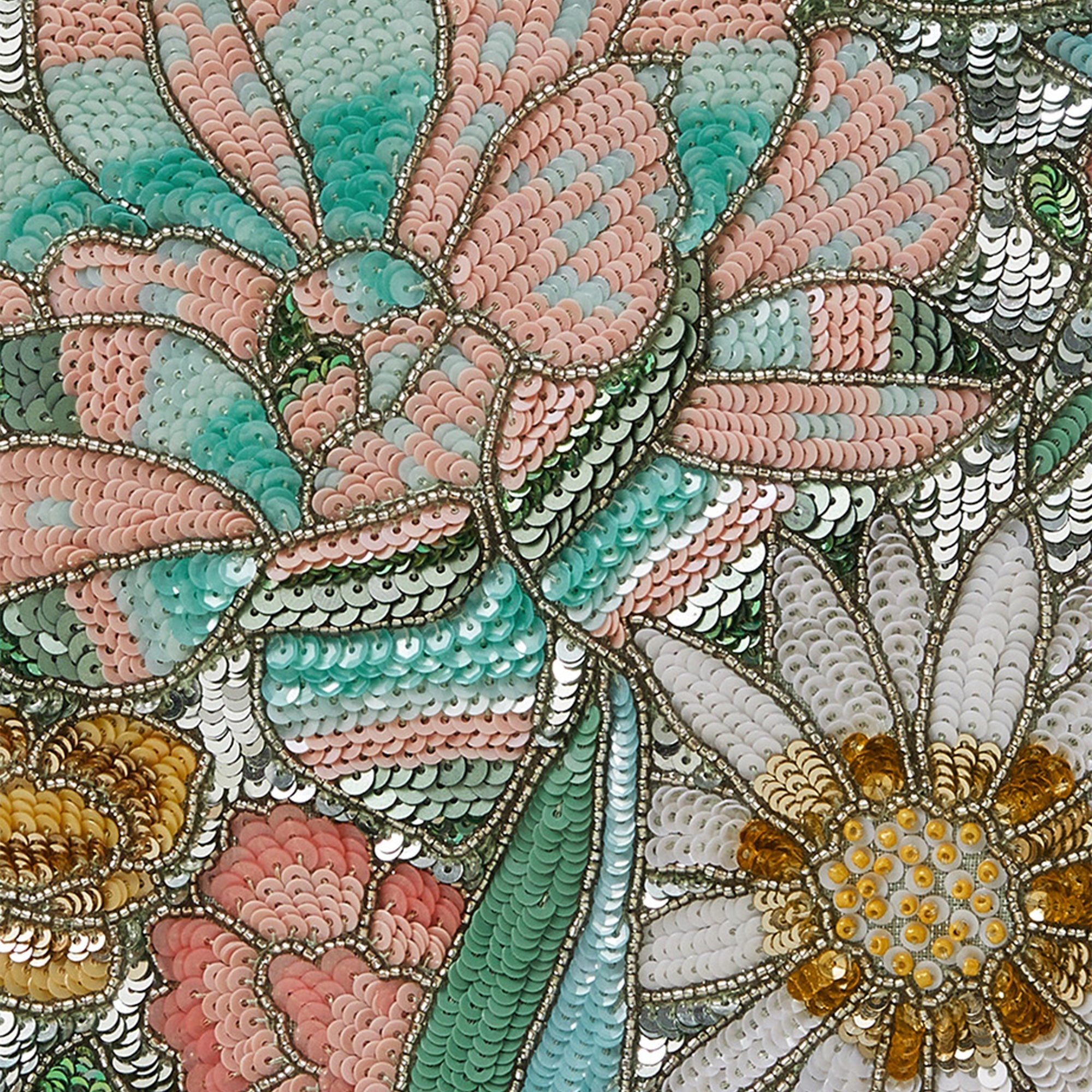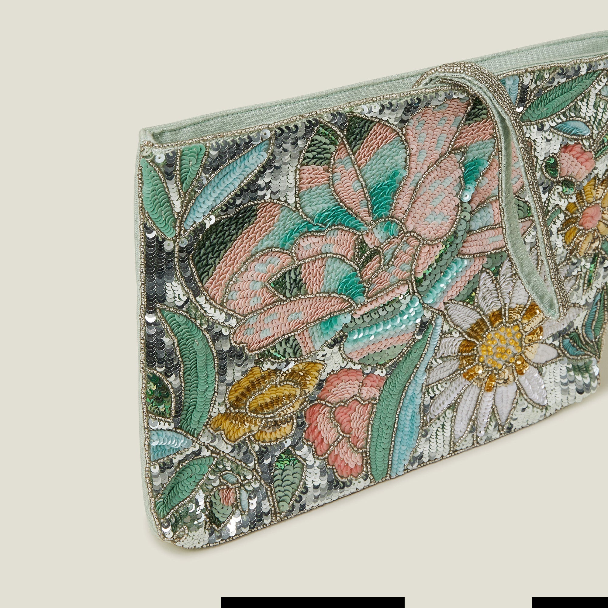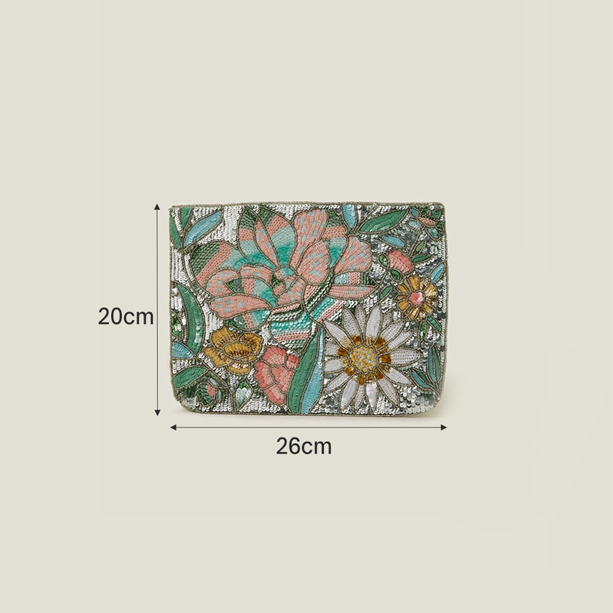 Decorated with endless sequins and beaded bouquets, this floral clutch bag whisks a touch of romance to all your date night looks. Finished with a zip fastening and hand strap