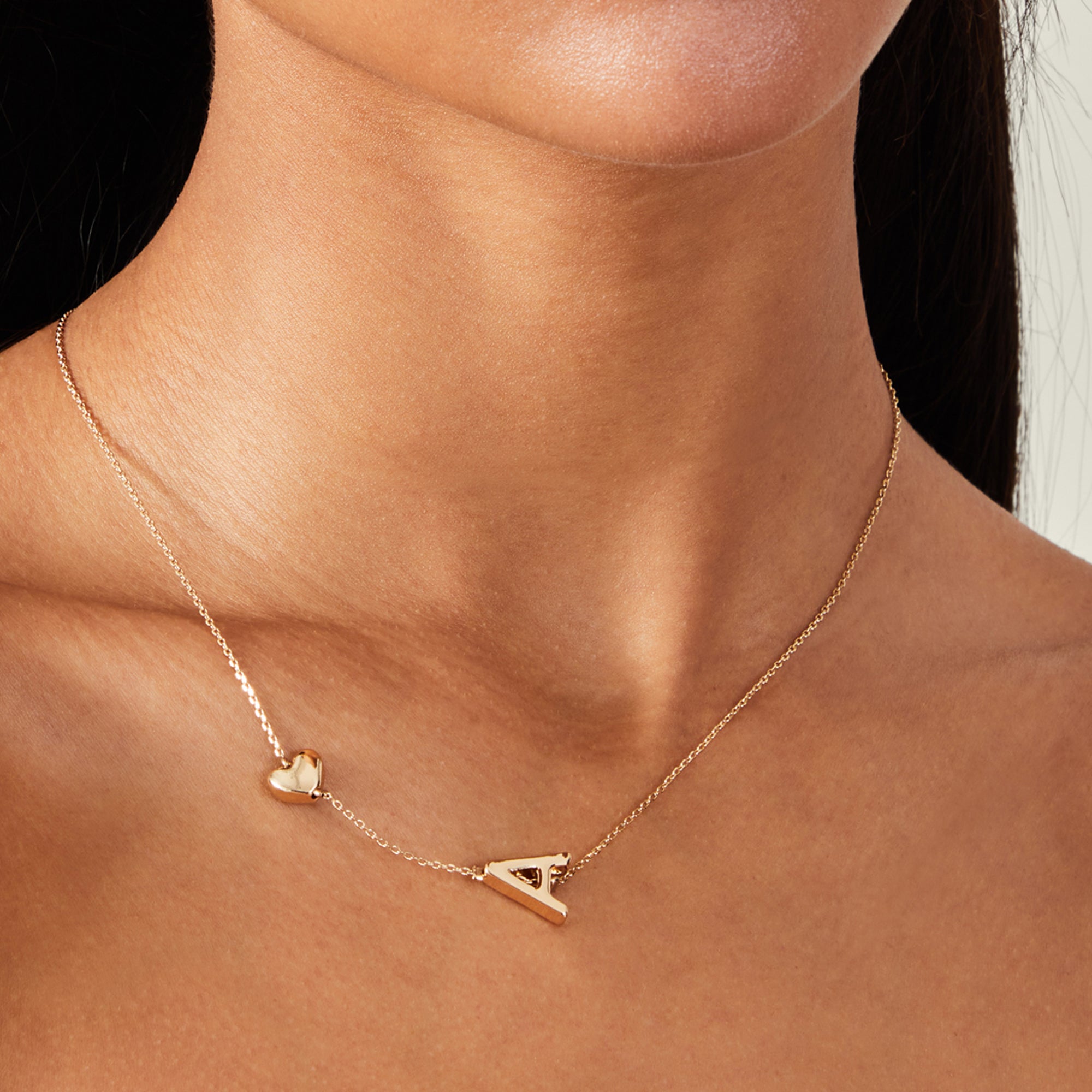 Simple yet elegant, this necklace would make a great gift for yourself or a loved one. The initial pendant is set on a slim, gold-tone chain with an asymmetric finish and heart charm, fastening with a lobster clasp and extender. Gold