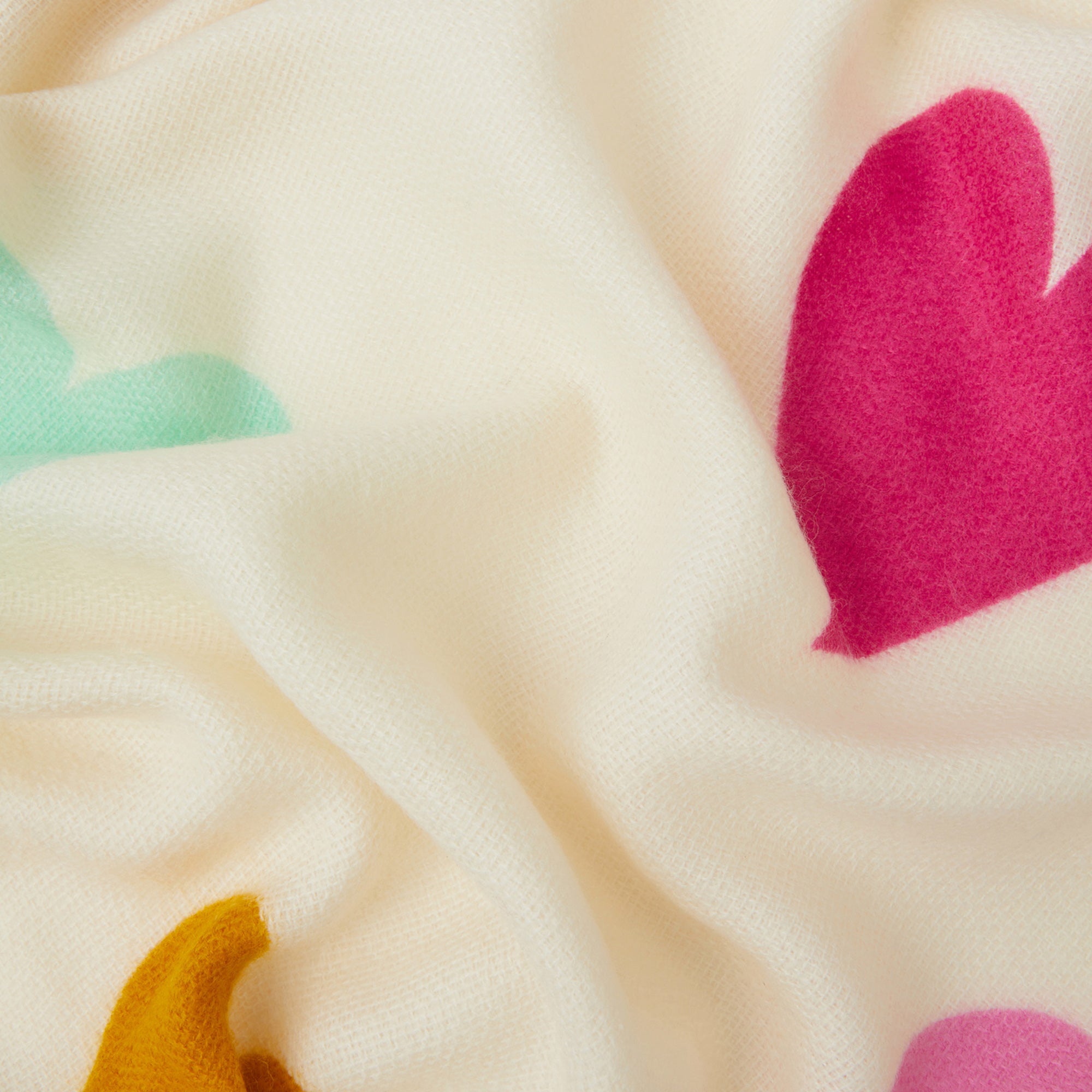 Add a pop of colour (and love) to your winter looks. Made from super-soft yarns, this blanket scarf is patterned with colourful hearts over the neutral backdrop.