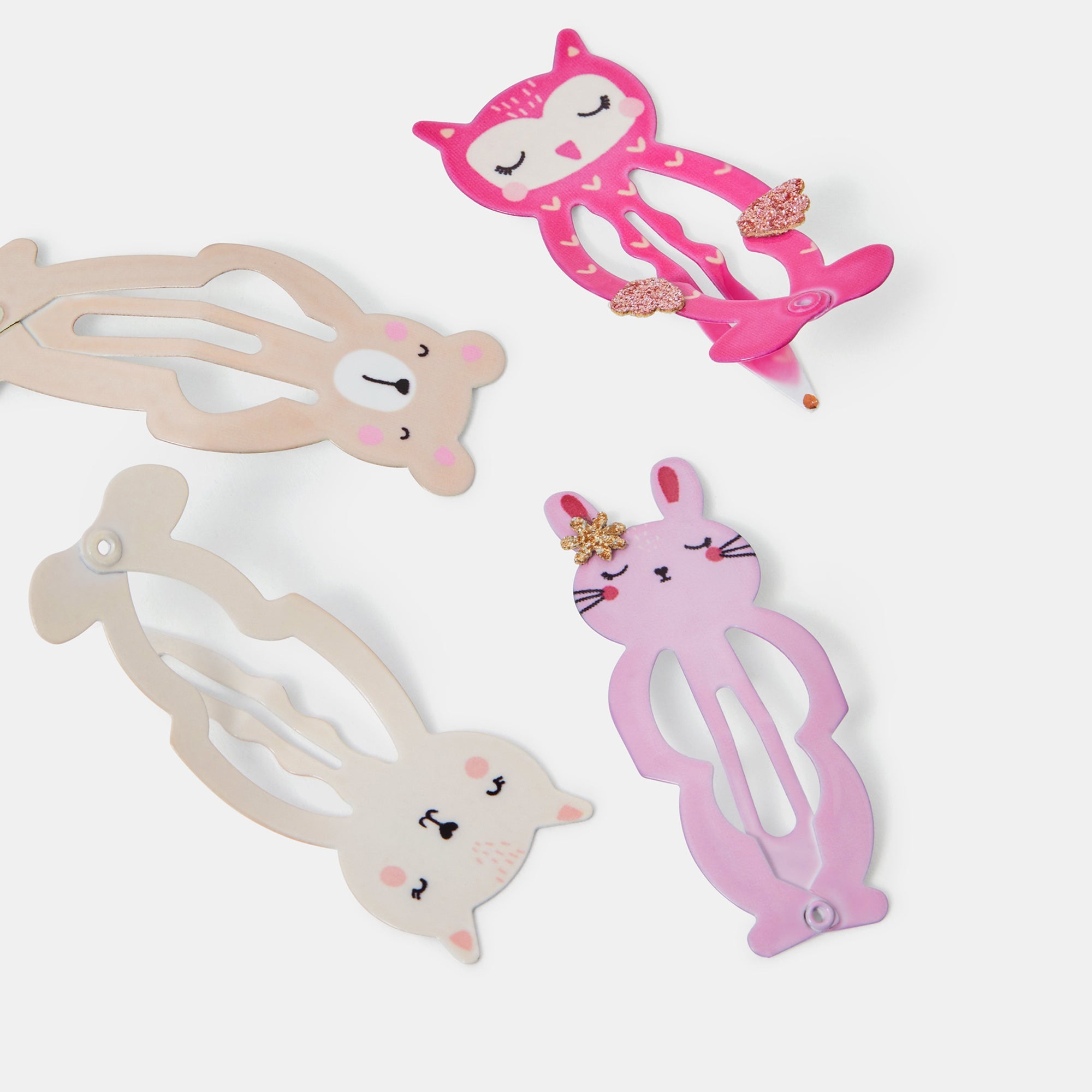 Incorporate some woodland charm to their updos with these friendly animal-shaped hair clips. The set includes a cat, bunny, owl and bear in pretty, pastel colours. Four included.