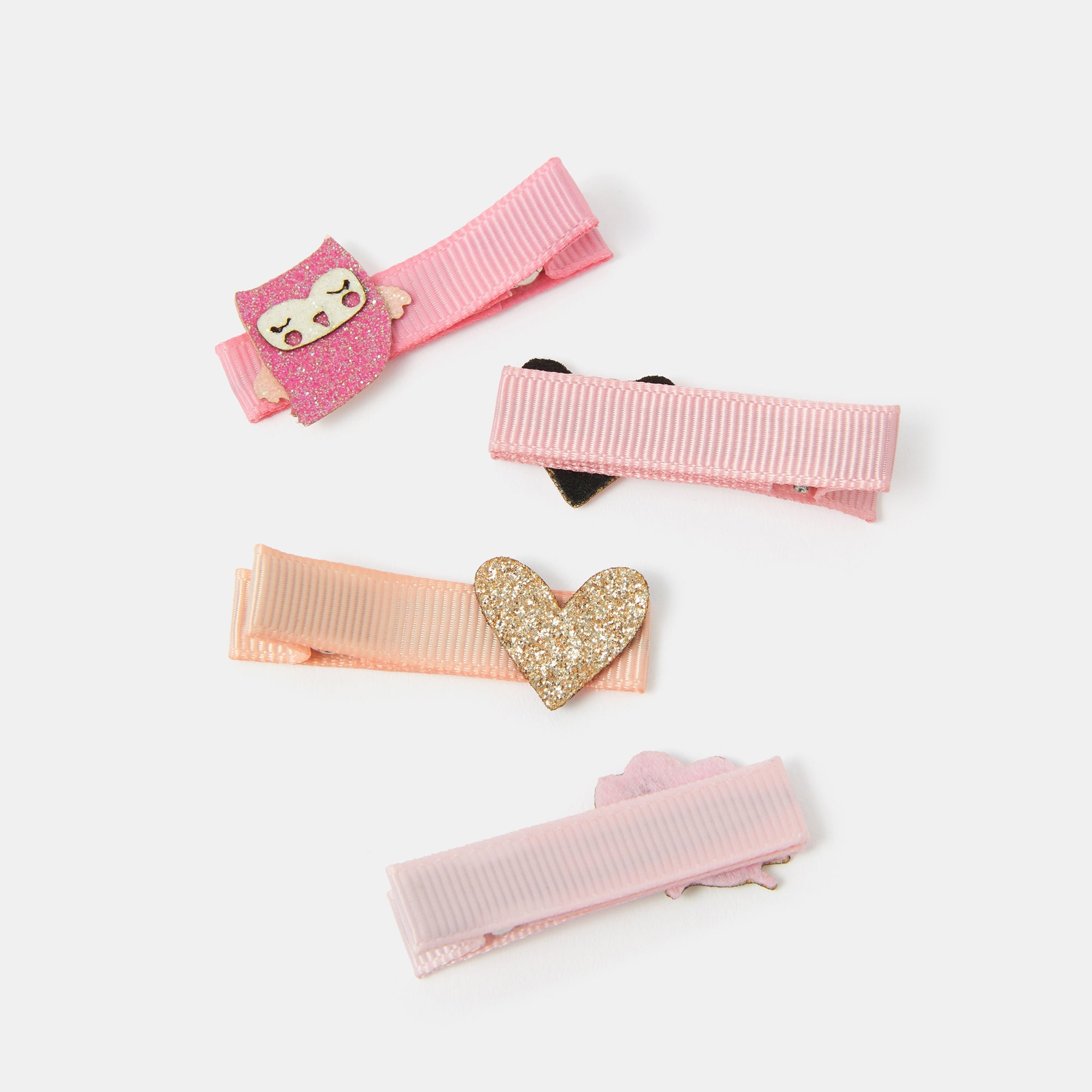 Displaying hearts, a hedgehog and owl in glitzy finishes, these hair slides are playful addition to their hairstyles. Four included.