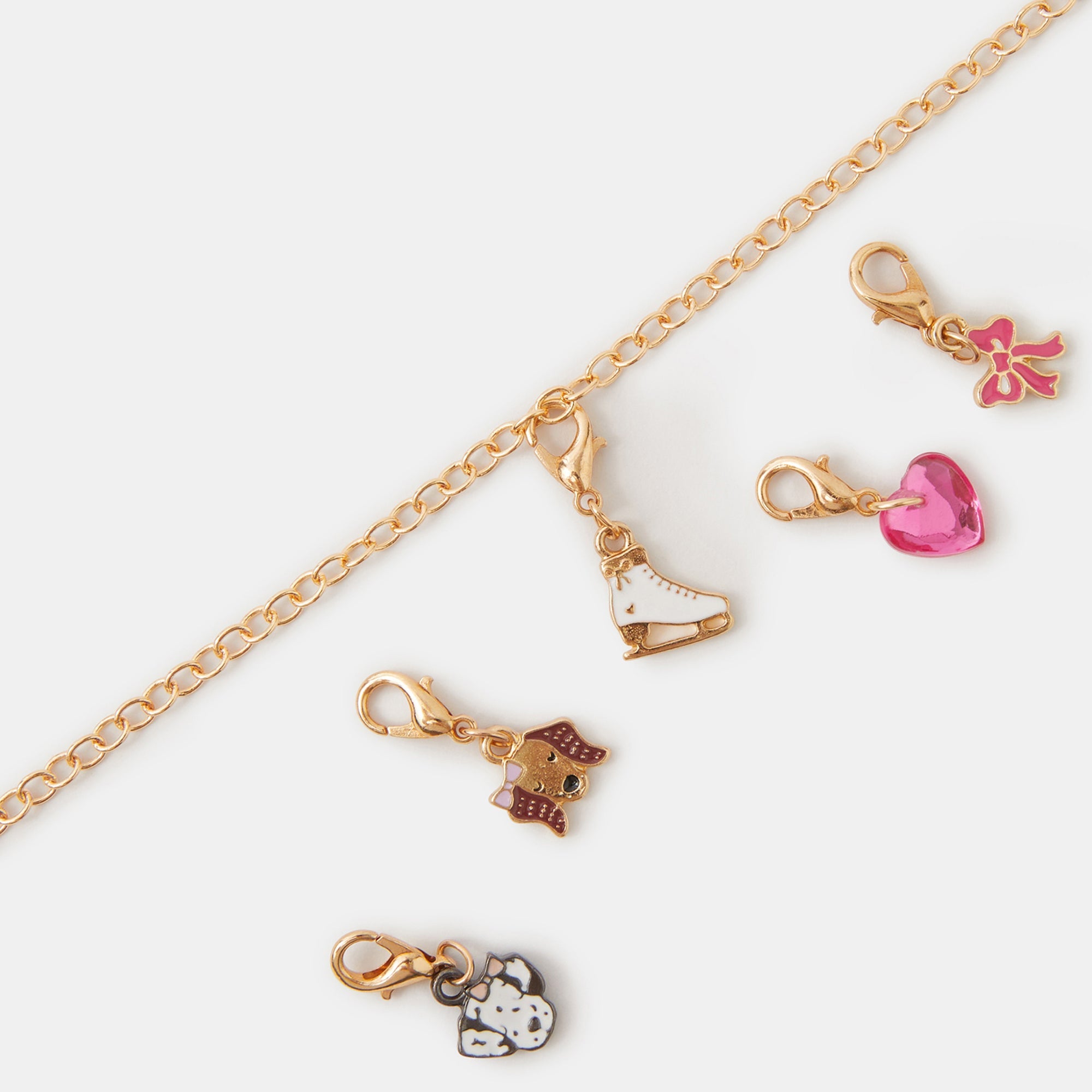 A fun way of adding some personality to their looks, this jewellery gift set comes with a gold-tone chain bracelet and cute charms for them to clip on themselves. Featuring a pink bow, two dogs, an ice skate and jewel heart. Which will be their favourite?
