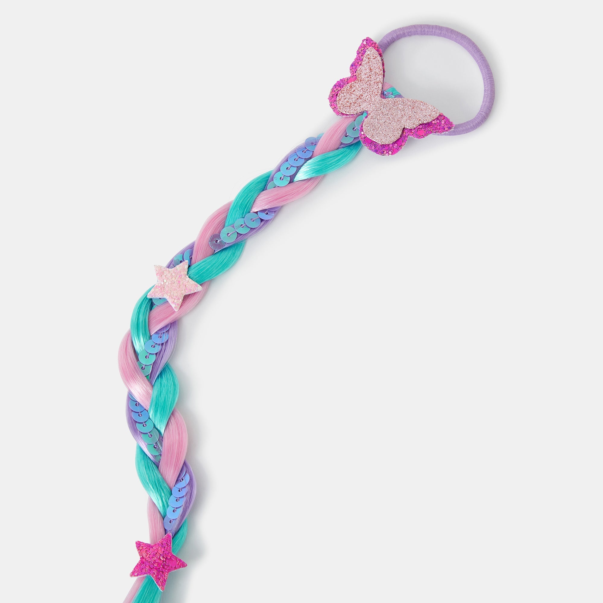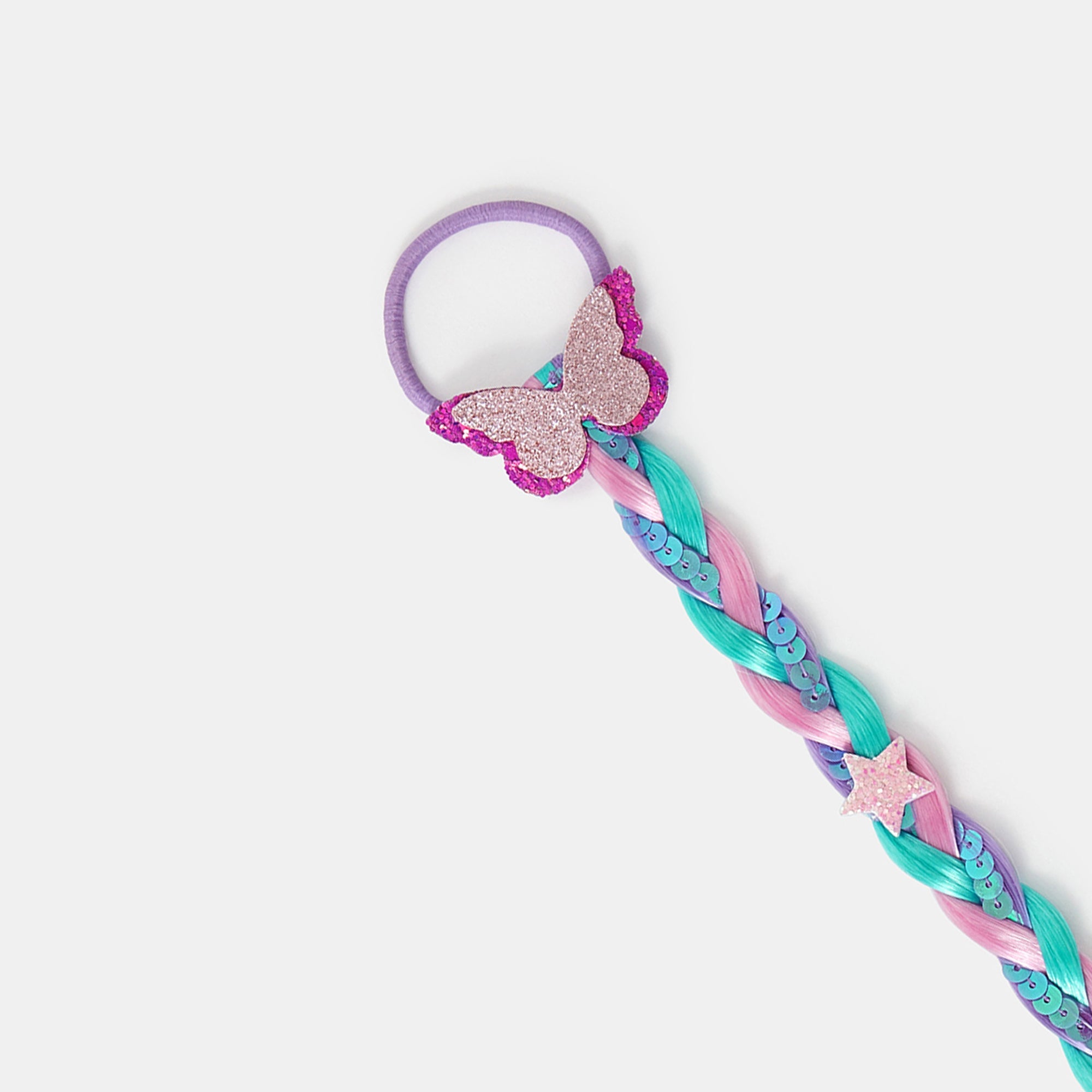 Topped with a sparkly butterfly, this curly wurly fake hair extension is finished with an embellished ombre design. Simply tie it in to the top of their curls or ponytail for a party finish.