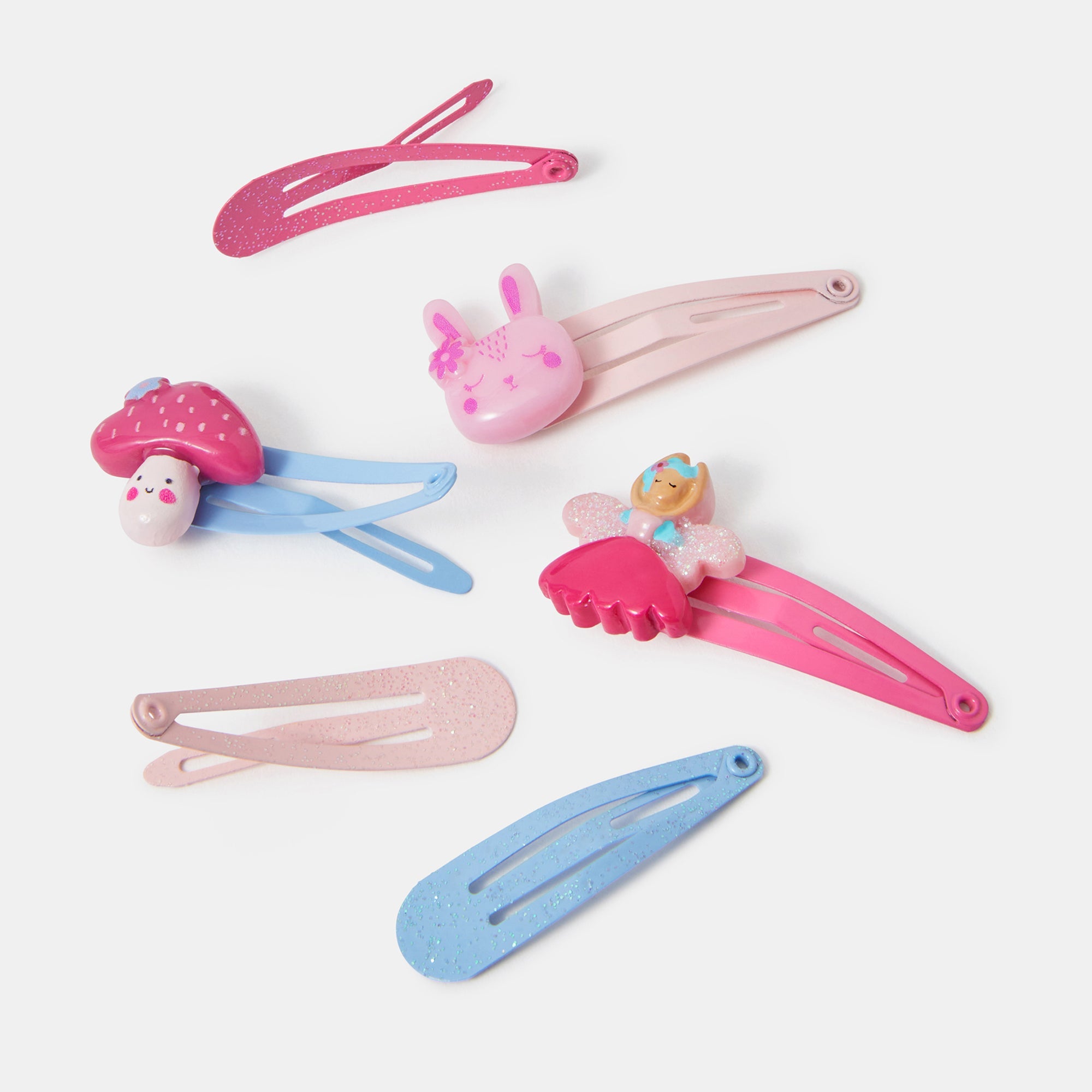 Featuring a trio of fairy tale friends with glitzy finishes, these hair clips add endless sparkle (and fun) to their ponytails, buns or braids. Six included.