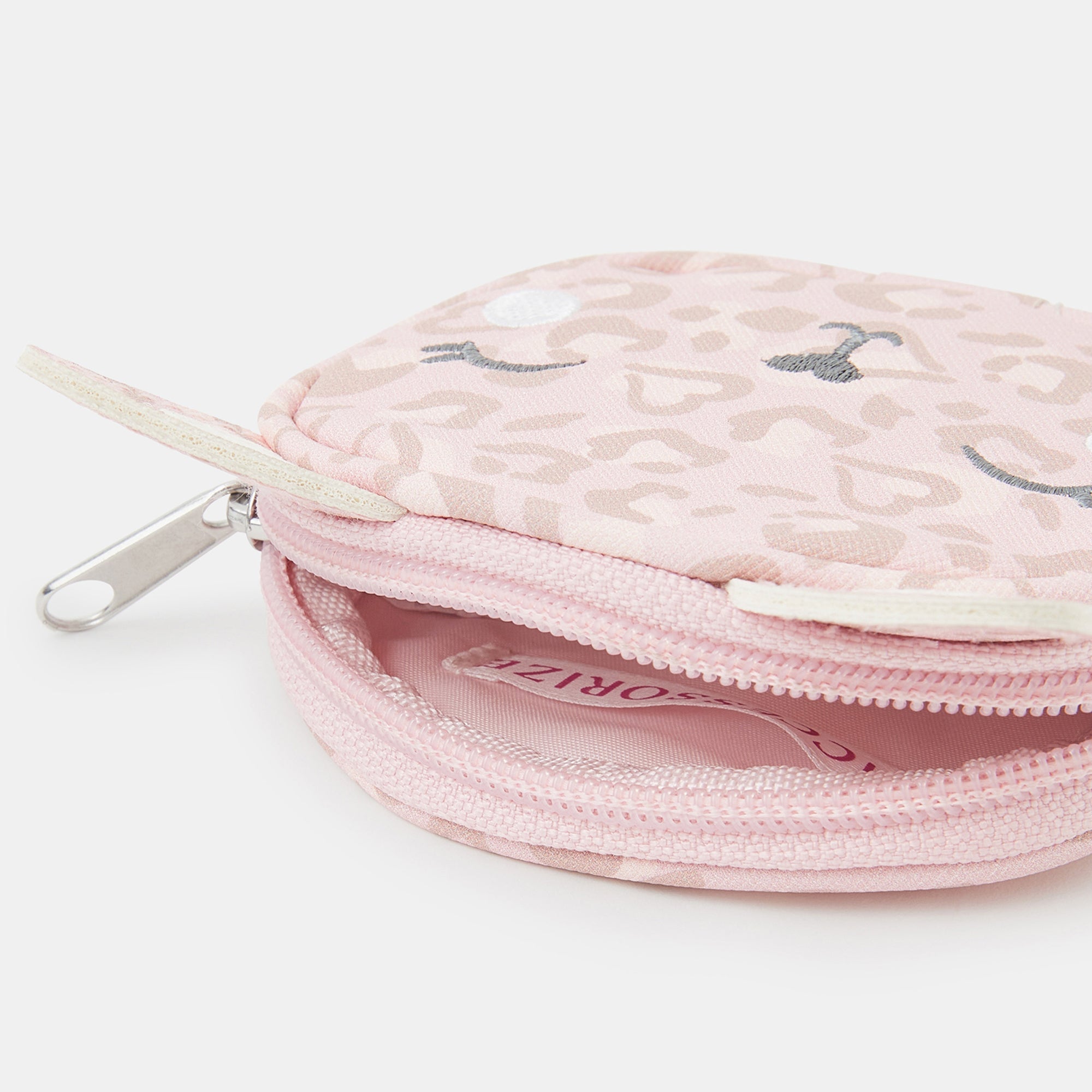 Puuurfect for storing pocket money or small treasures, this purse is cloaked in heart-shaped animal prints with a cute cat face and fluffy ears. Finished with a zip fastening.