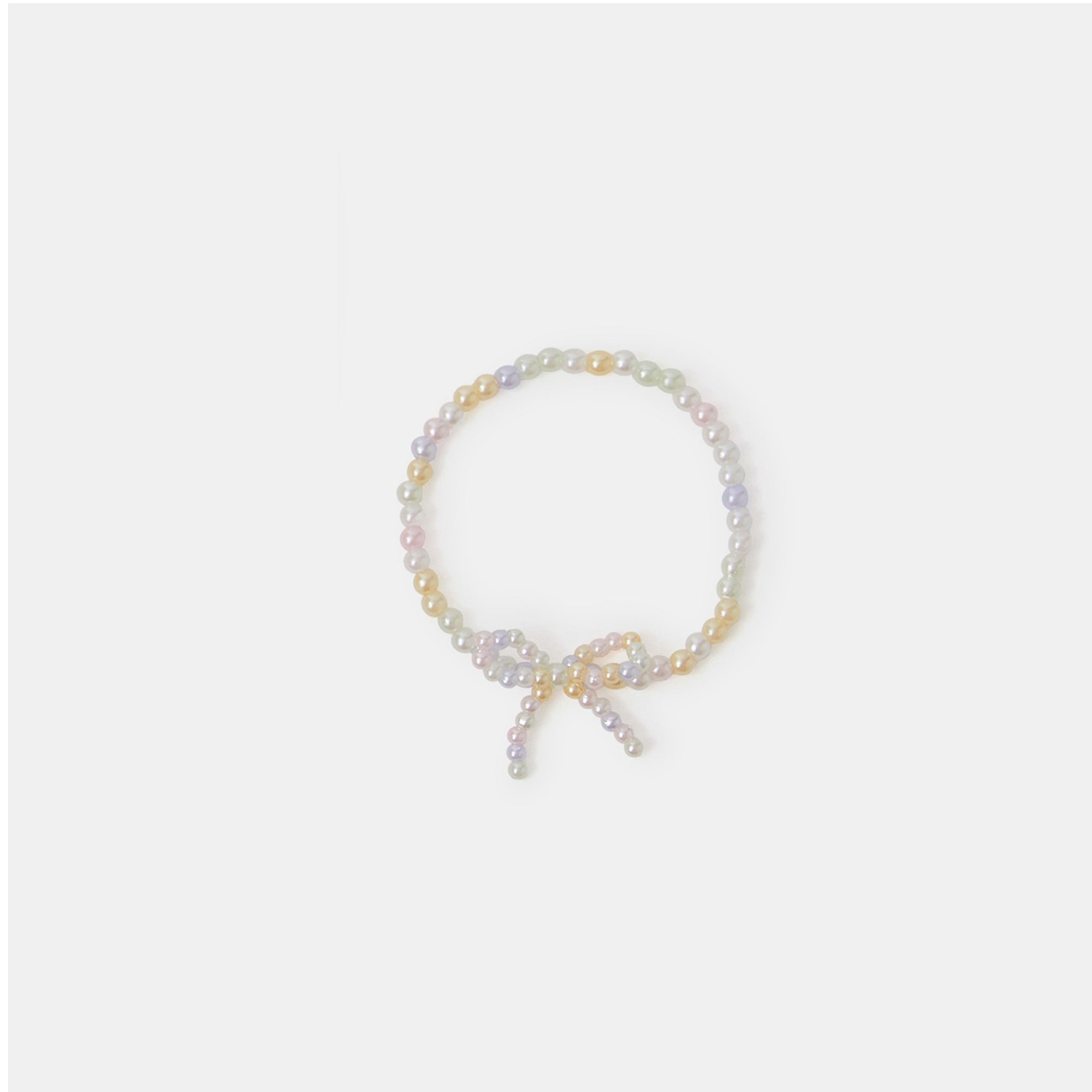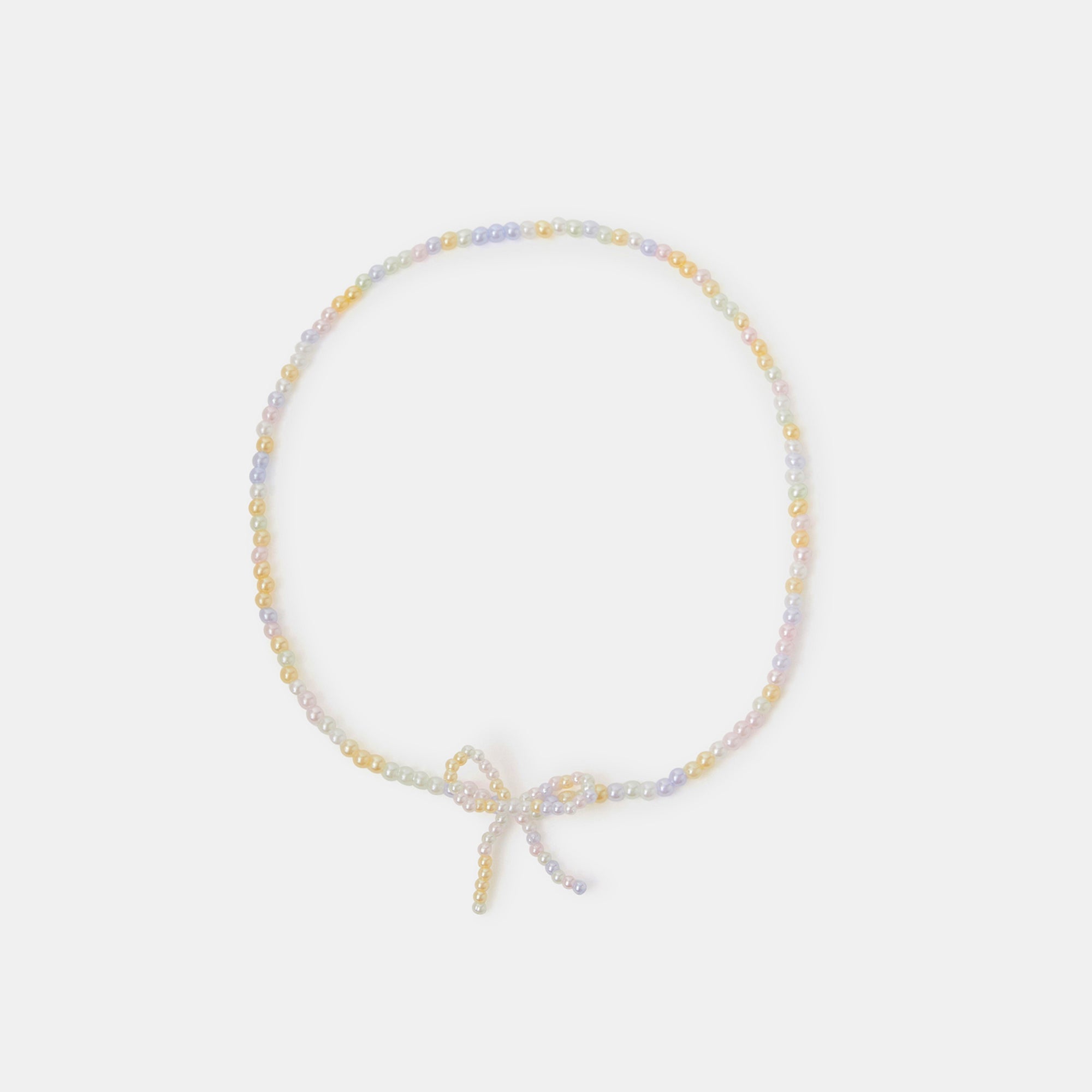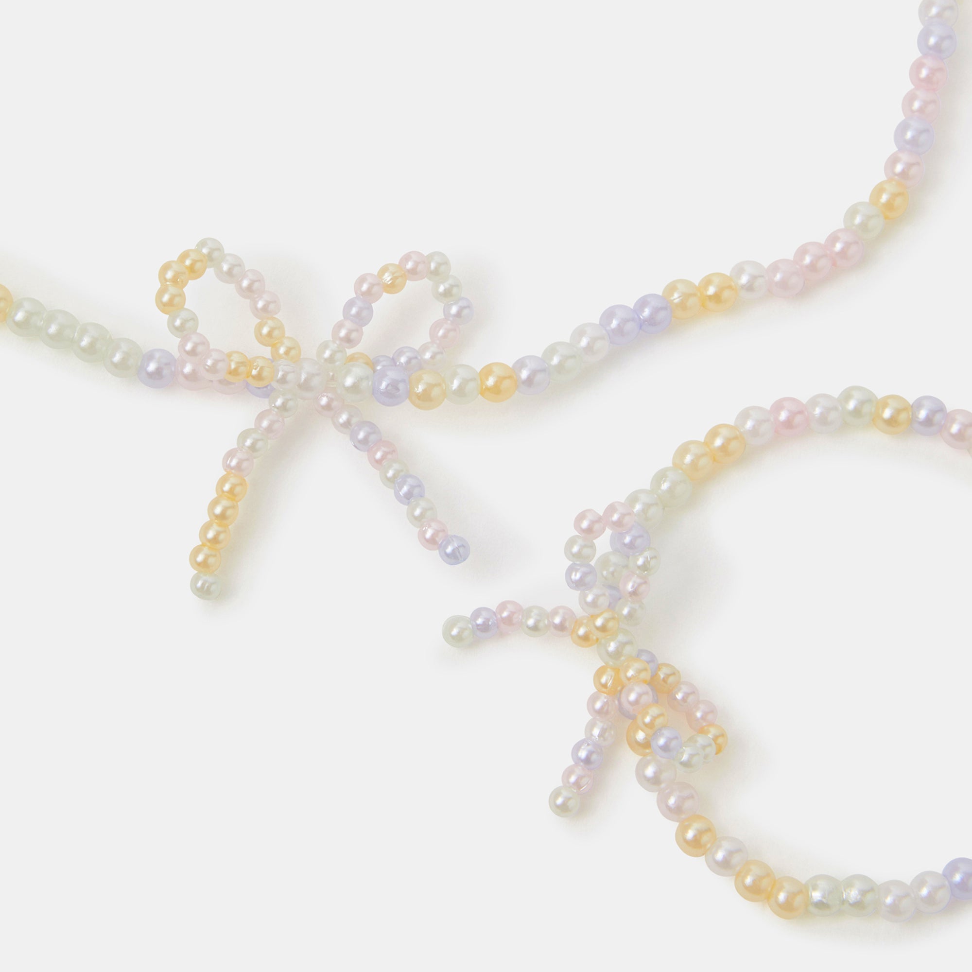 Bow-tiful! Perfect for everyday dressing, this jewellery set includes a pearly bow necklace and matching bracelet in pastel hues. Cute, right?