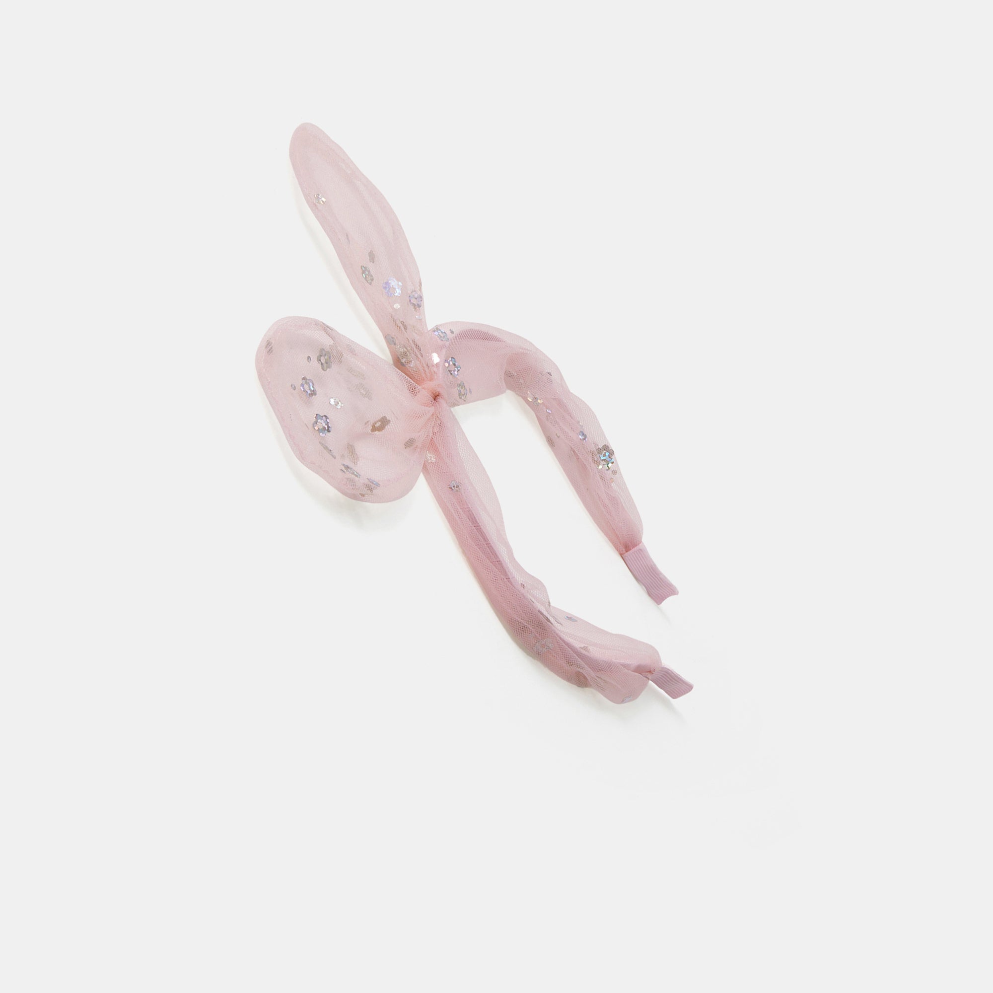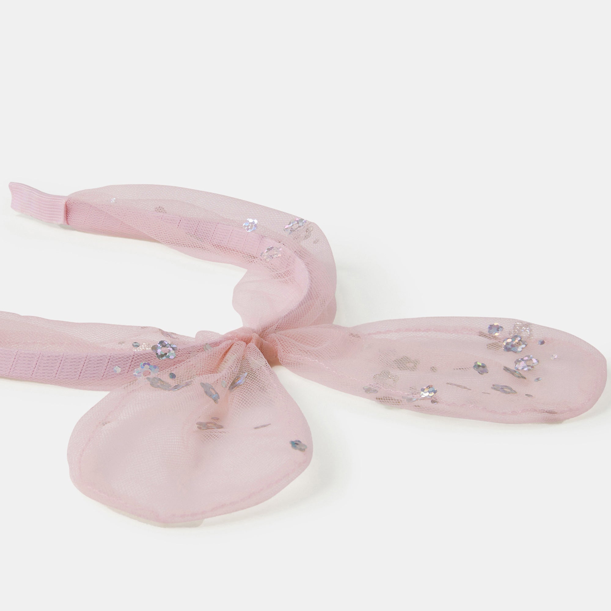 Pretty in pink and stitched with sparkles, this bow-tiful mesh headband is designed with an XL wire bow and disco flowers scattered throughout. The perfect finisher to all their party looks.