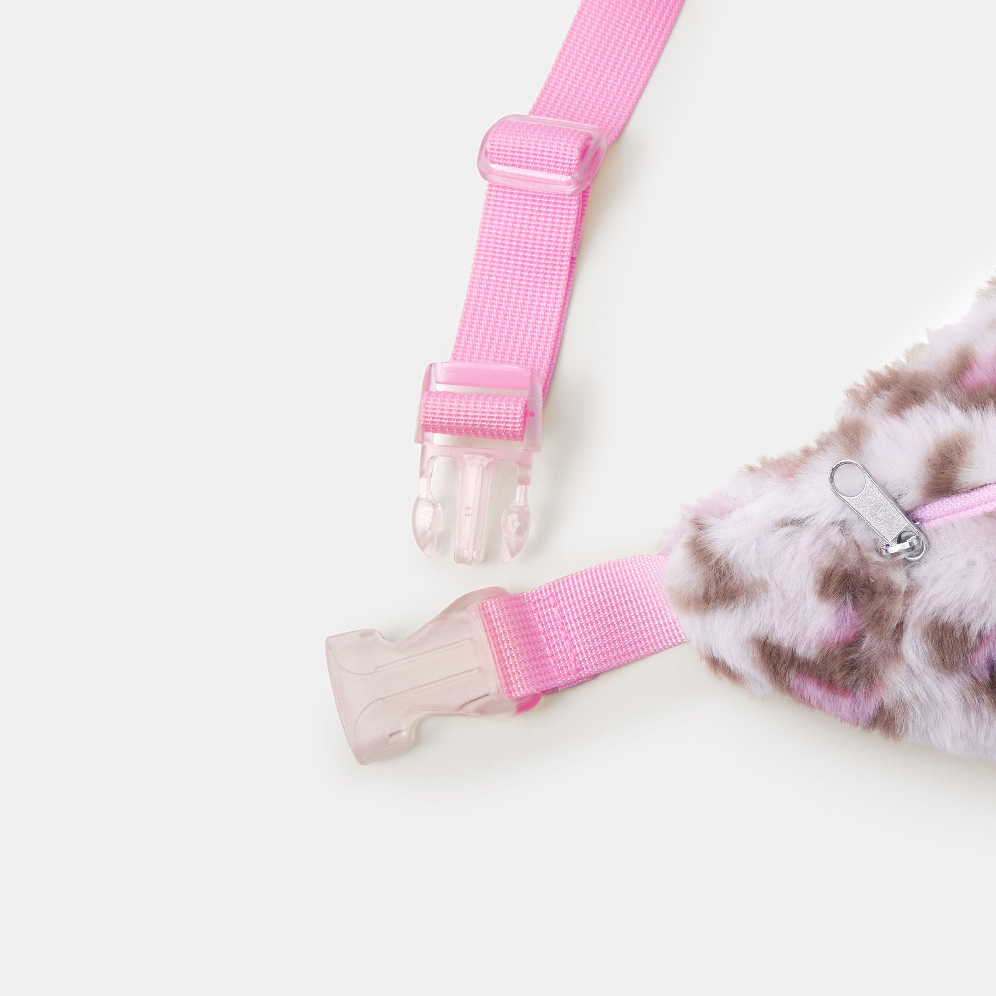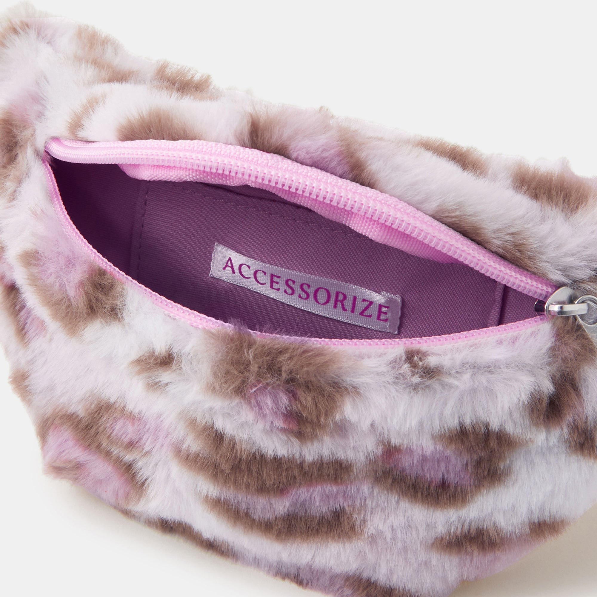 A wildly cute (and super-fluffy) accessory for all their weekend looks. Made from pink leopard print faux fur, this belt bag clips round the waist with an adjustable strap and features a main zip compartment.