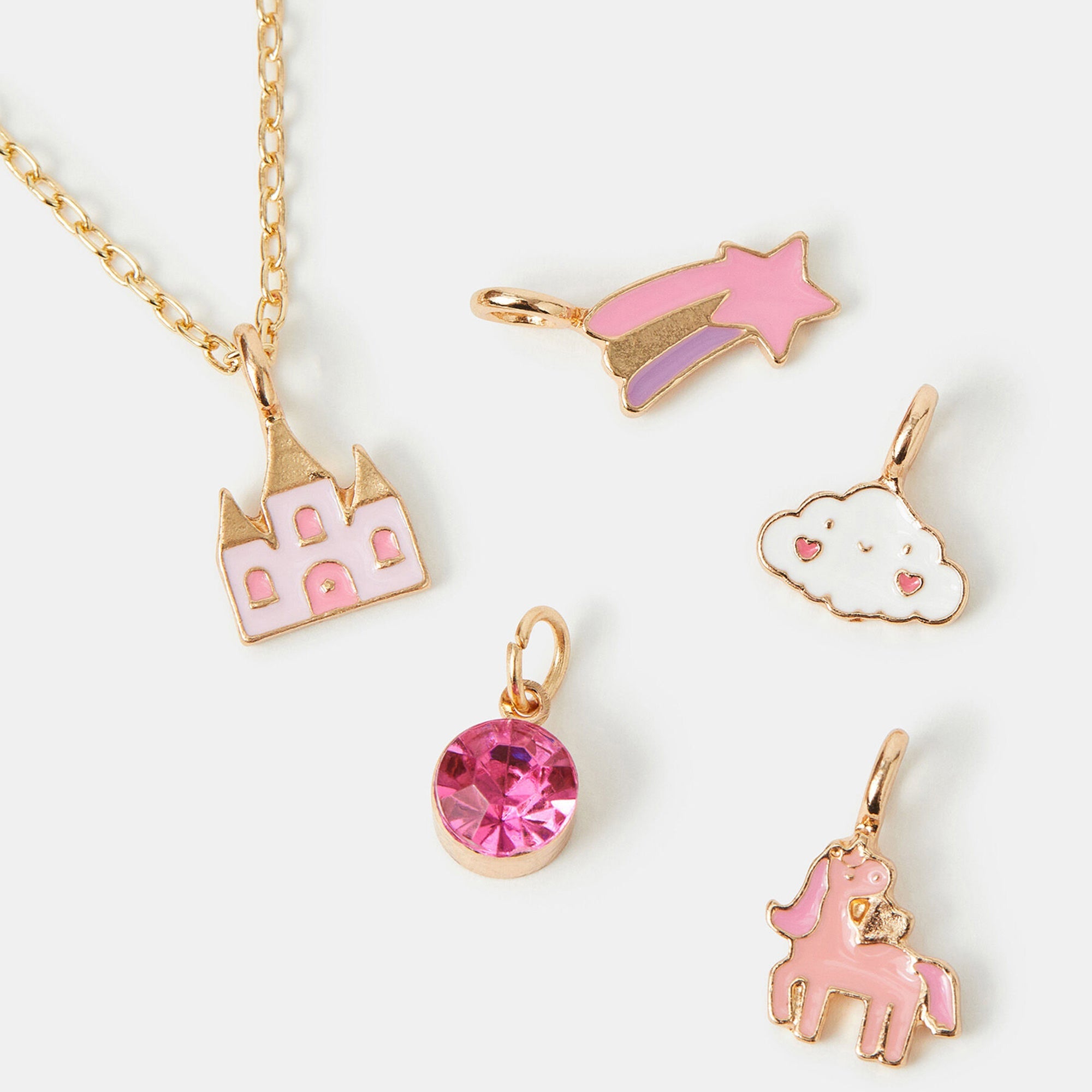 Featuring a gold-tone chain necklace, this jewellery set includes five different fairy tale-inspired pendants for them to choose from. Featuring a castle, unicorn, pink gemstone, cloud and shooting star, which one will be their favourite?