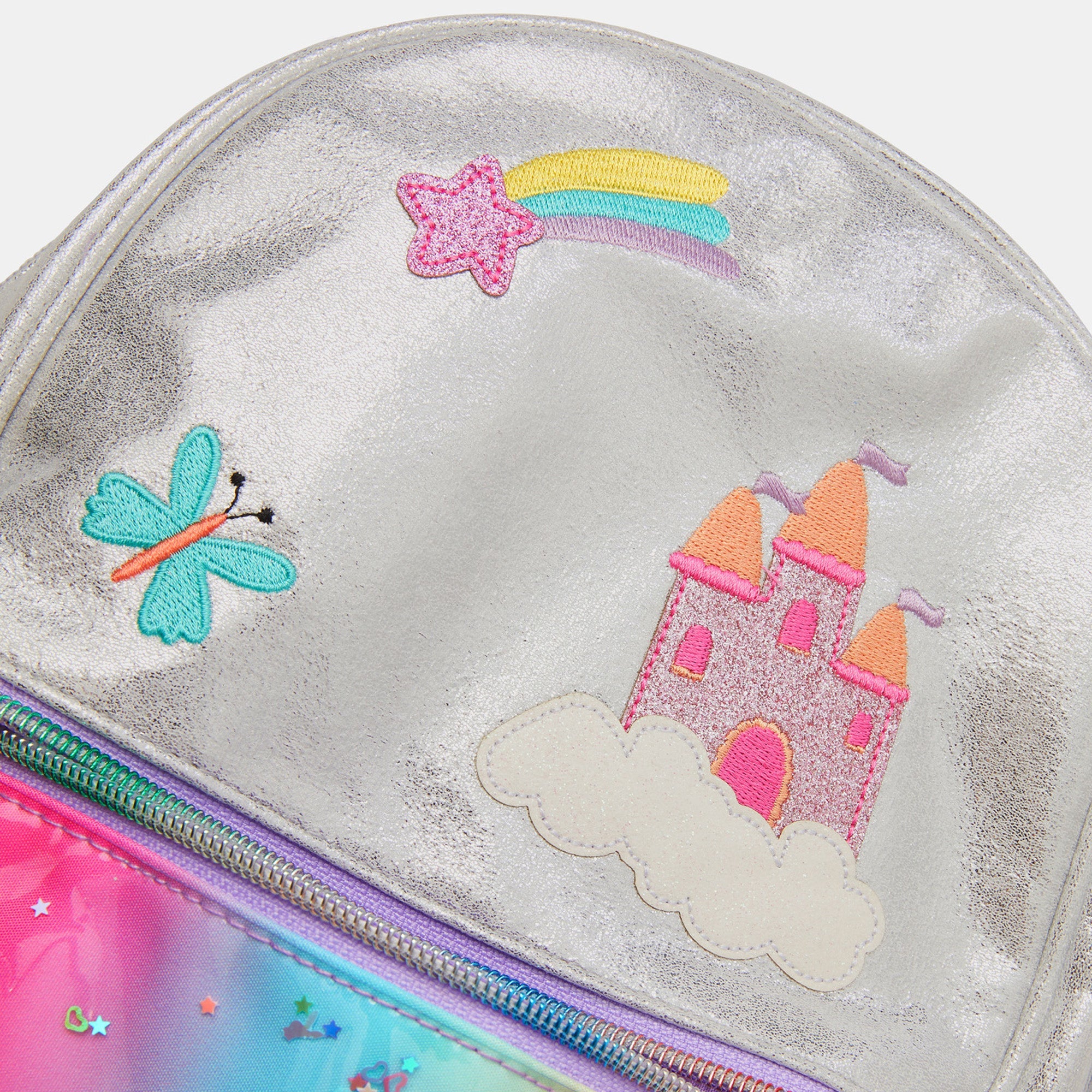 Dreams do come true. Designed with a glitter backdrop, this backpack is decorated with a butterfly, shooting star, magical castle, and rainbow-inspired front pouch with dazzling sequins to finish. Features include a zip-around fastening and shoulder straps.