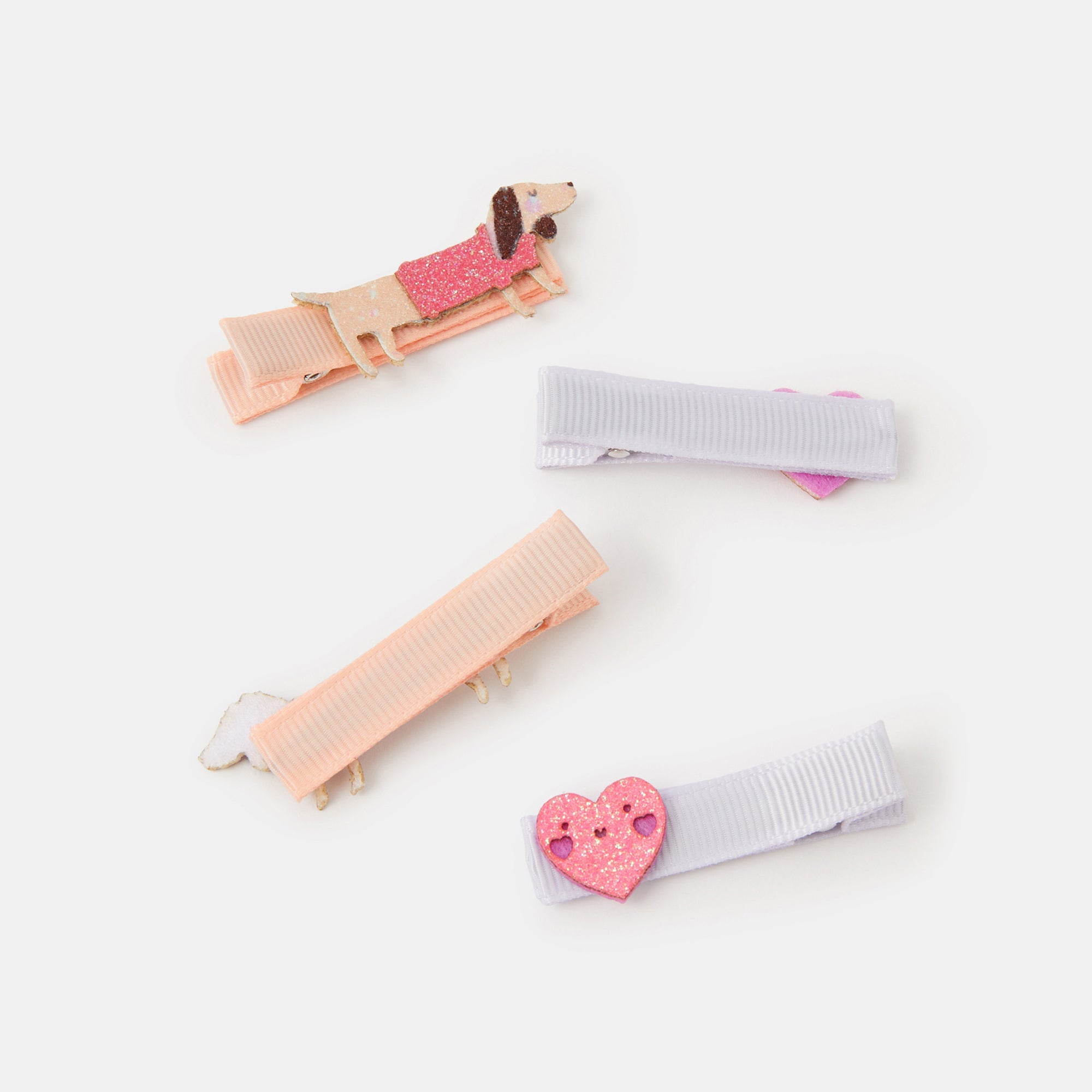 Ready to unleash the cuteness? Featuring pink love hearts and jumper-wearing sausage dogs with a glitzy finish, these hair clips are a fun addition to their (pony)tails. Four included.