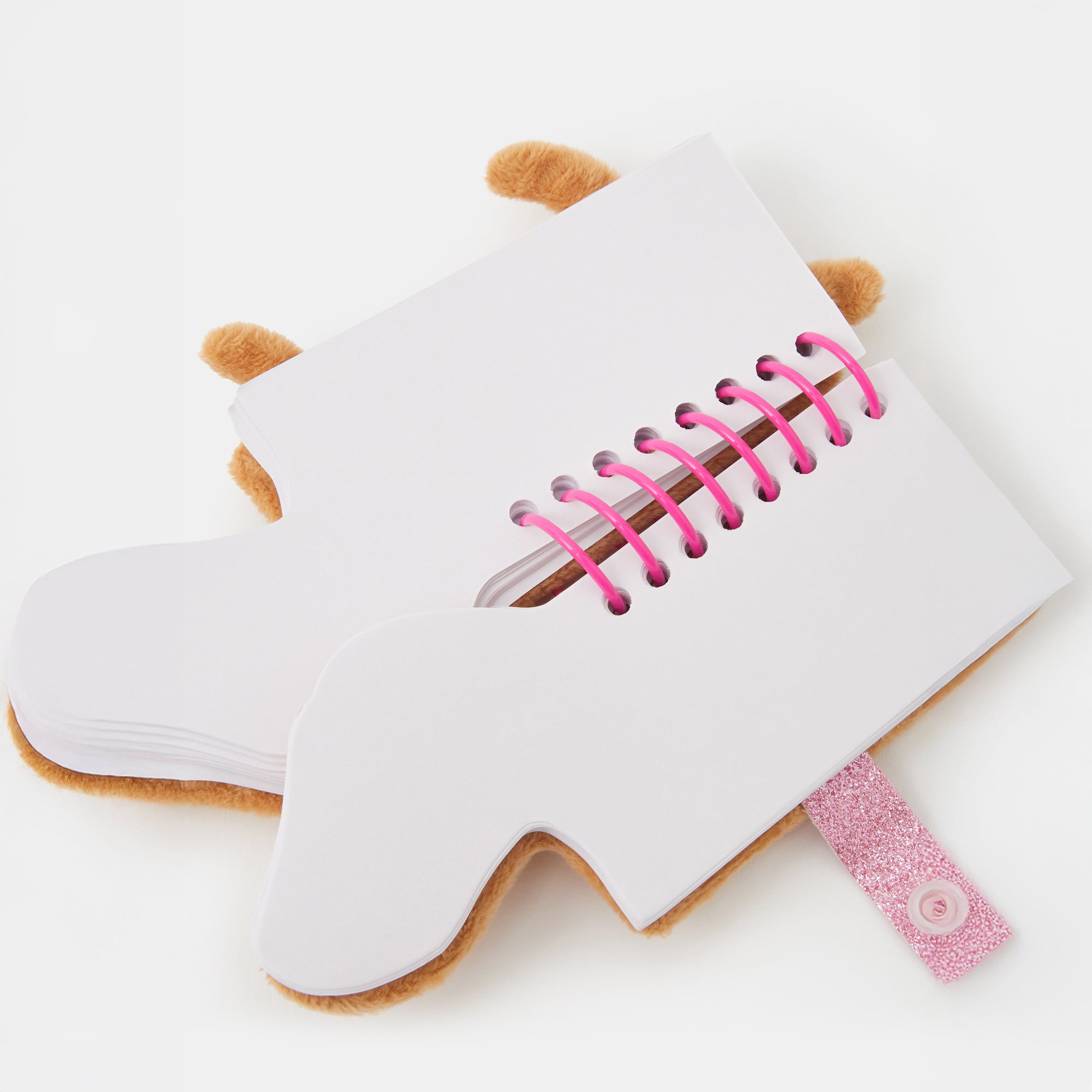 Shaped like a sausage dog wearing a glitzy stripe scarf, this notepad is paw-fect for littles ones who love to jot down notes and doodle on-the-go. Finished with a ring-bound spine and button tab closure.