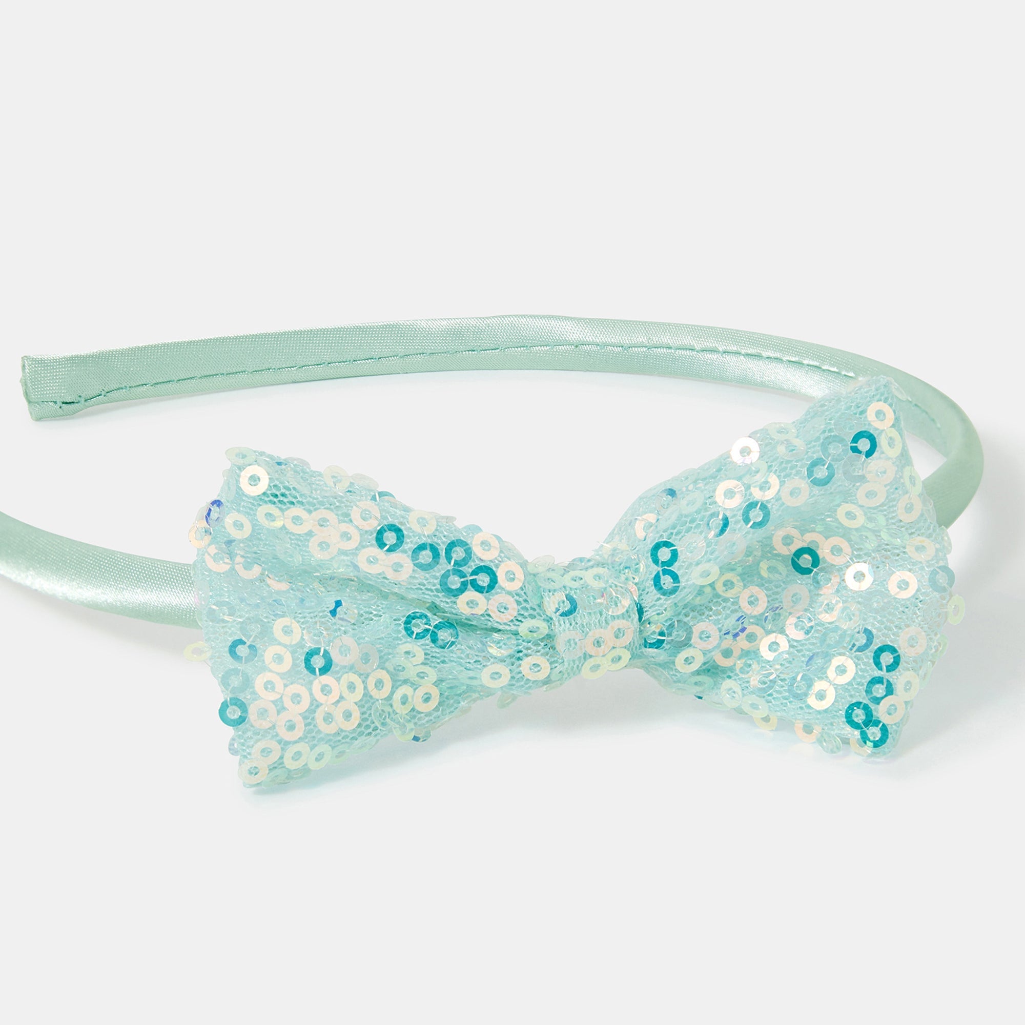 A bow-tiful addition to all their party looks, this headband is wrapped in satin fabric with a sparkly sequin bow to finish.