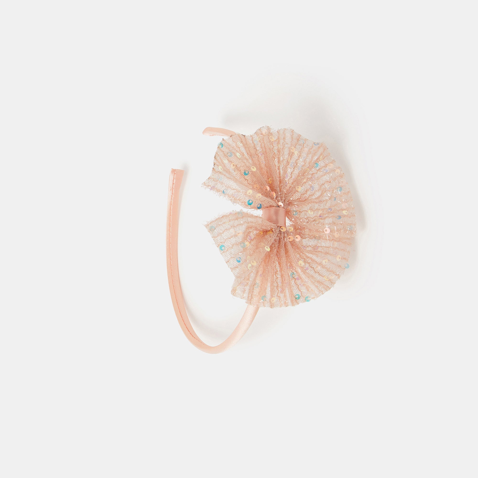The perfect finishing touch to their party looks, this headband is decorated with a statement sequin bow in dreamy pastel pink.